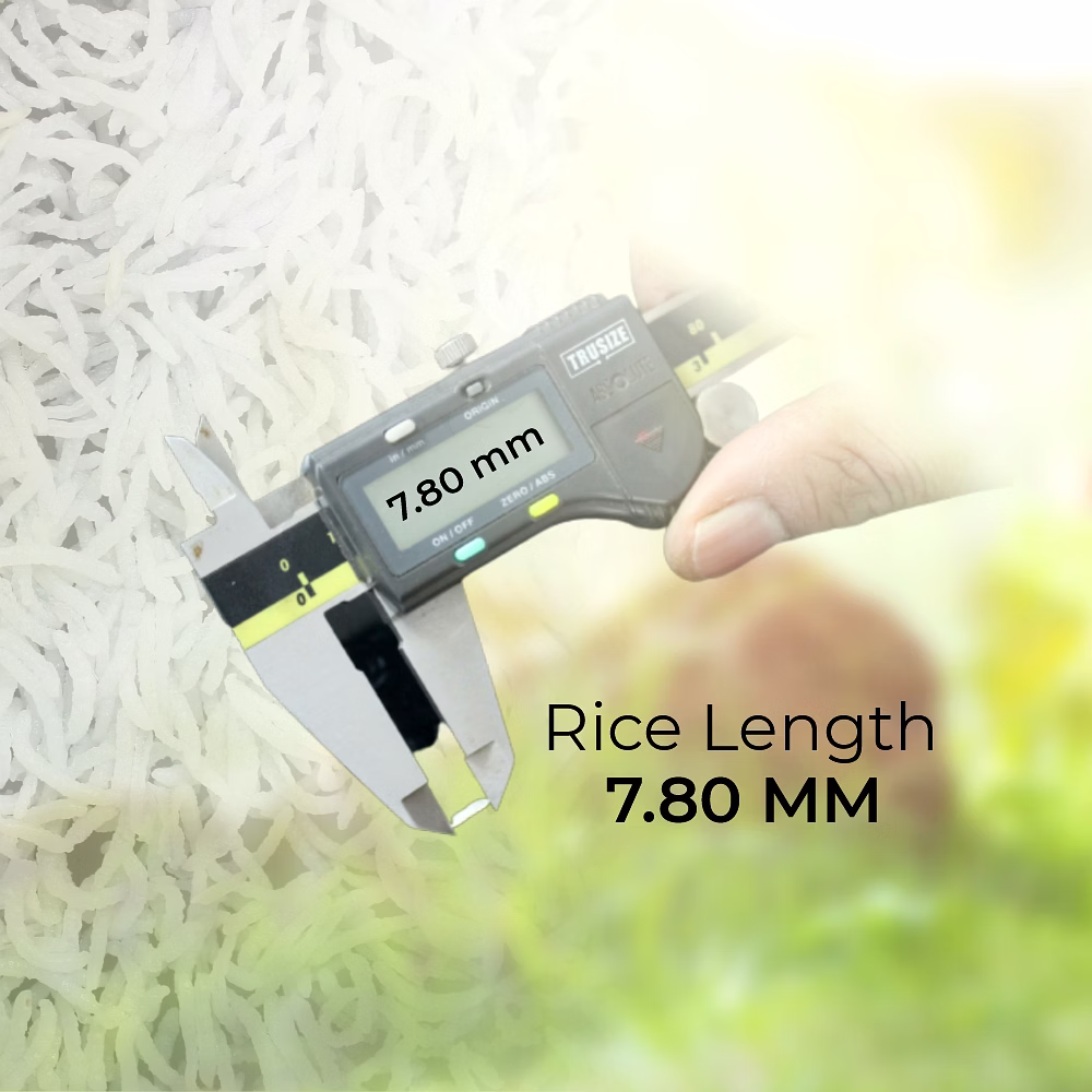 After cooking, the grains remain long, fluffy, and non-sticky, providing an excellent dining experience. It is processed with advanced milling and sortex cleaning techniques to ensure minimal impurities, consistent grain size, and high purity.