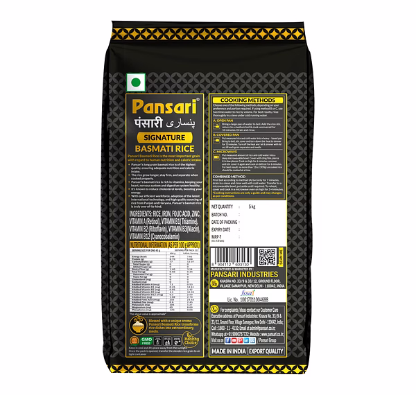 Pansari Signature Basmati Rice 5kg is a premium-grade long grain rice variety, specially selected and aged to deliver superior aroma, taste, and elongation. Known for its fluffy and non-sticky texture after cooking, this basmati rice is perfect for a variety of dishes including biryani, pulao, and daily meals.