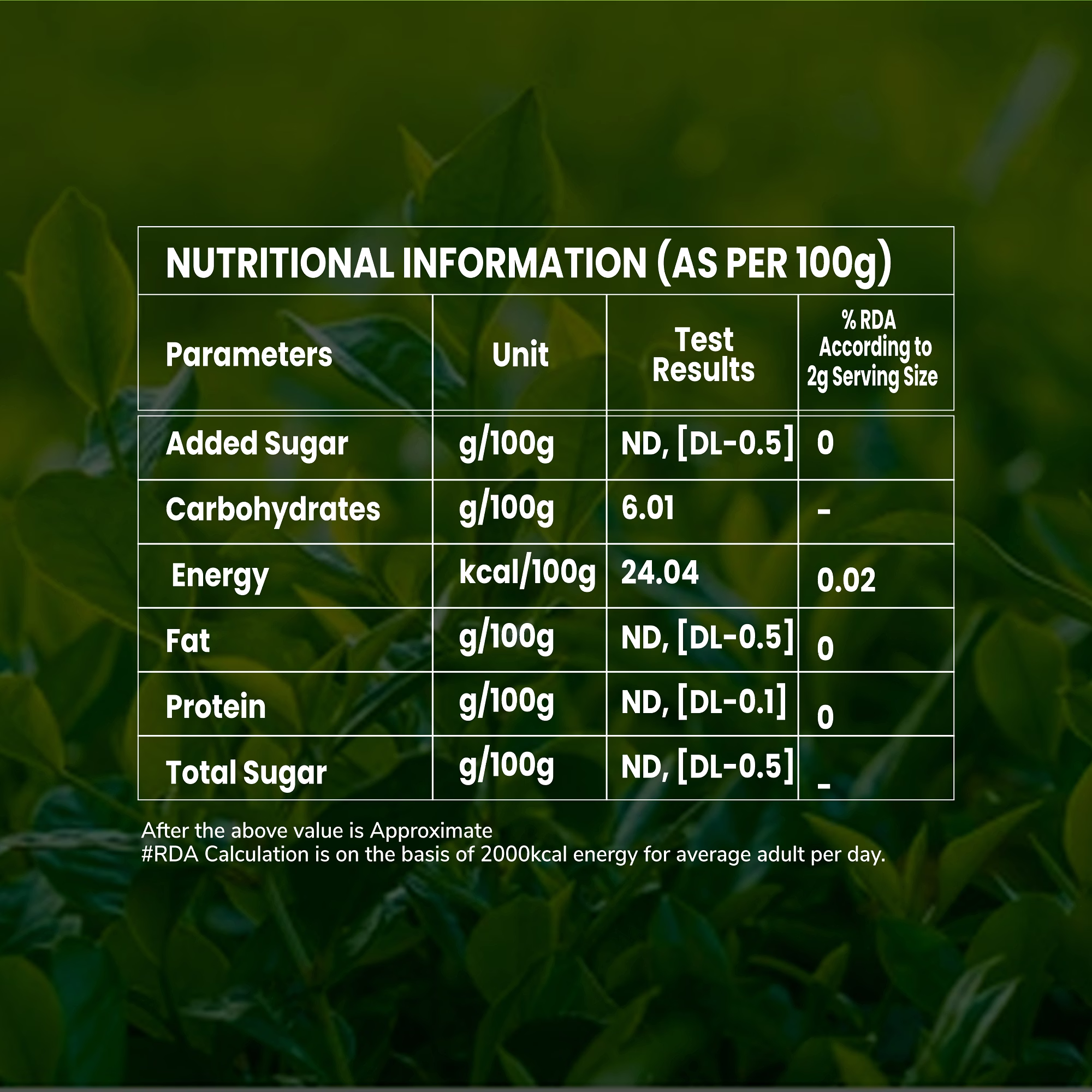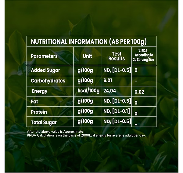 Each pack contains 100 individually packed tea bags (1.8g each), ensuring freshness, convenience, and consistent flavor in every cup. The tea is made from high-quality green tea leaves, carefully processed to retain natural antioxidants and nutrients.
