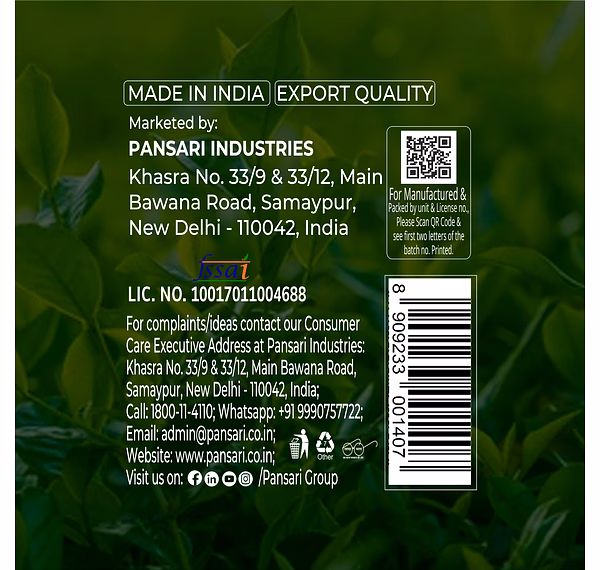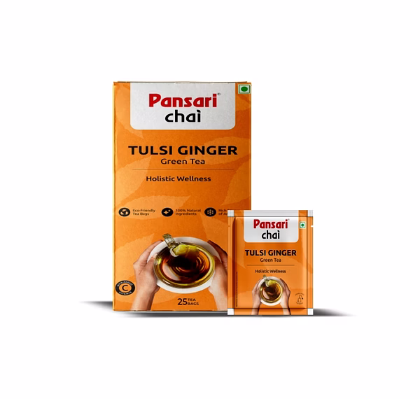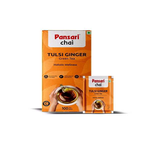 Pansari Tulsi Ginger Green Tea Bags offer a perfect blend of traditional Ayurvedic ingredients and modern tea processing. Enriched with the health benefits of tulsi and ginger, this green tea helps boost immunity, improve digestion, and provide a refreshing and soothing experience.