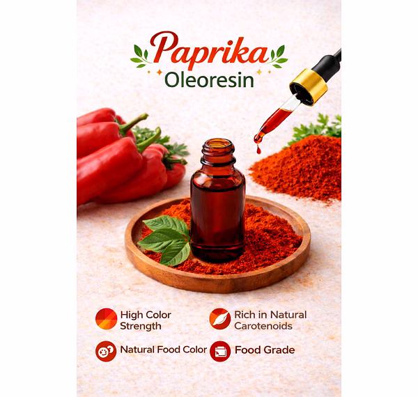 Paprika Oleoresin is a natural colour and flavour extract obtained through controlled solvent extraction of dried, fully ripe Capsicum annuum fruits. It delivers intense red to reddish-brown colour, excellent oil solubility, and a mild, sweet paprika aroma with negligible pungency.
