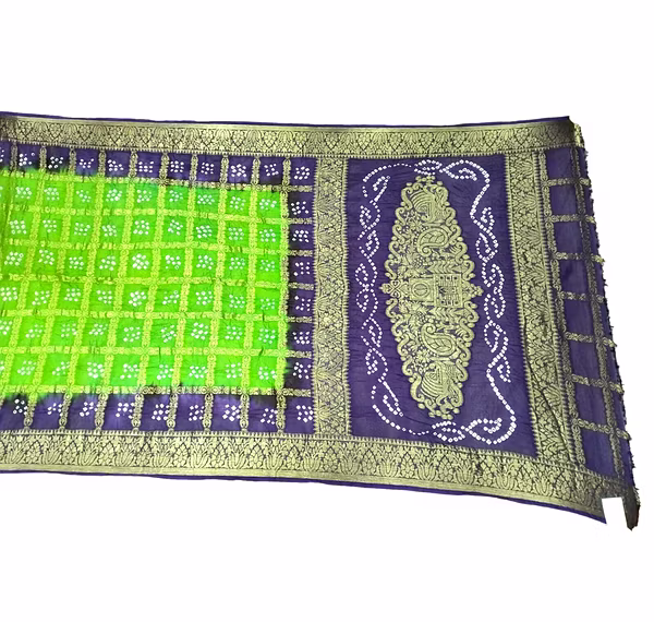Paroot Green & Blue Color Art Silk Bandhani Saree