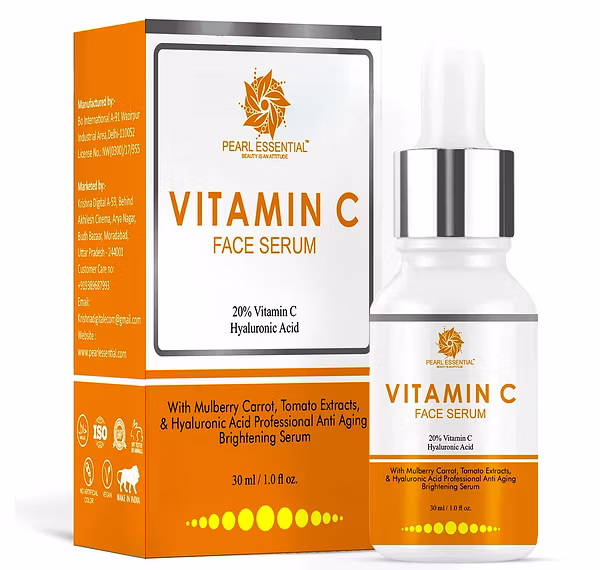 This Pearl Essential Vitamin C Serum is a powerful package of natural ingredients, where it helps with collagen and antioxidant levels, and protects the skin against UV-ray-induced photodamage. This vitamin C Serum has ability to improve aging skin and neutralize free radicals. It protect healthy skin cells by giving these free radicals an electron, rendering them harmless. This Serum can help to protect from many skin problems ; sunburn, photoaging, hyperpigmentation, post-inflammatory, fine lines & wrinkles, sagging, dryness, and an uneven skin tone. This Serum is free from harmful chemicals & toxins. It is Parabens-free, Silicones-free & Sulfates-free. It is a oil-free formula with high-grade mulberry carrot or tomato Extracts. This Serum contains all organic ingredients such as veg glycerin, Aloe Vera extract, green tea extract, Vitamin C, With Hazel Extract which are totally organic preservative ingredients and safe to use.