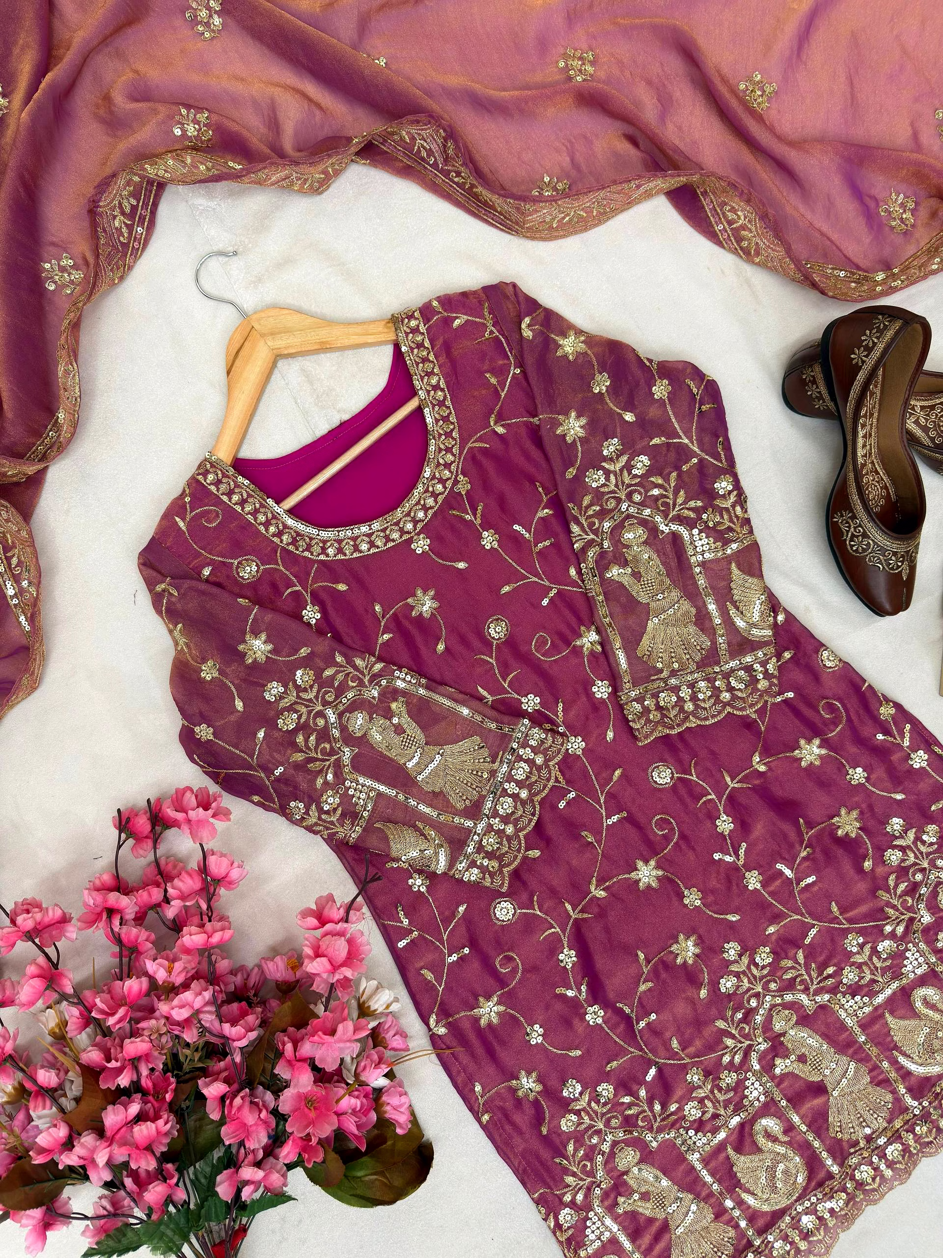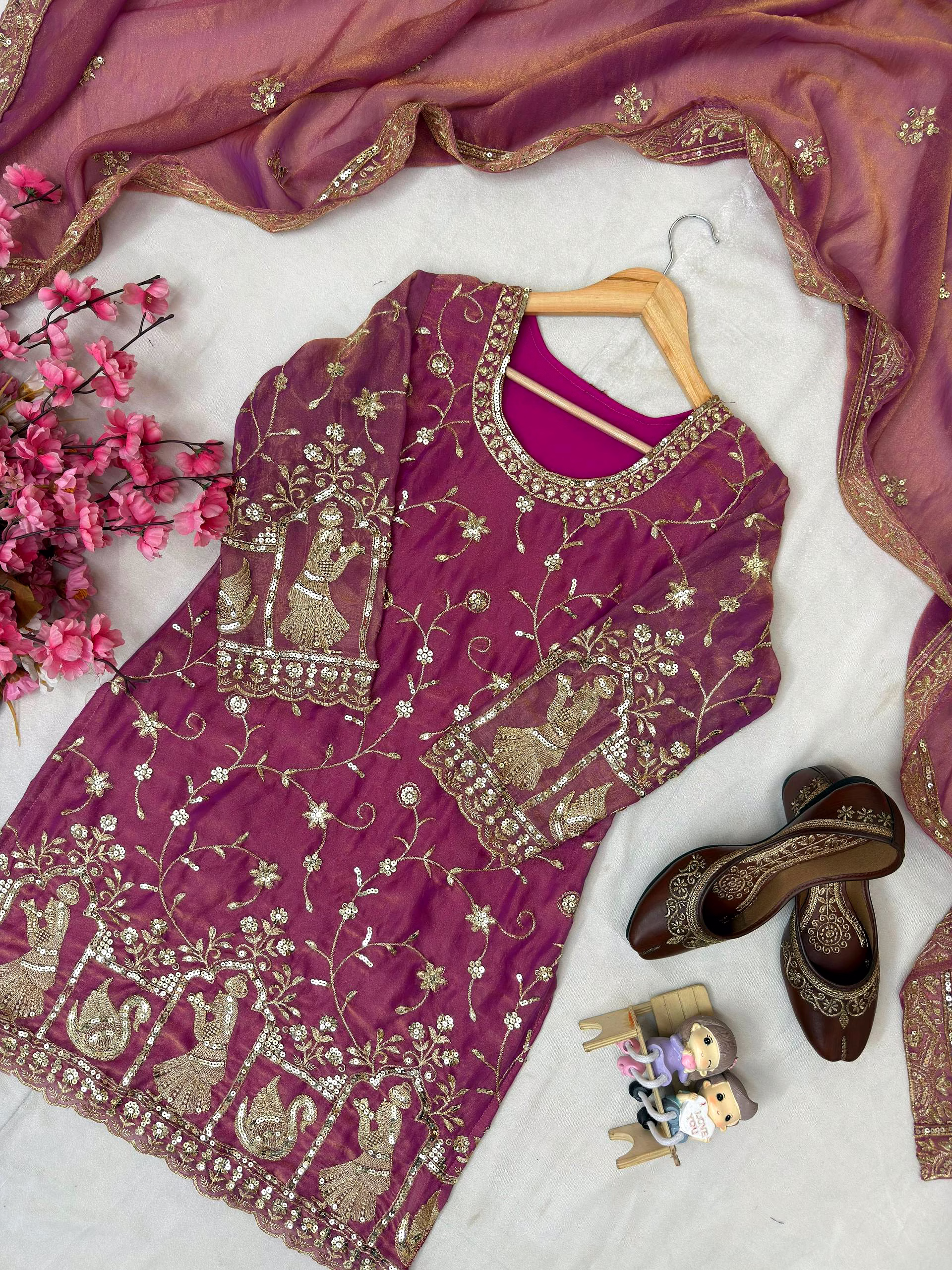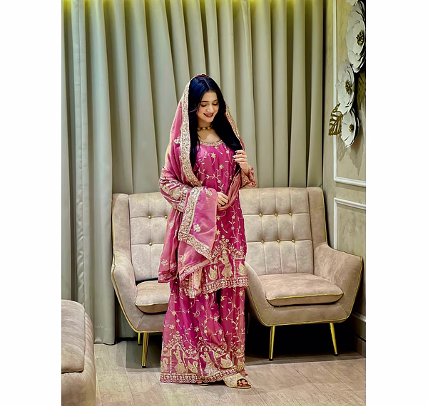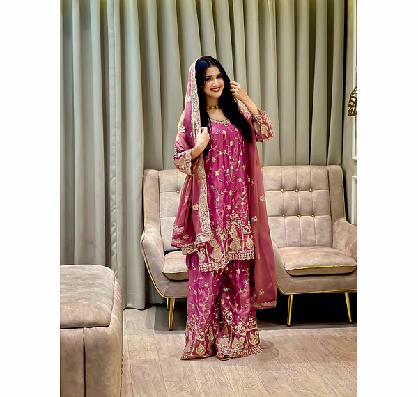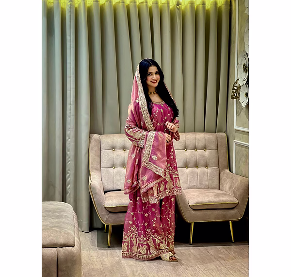 From formal occasions to casual gatherings, this Pink Moss Silk Kurti with Sequence Work is the epitome of versatile elegance. Make a statement wherever you go with this chic and sophisticated attire.