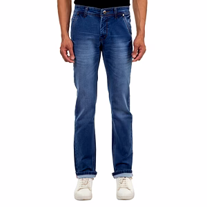 In Attractive blue colour with Whishker and Normal Shading, slim fit, mid rise Cotton Stretchable denim,Five pocket Jeans Pant,Zip closer, Waistband with loop