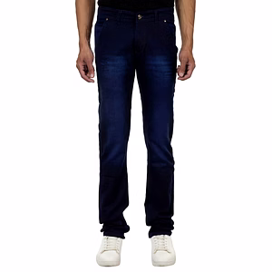 In Attractive Blue with Normal Wash Five Pocket ,slim fit, mid rise Cotton Stretchable denim,Five pocket Jeans Pant,Zip closer, Waistband with loop