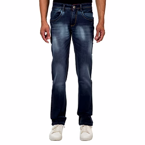 In Atractive Dark blue colour with normal washed with fading , slim fit, mid rise Cotton Strechable denim,Five pocket Jeans Pant,Zip closer, weistband with loop