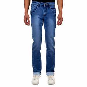 In Attractive Sky Blue with Normal Wash Five Pocket ,slim fit, mid rise Cotton Stretchable denim,Five pocket Jeans Pant,Zip closer, Waistband with loop