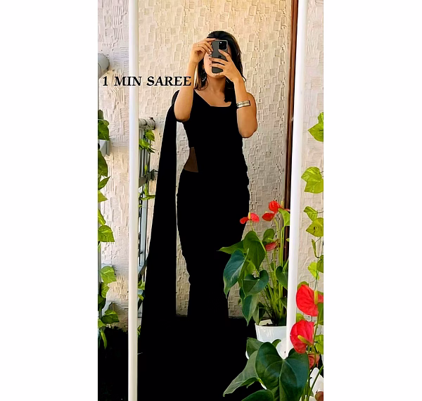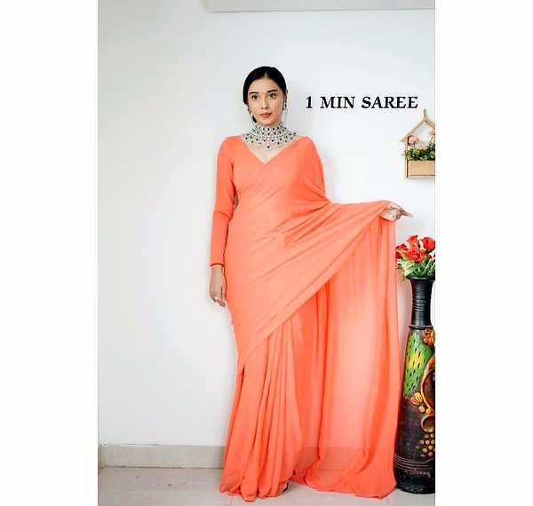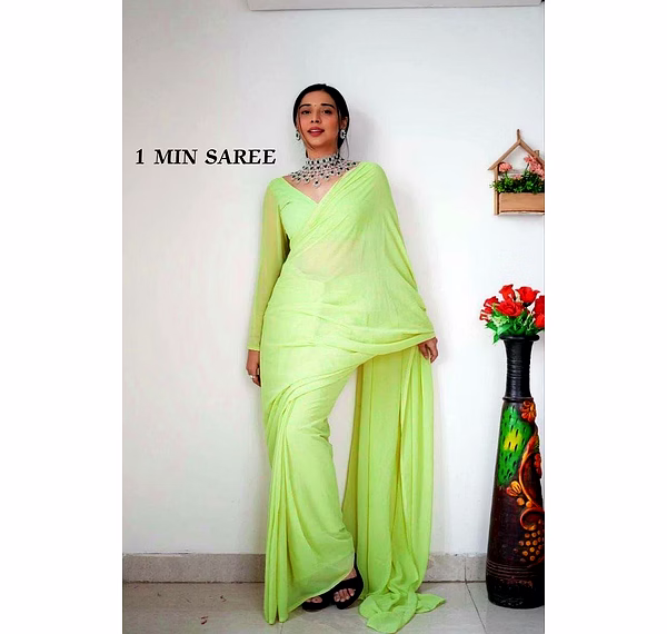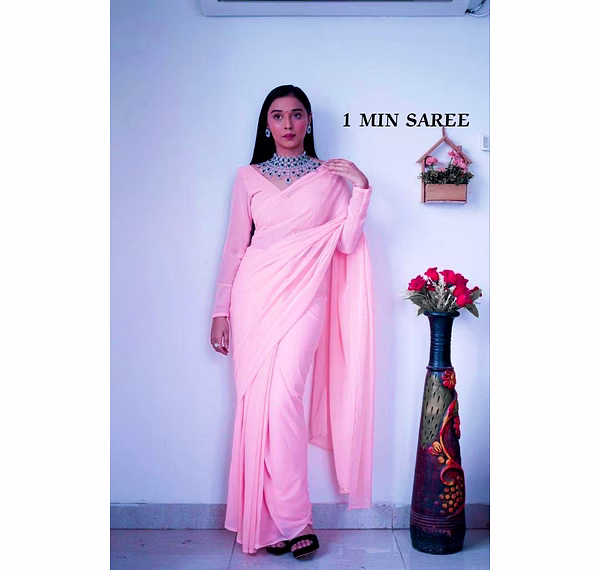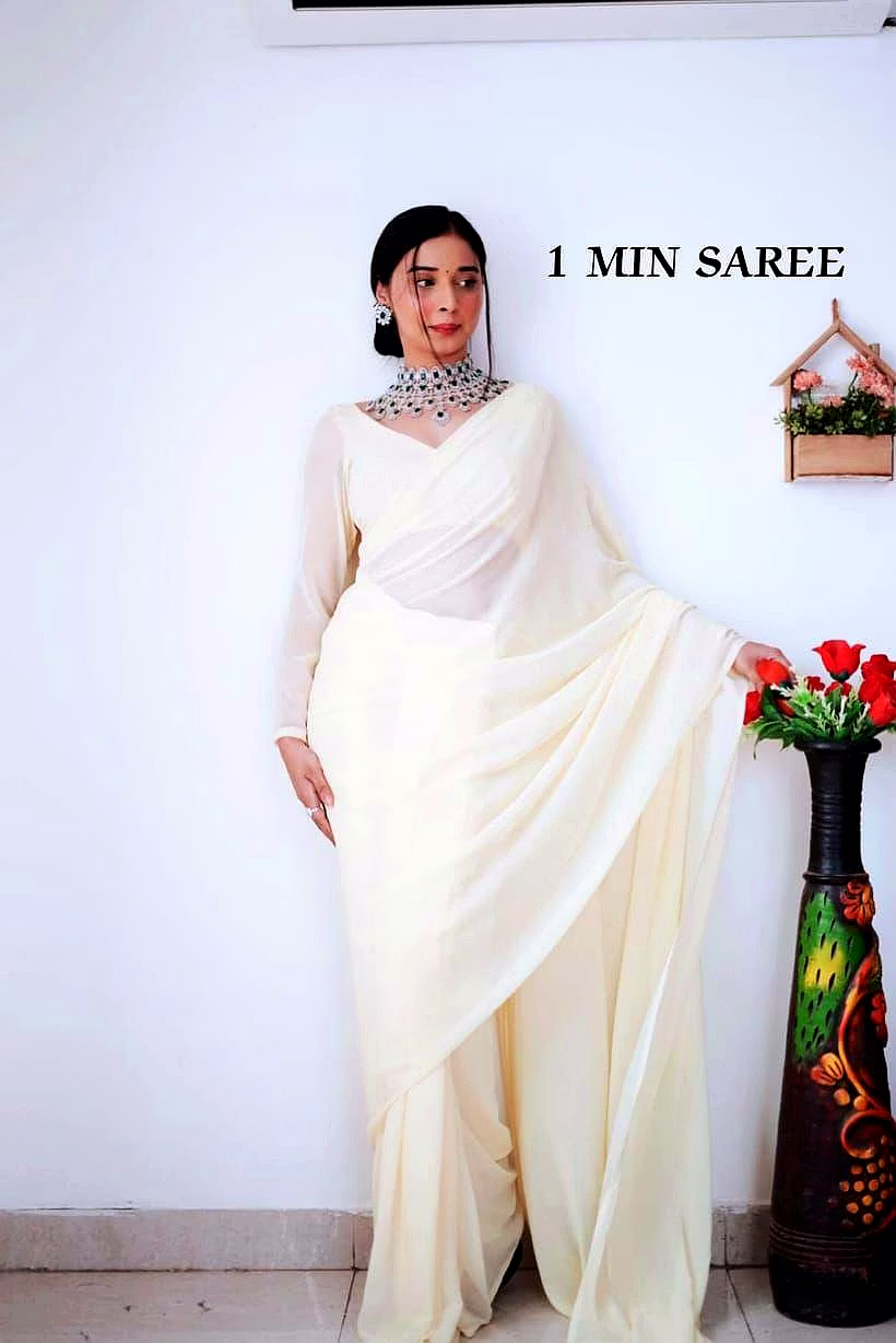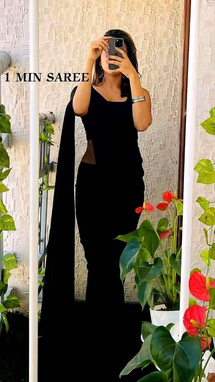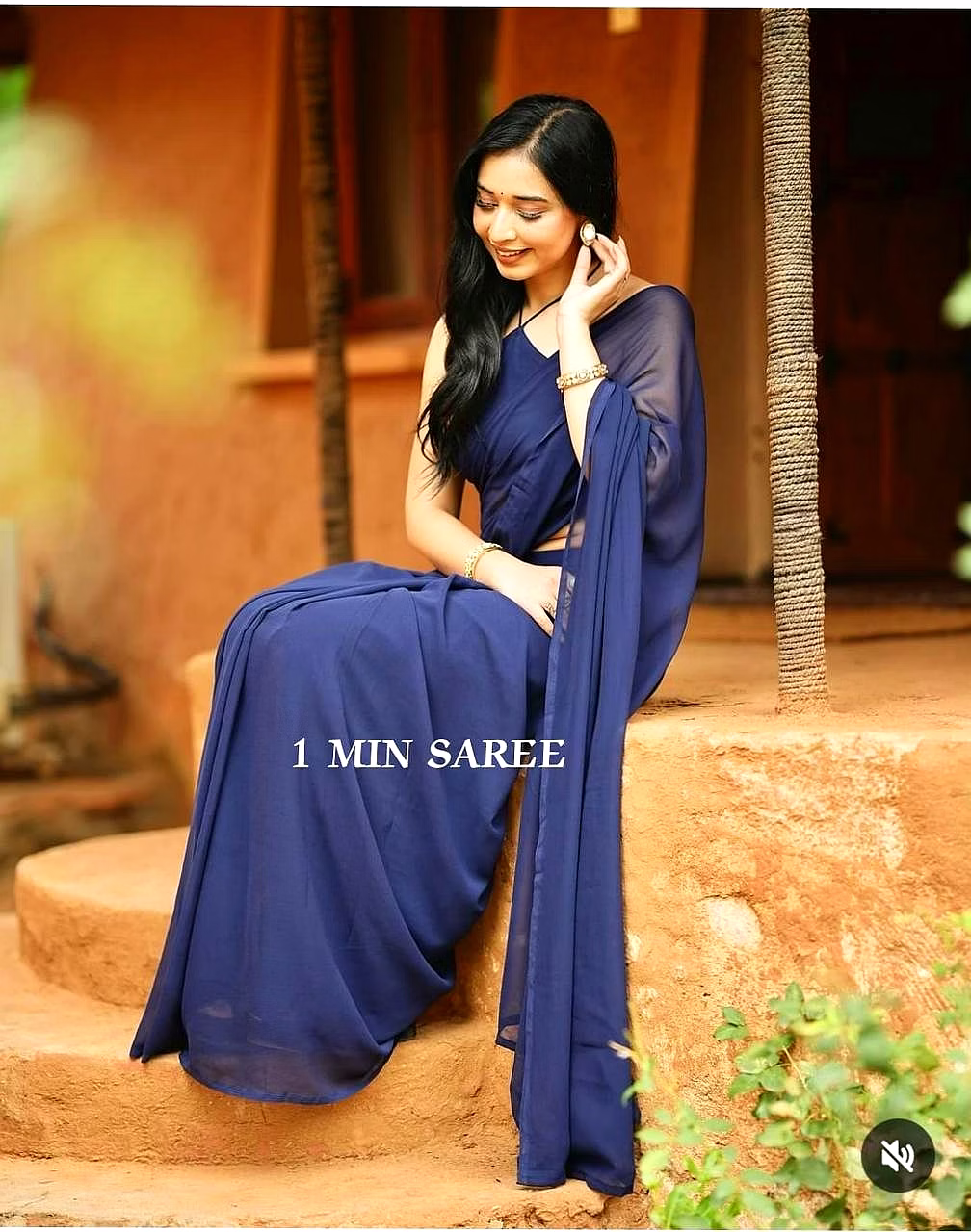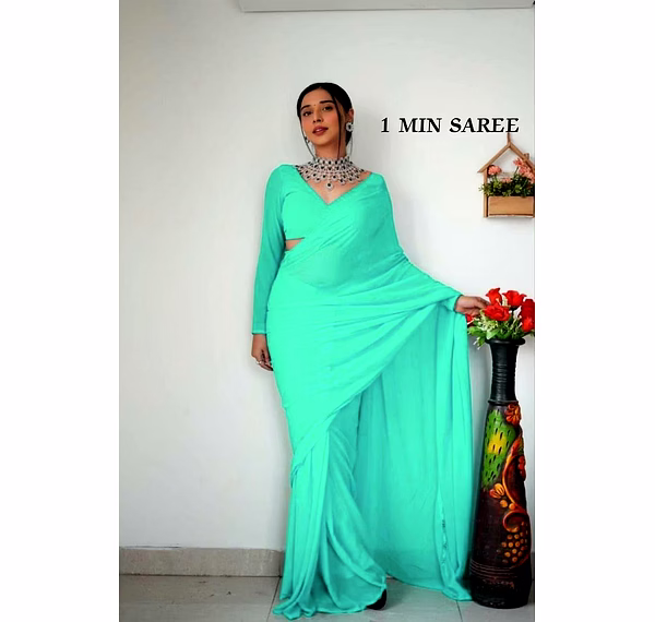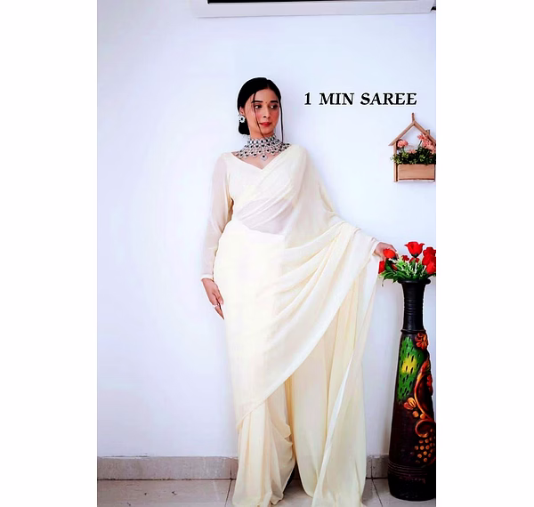 Elevate your style effortlessly with our Plain Georgette ready-to-wear saree, suitable for various occasions. Embrace elegance and convenience in one ensemble.
