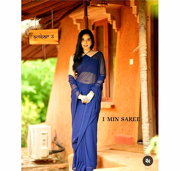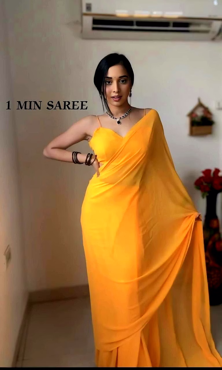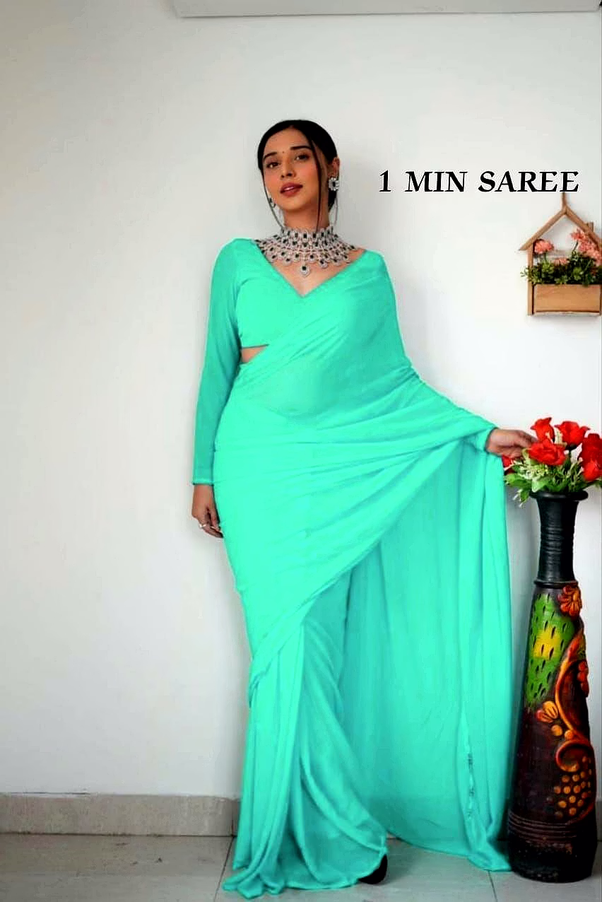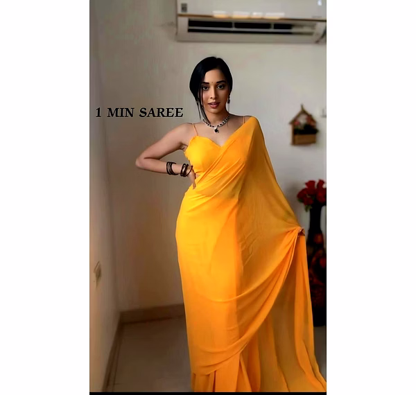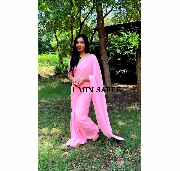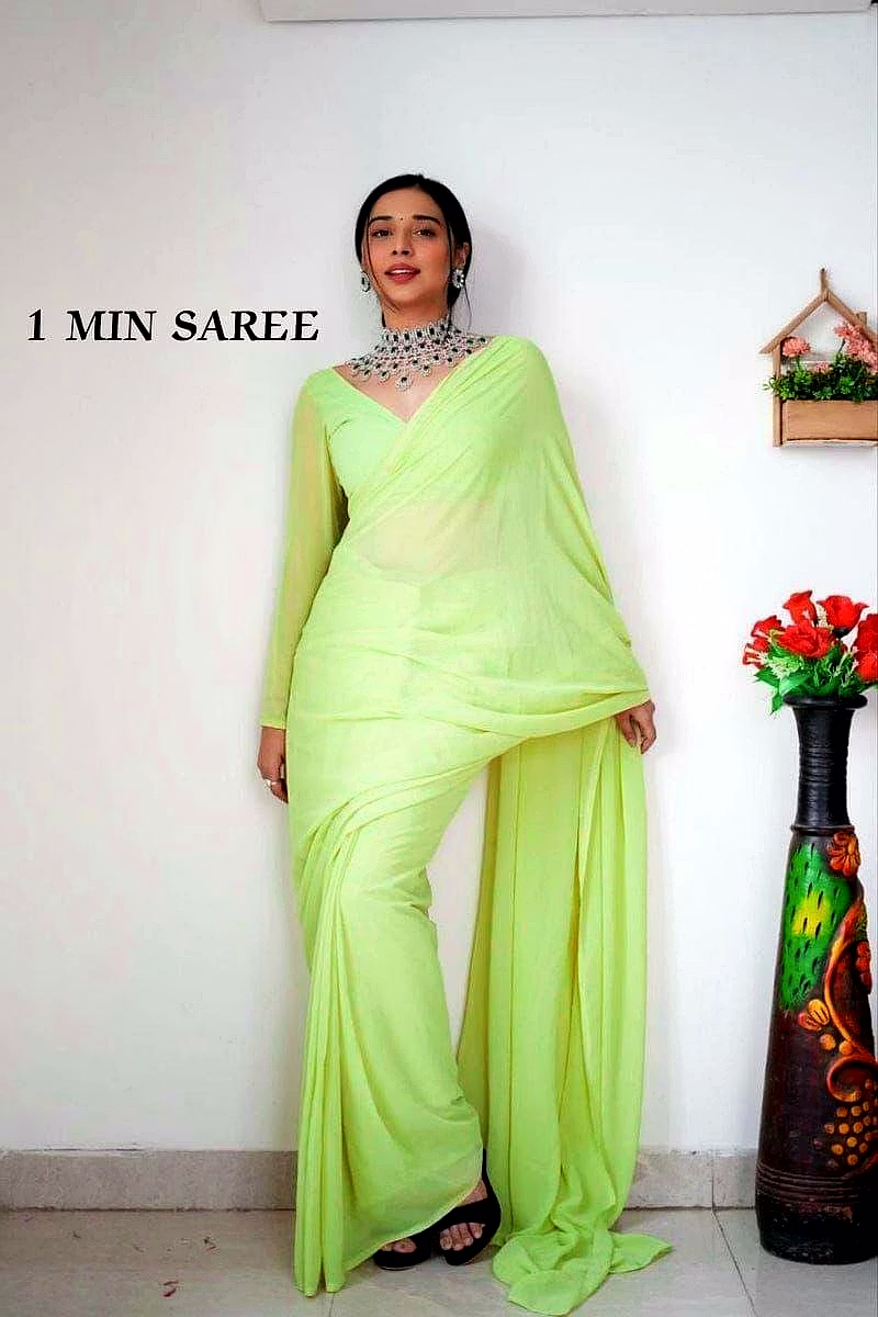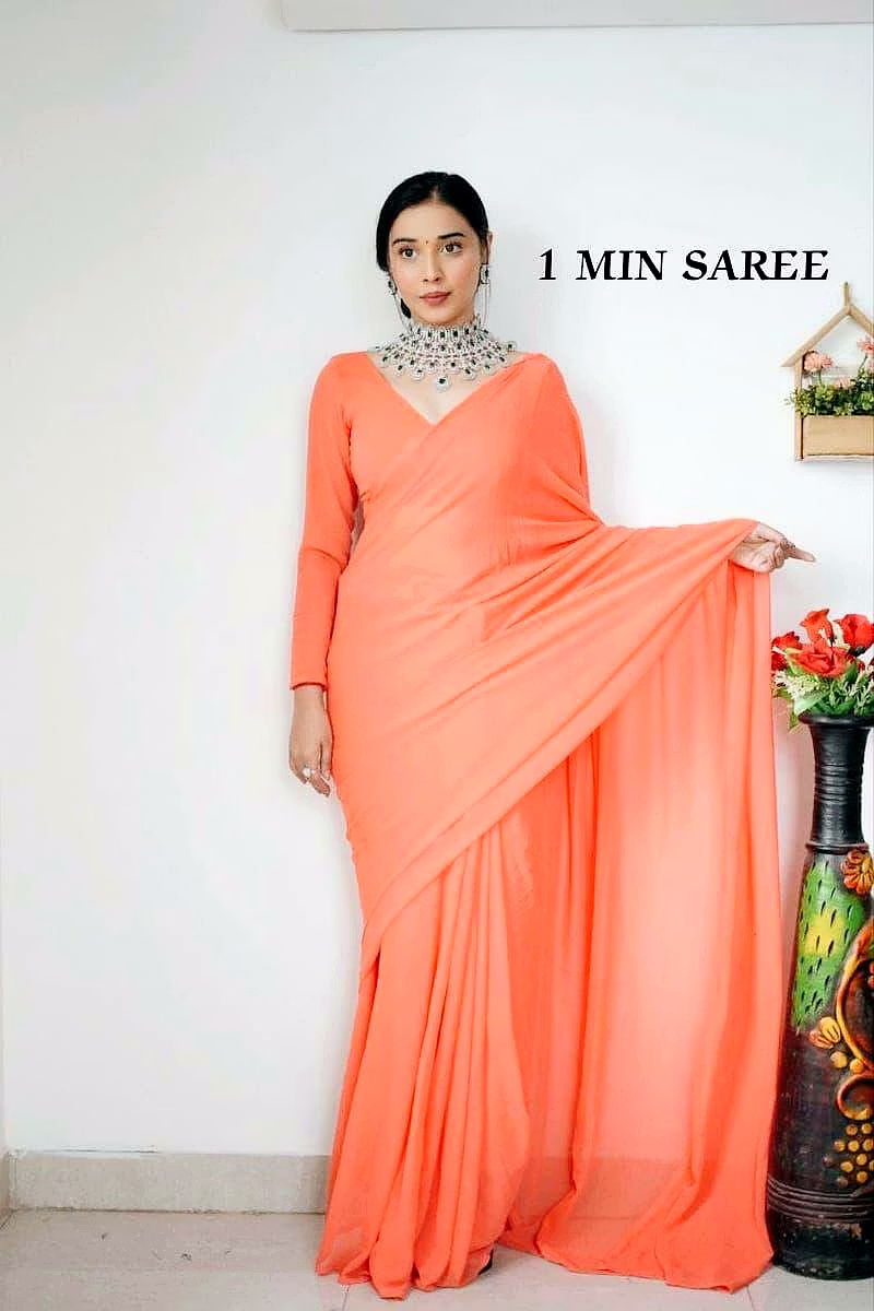 Elevate your style effortlessly with our Plain Georgette ready-to-wear saree, suitable for various occasions. Embrace elegance and convenience in one ensemble.