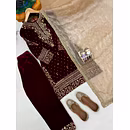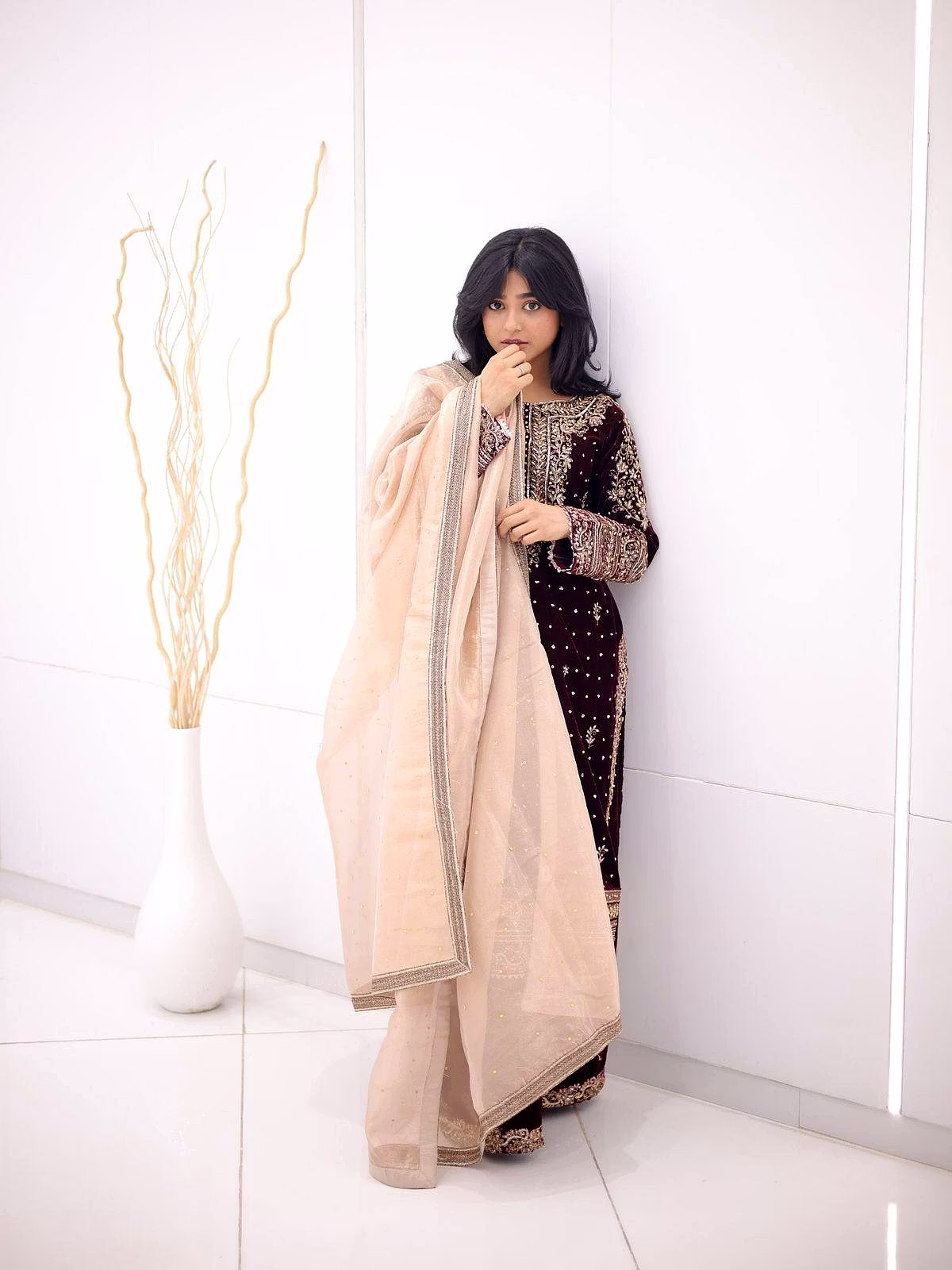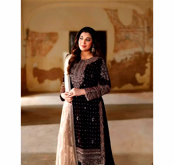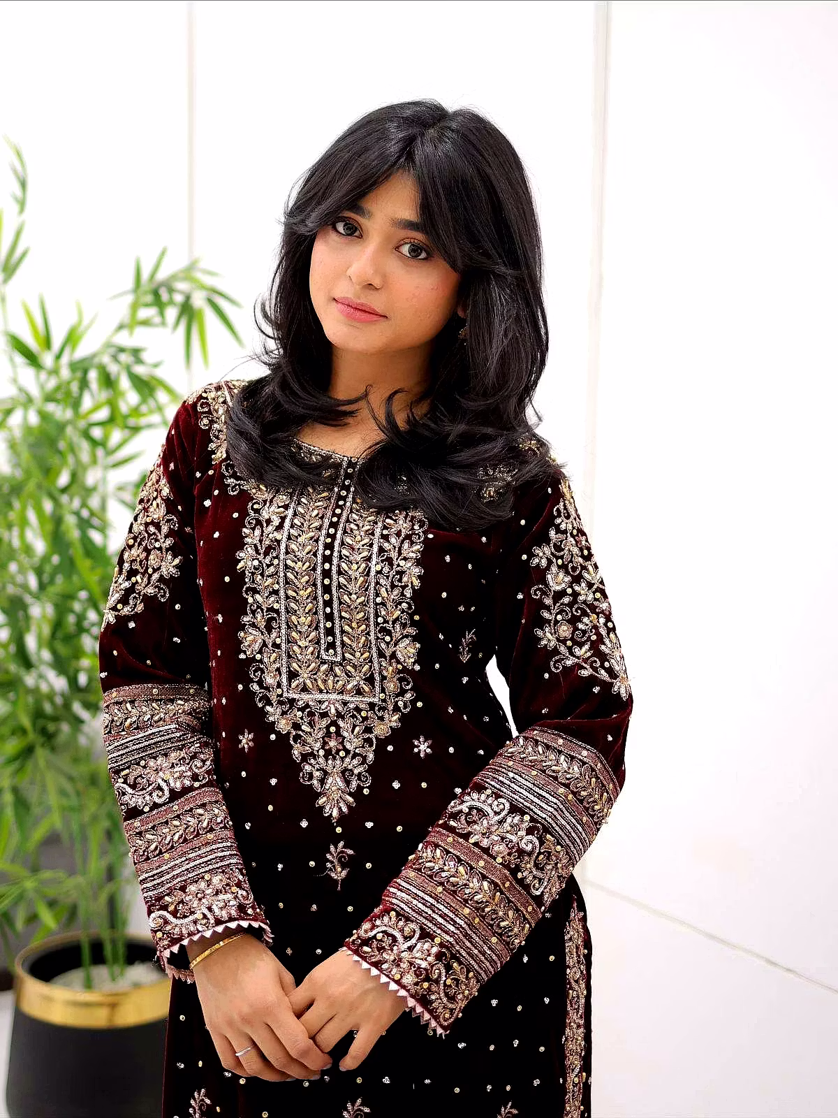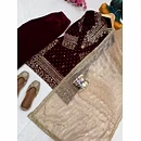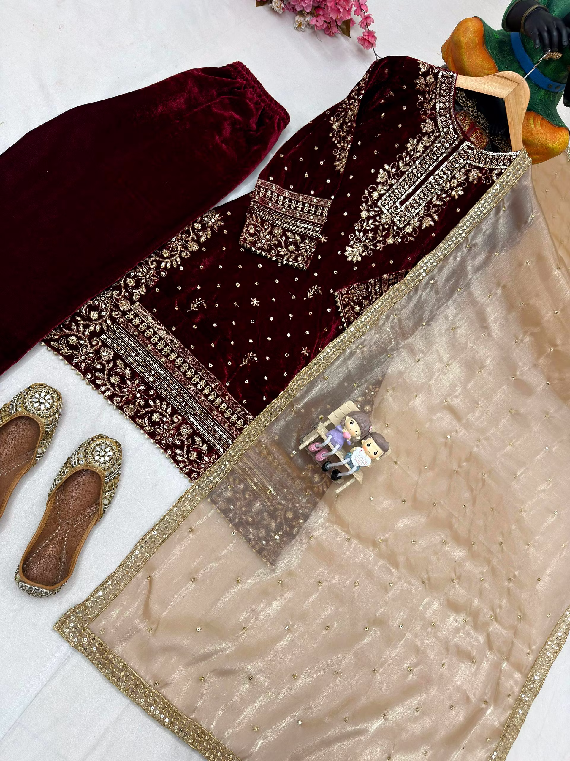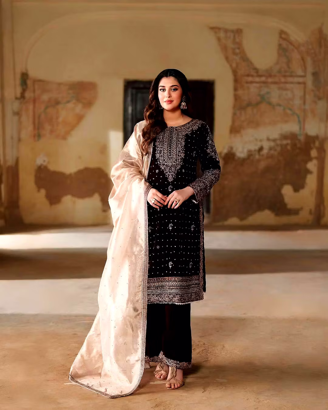 Each Plain Velvet Kurti Set comes with a fully stitched Kurti, Palazzo, and Dupatta, ensuring a hassle-free and fashionable look. The exquisite 5mm sequins and Zari embroidery work further enhance the appeal of this ensemble, making it a must-have for your winter wardrobe.