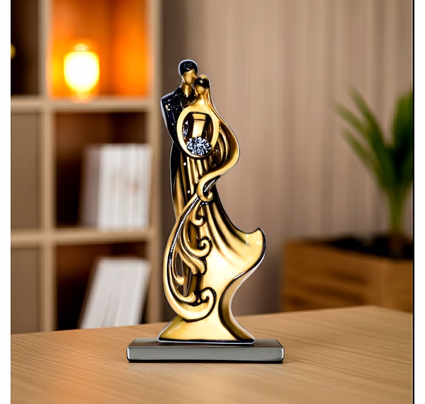 This Poly Resin Couple Figurine is a beautifully crafted decorative showpiece designed to add elegance and emotion to any interior space. Made from high-quality poly resin with iron detailing, it offers durability, fine finishing, and long-lasting appeal. The artistic couple design symbolizes love, unity, and harmony, making it ideal for home, office, hotel, and tabletop décor. Its sleek form and balanced proportions make it suitable for modern as well as classic interiors. With a size of 7 × 4 × 20 inches, it stands out gracefully on shelves, consoles, and display units.