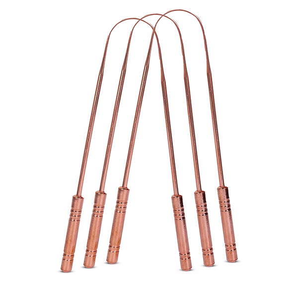 Our Premium Copper Two Handle Tongue Cleaner is designed to elevate your oral hygiene routine. The natural anti-bacterial properties of copper help in keeping your mouth fresh and clean, while the two-handle design ensures ease of use and precise cleaning.
