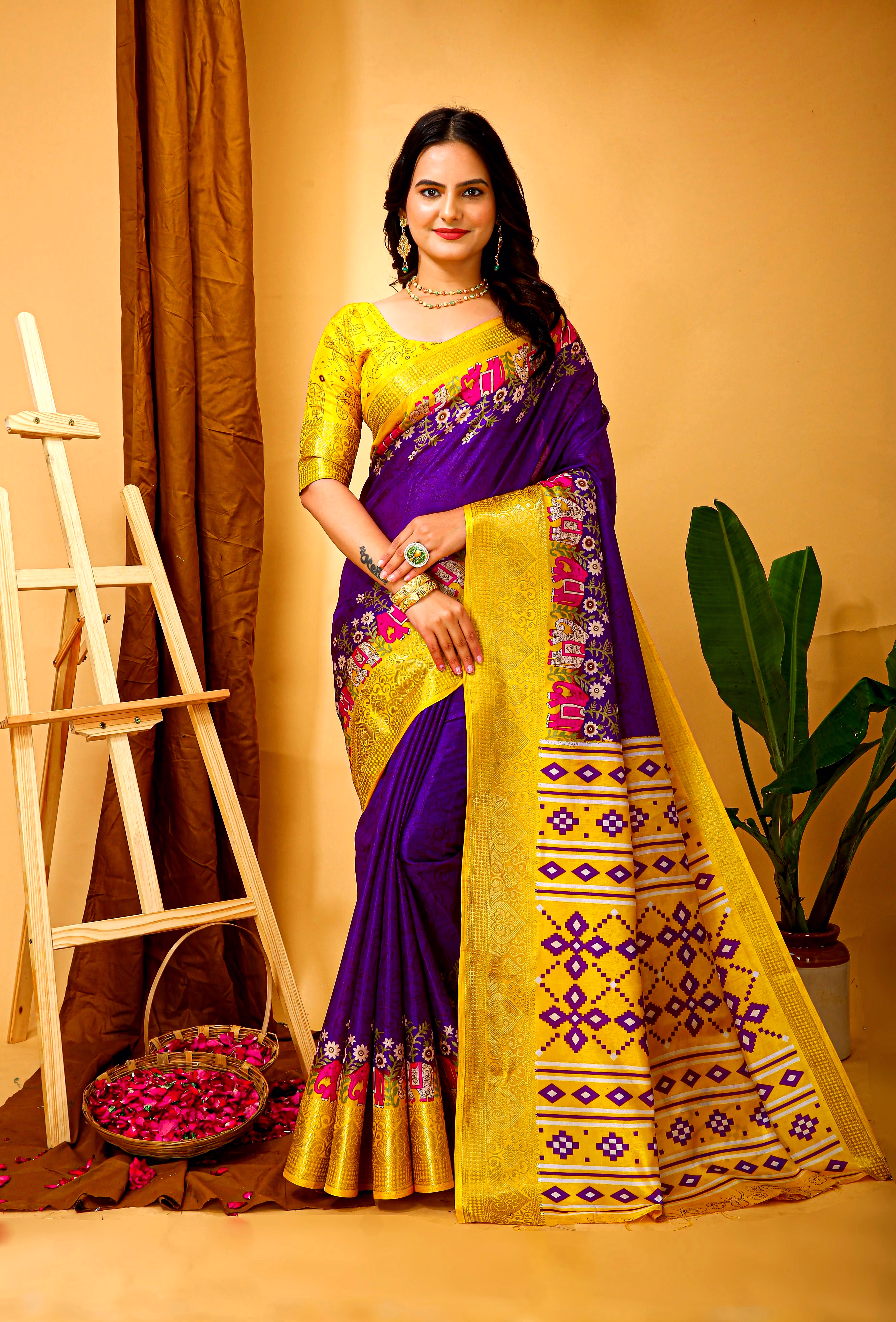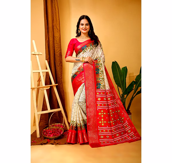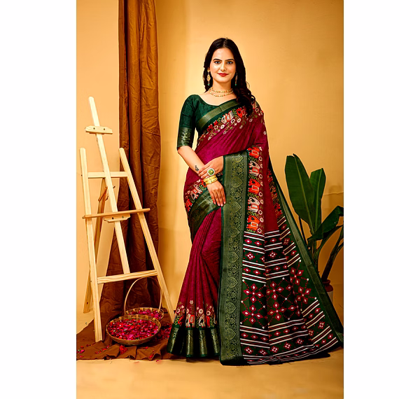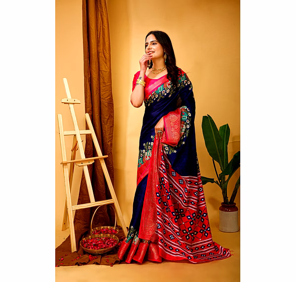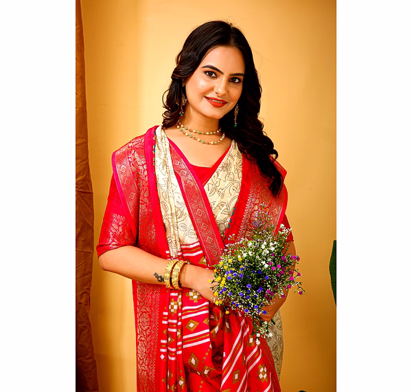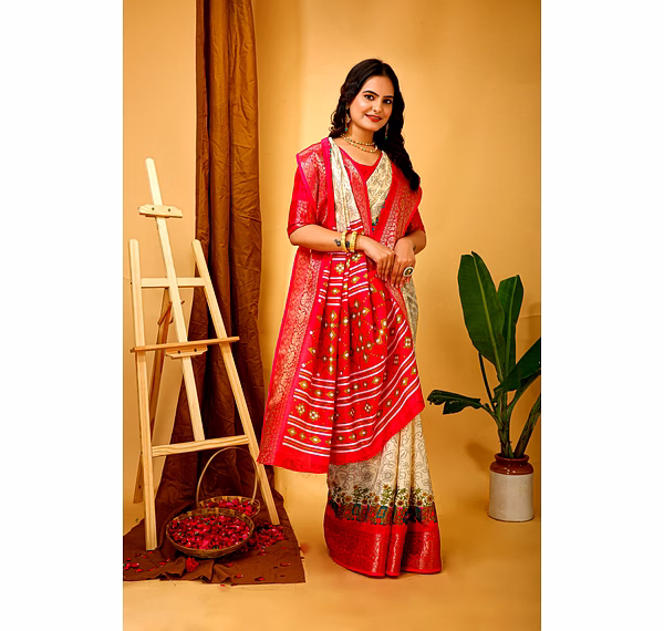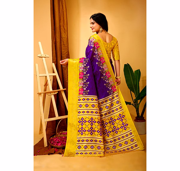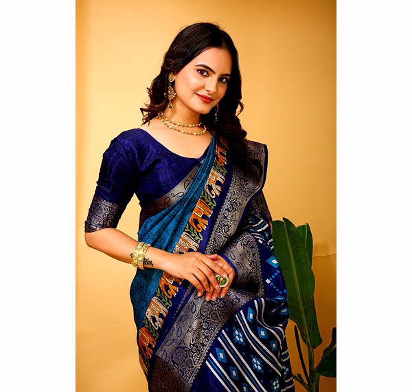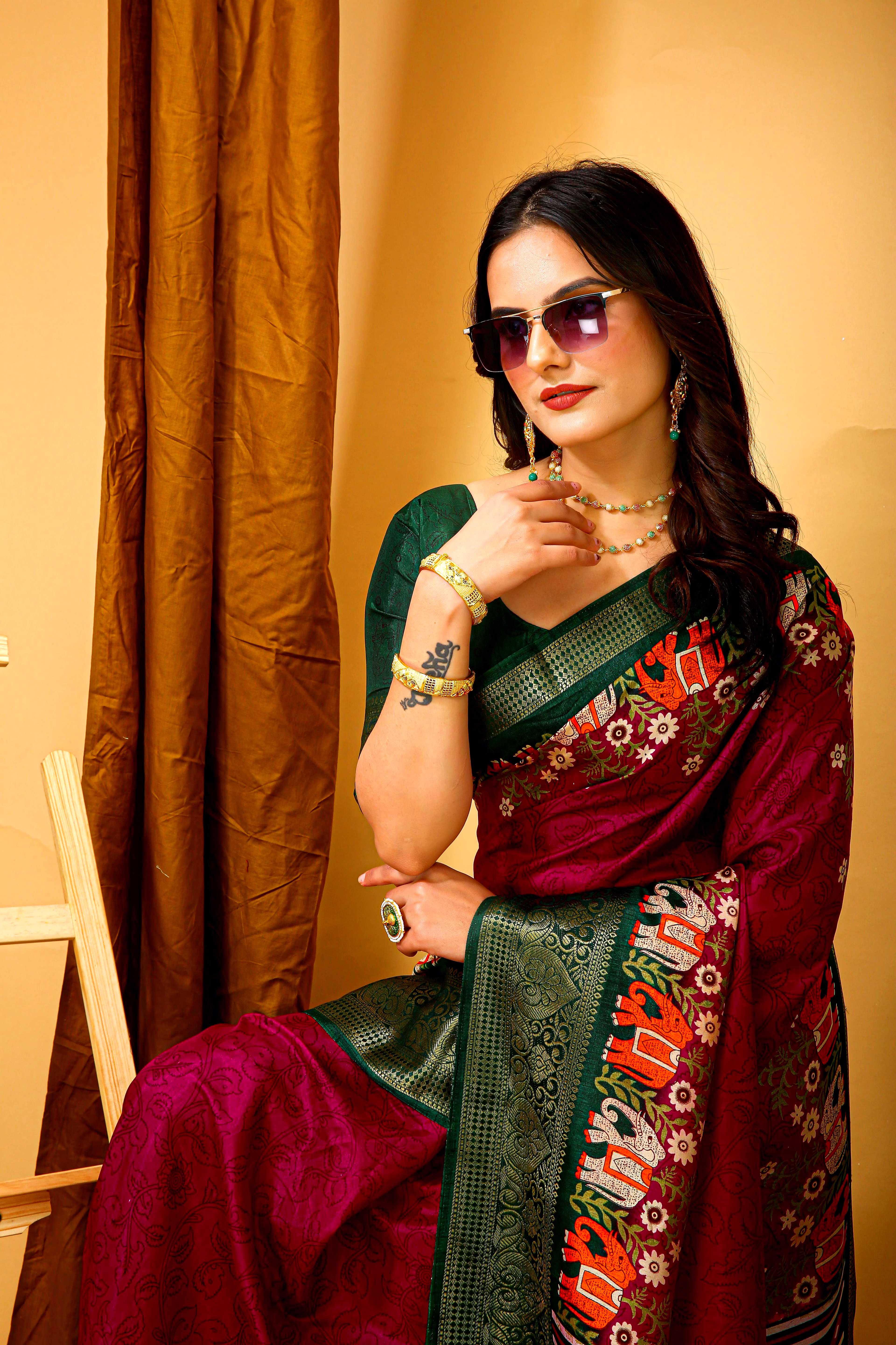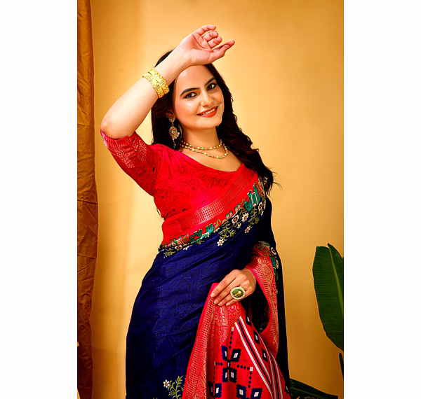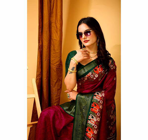 Embrace tradition with a touch of modernity as you adorn this Dola Silk Saree. From intricate blouse designs to contemporary draping styles, this saree is a perfect blend of heritage and trend, ideal for women seeking a fusion of classic elegance and contemporary fashion.