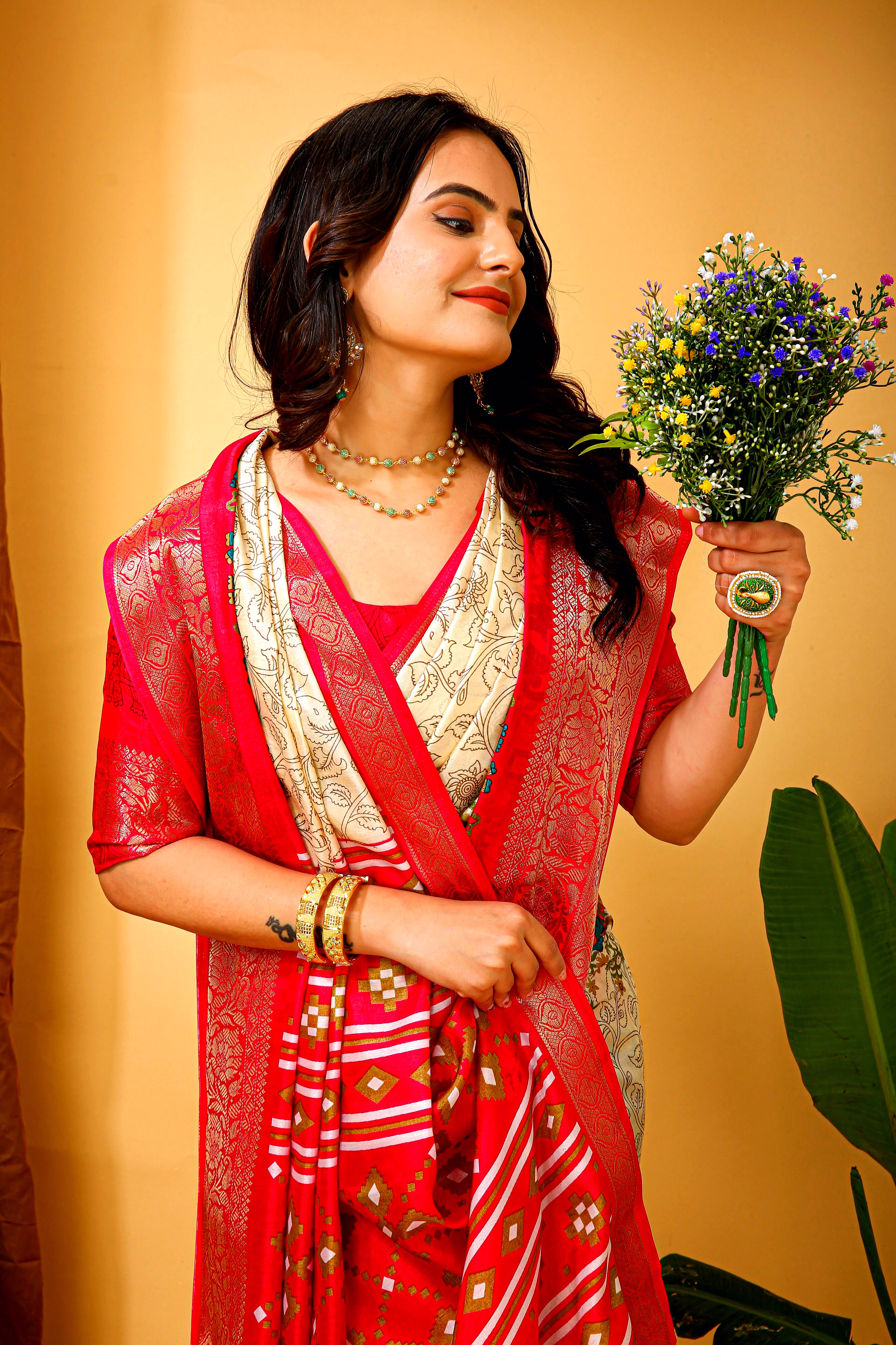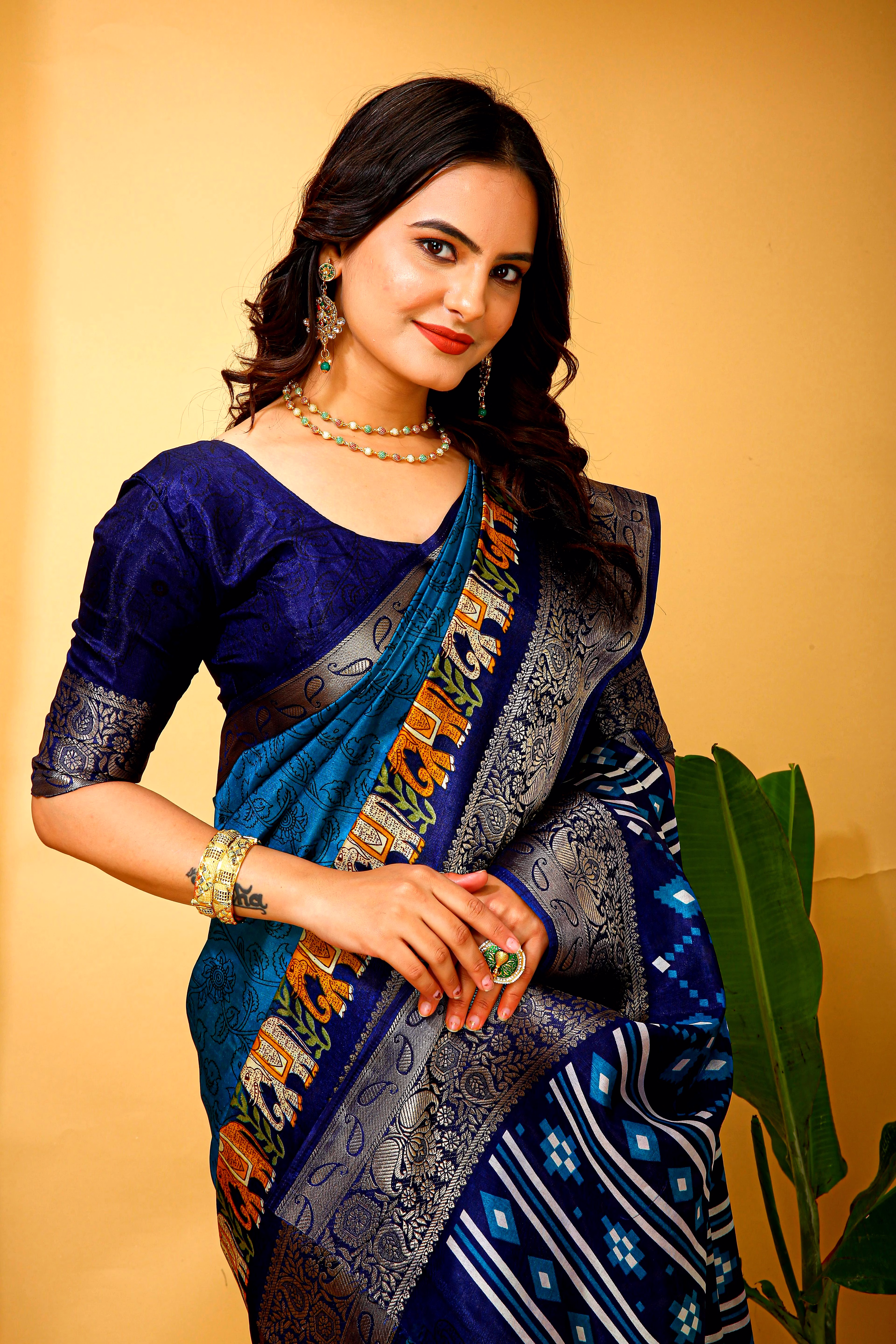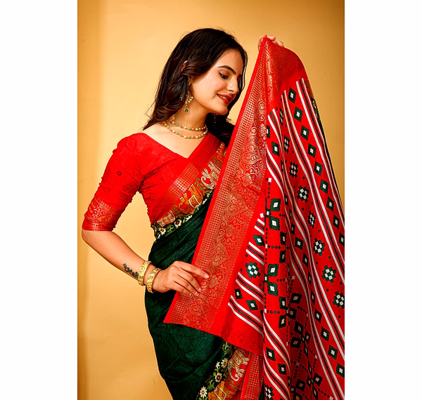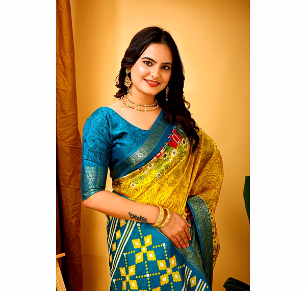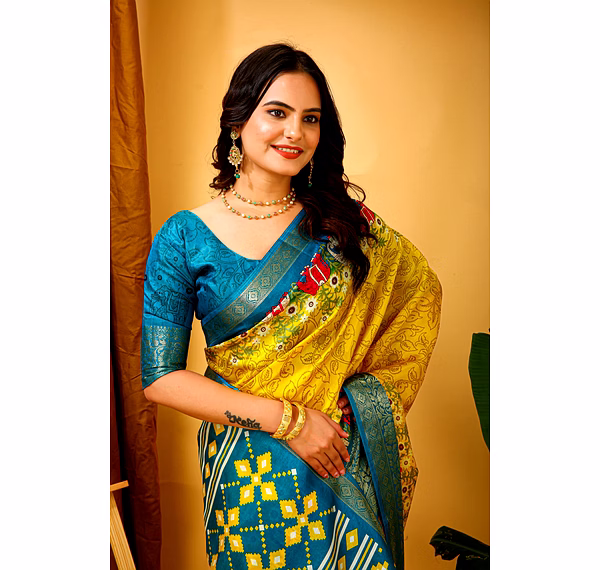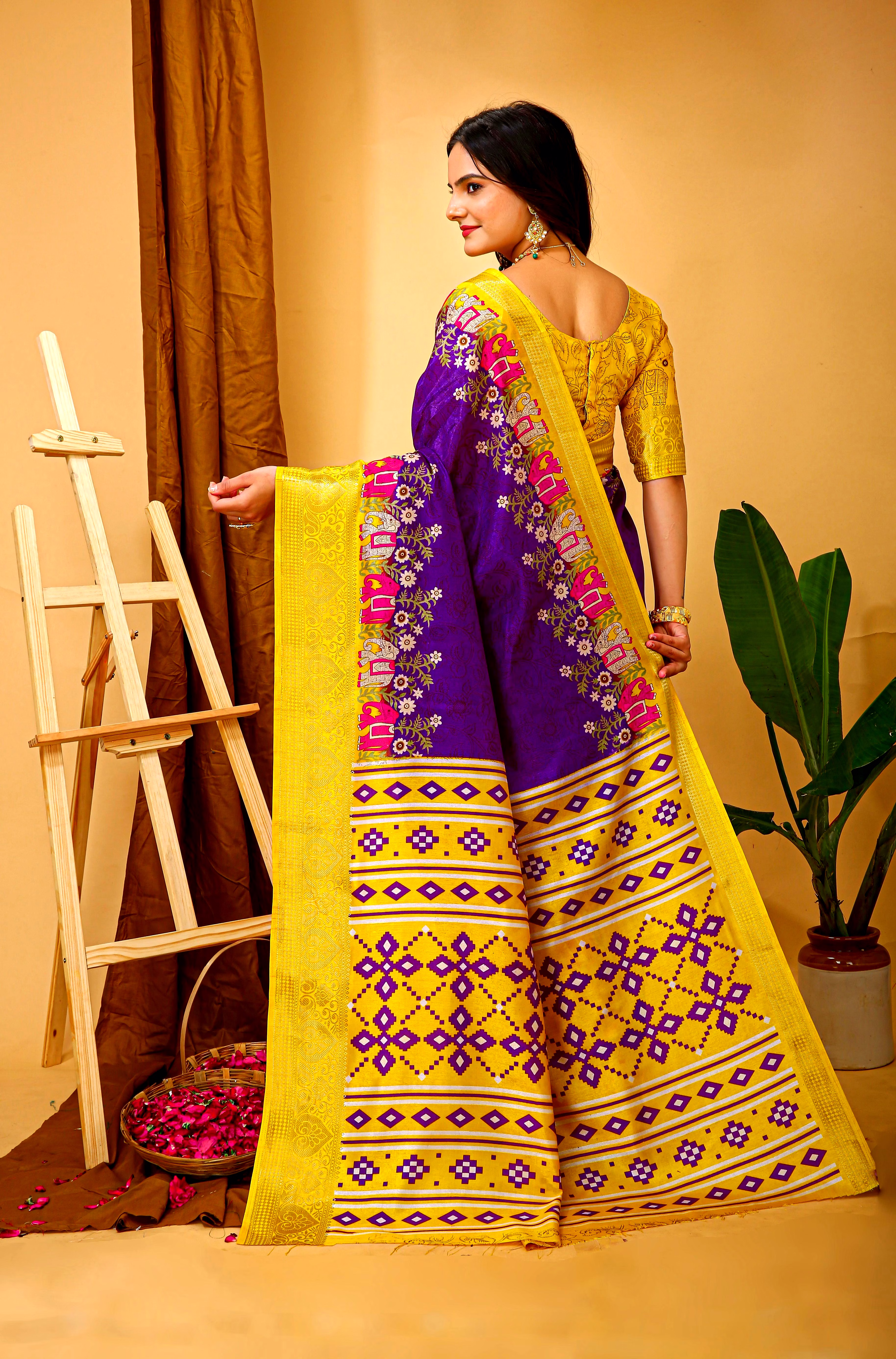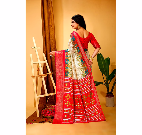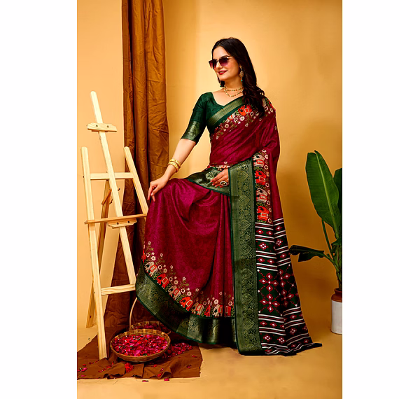Embrace tradition with a touch of modernity as you adorn this Dola Silk Saree. From intricate blouse designs to contemporary draping styles, this saree is a perfect blend of heritage and trend, ideal for women seeking a fusion of classic elegance and contemporary fashion.
