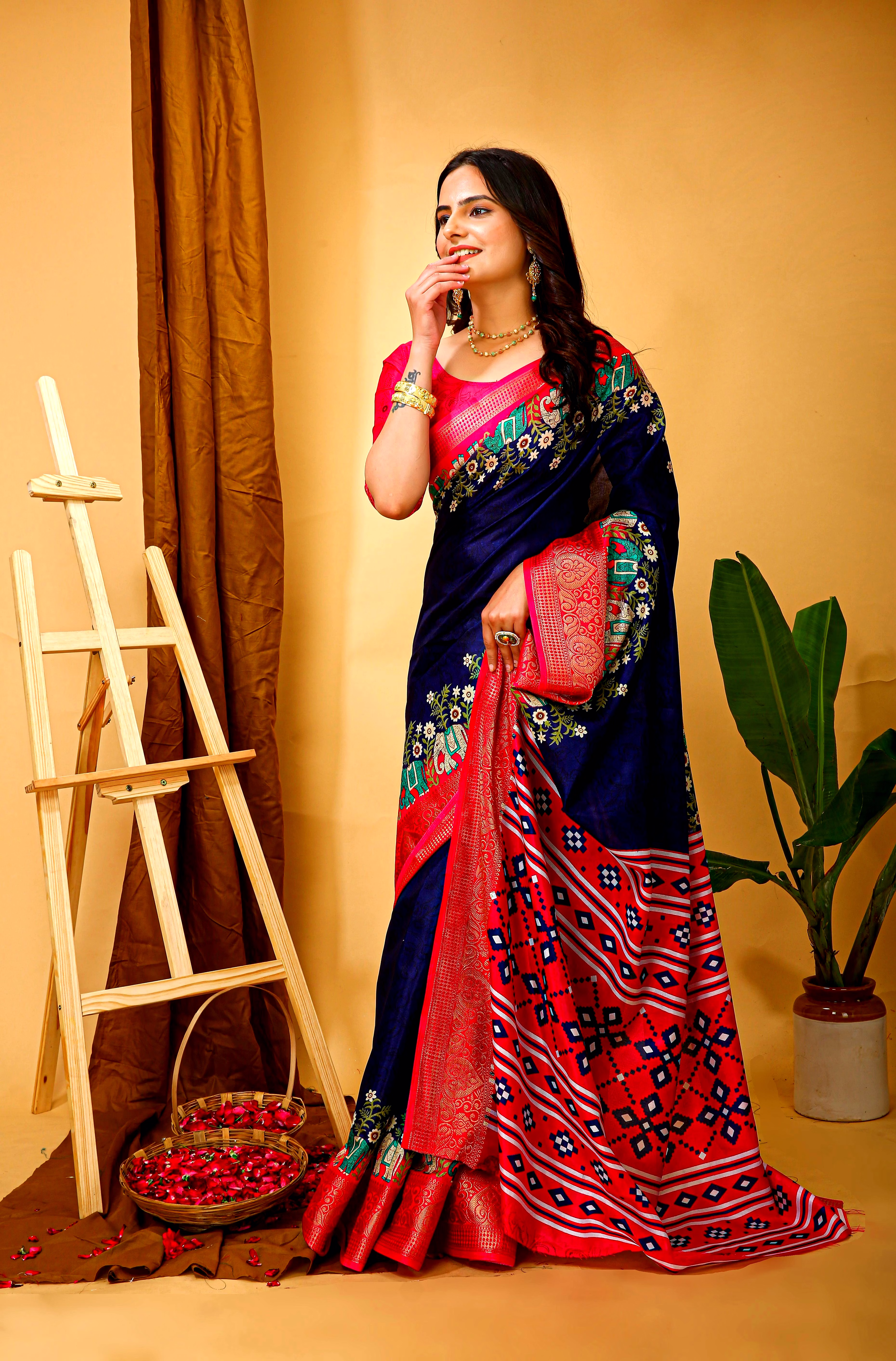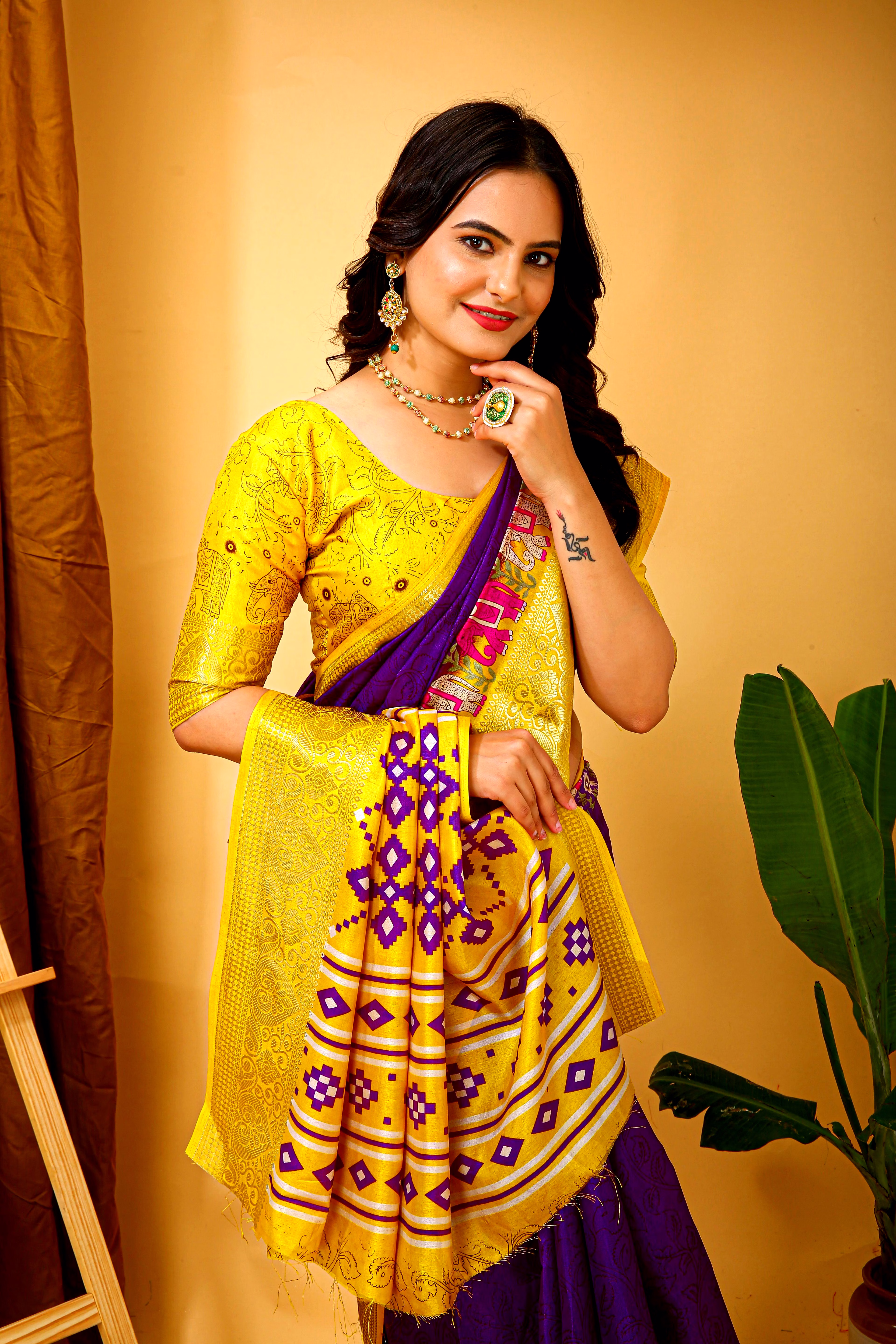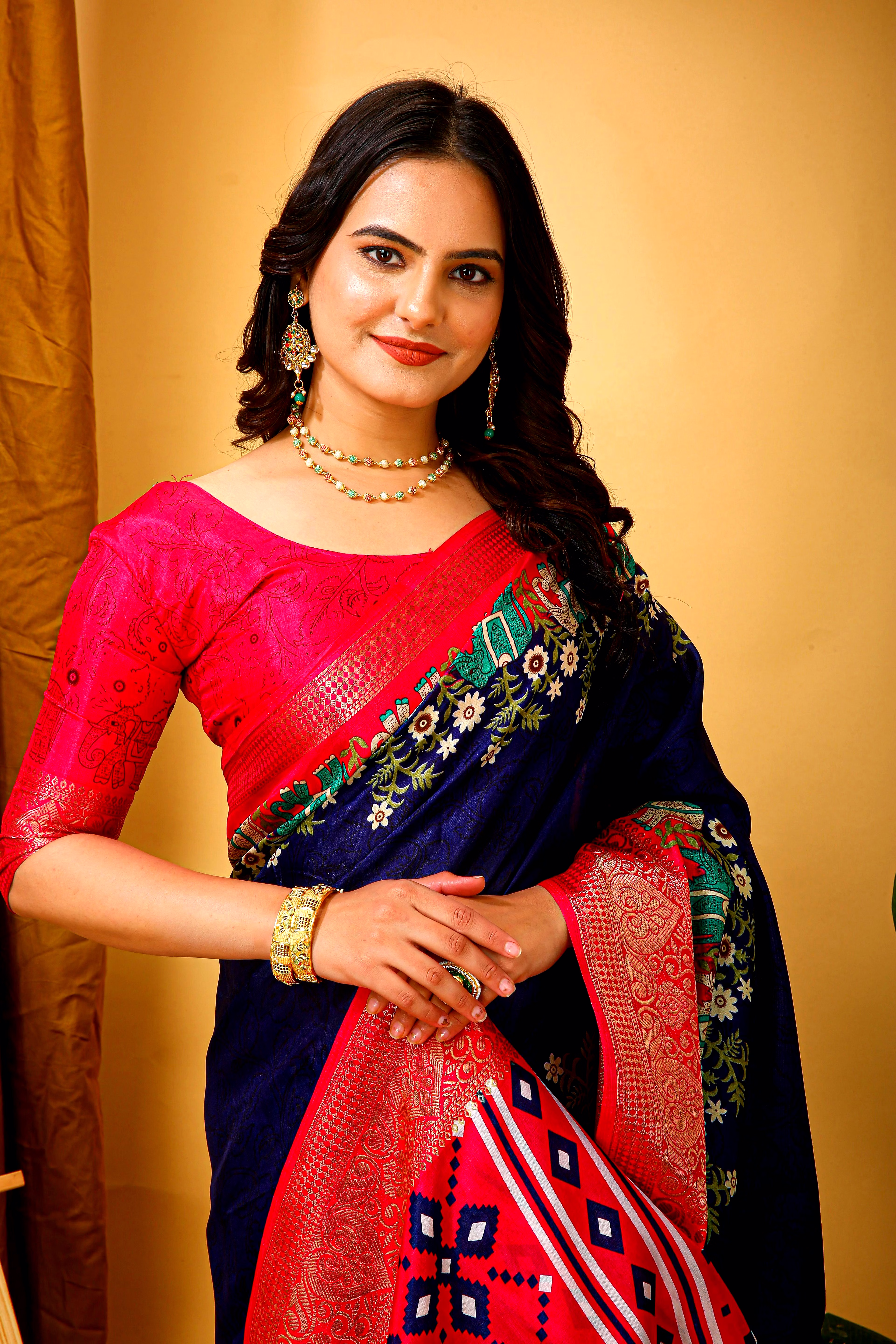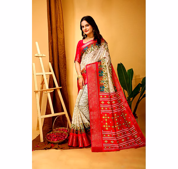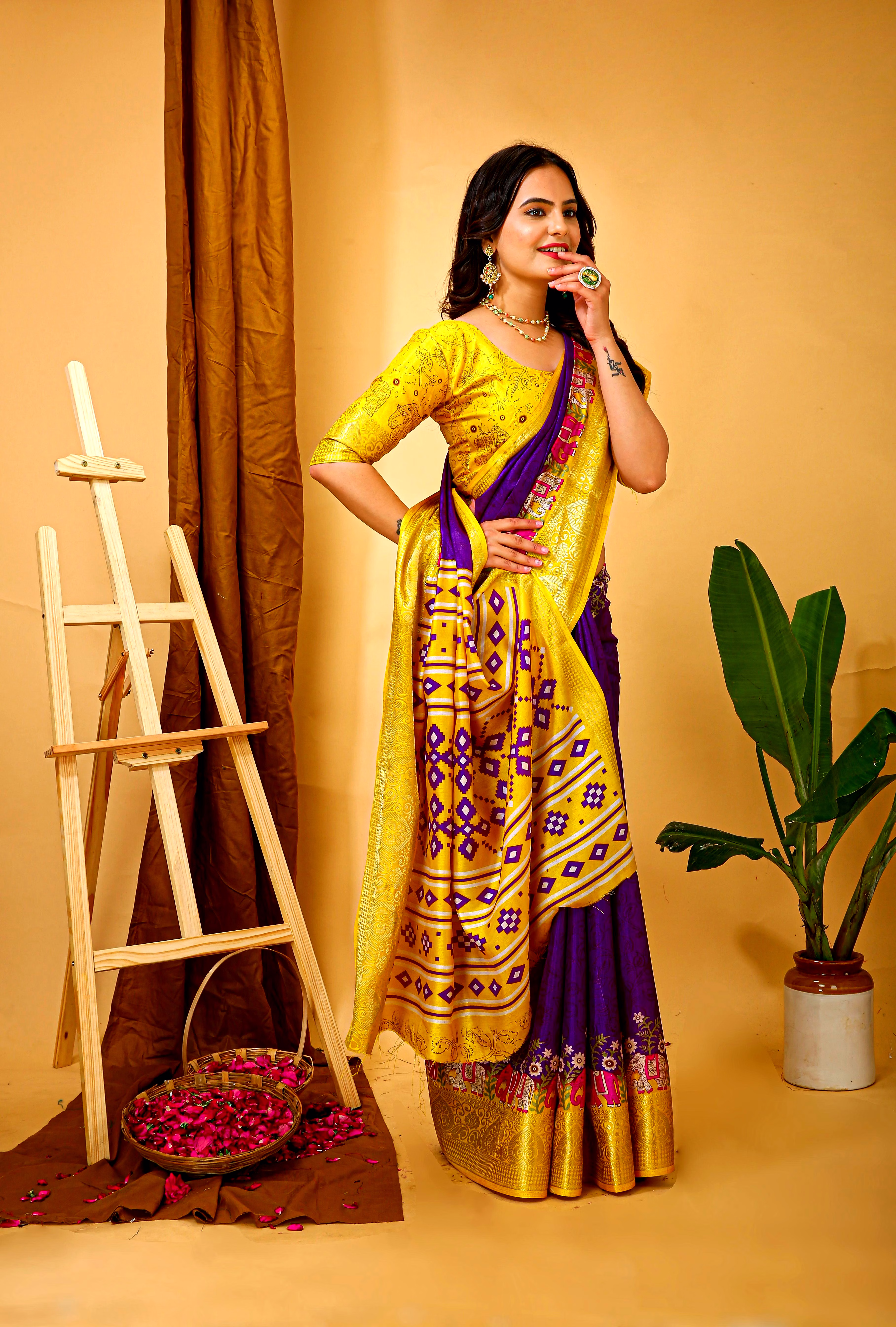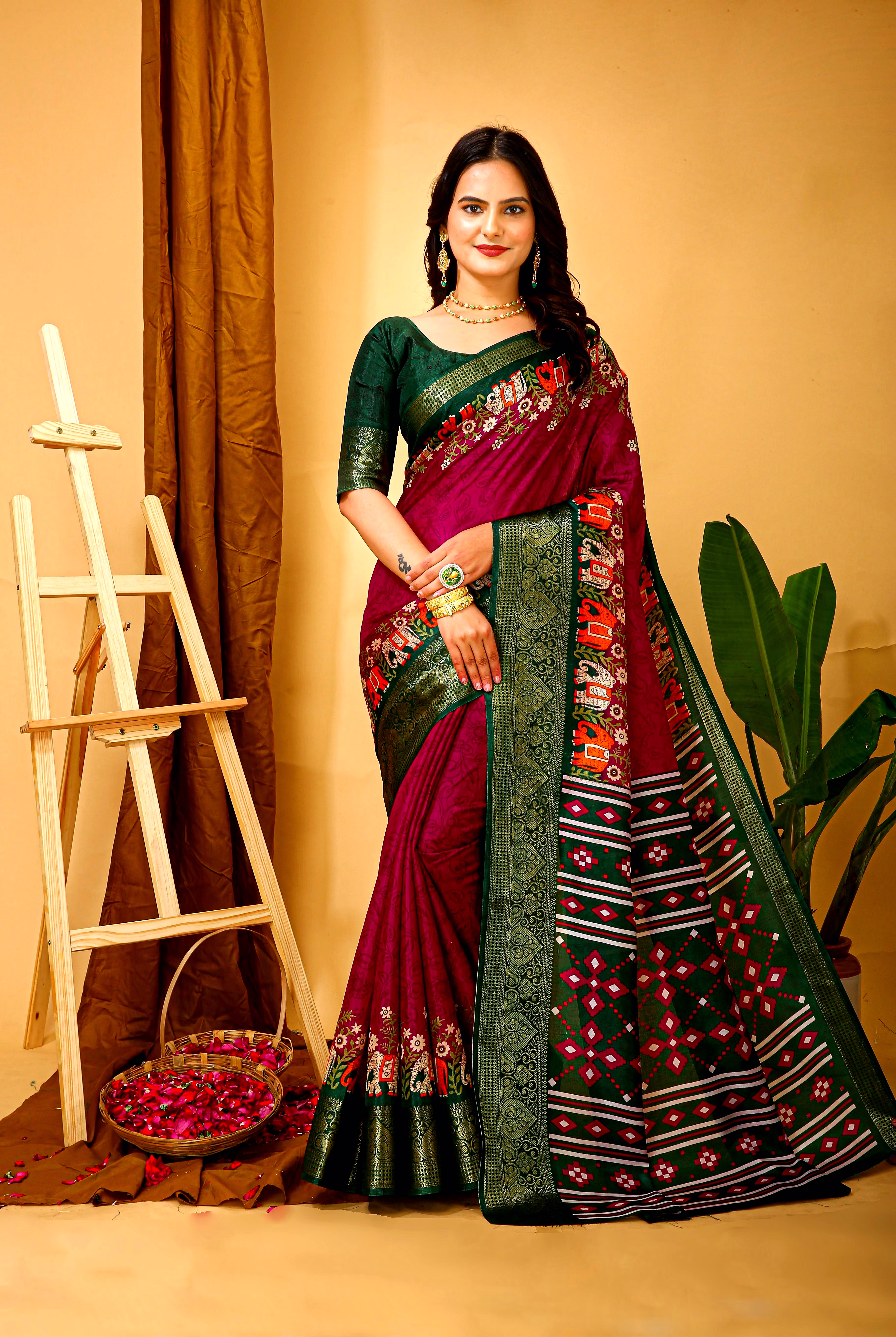 Embrace tradition with a touch of modernity as you adorn this Dola Silk Saree. From intricate blouse designs to contemporary draping styles, this saree is a perfect blend of heritage and trend, ideal for women seeking a fusion of classic elegance and contemporary fashion.