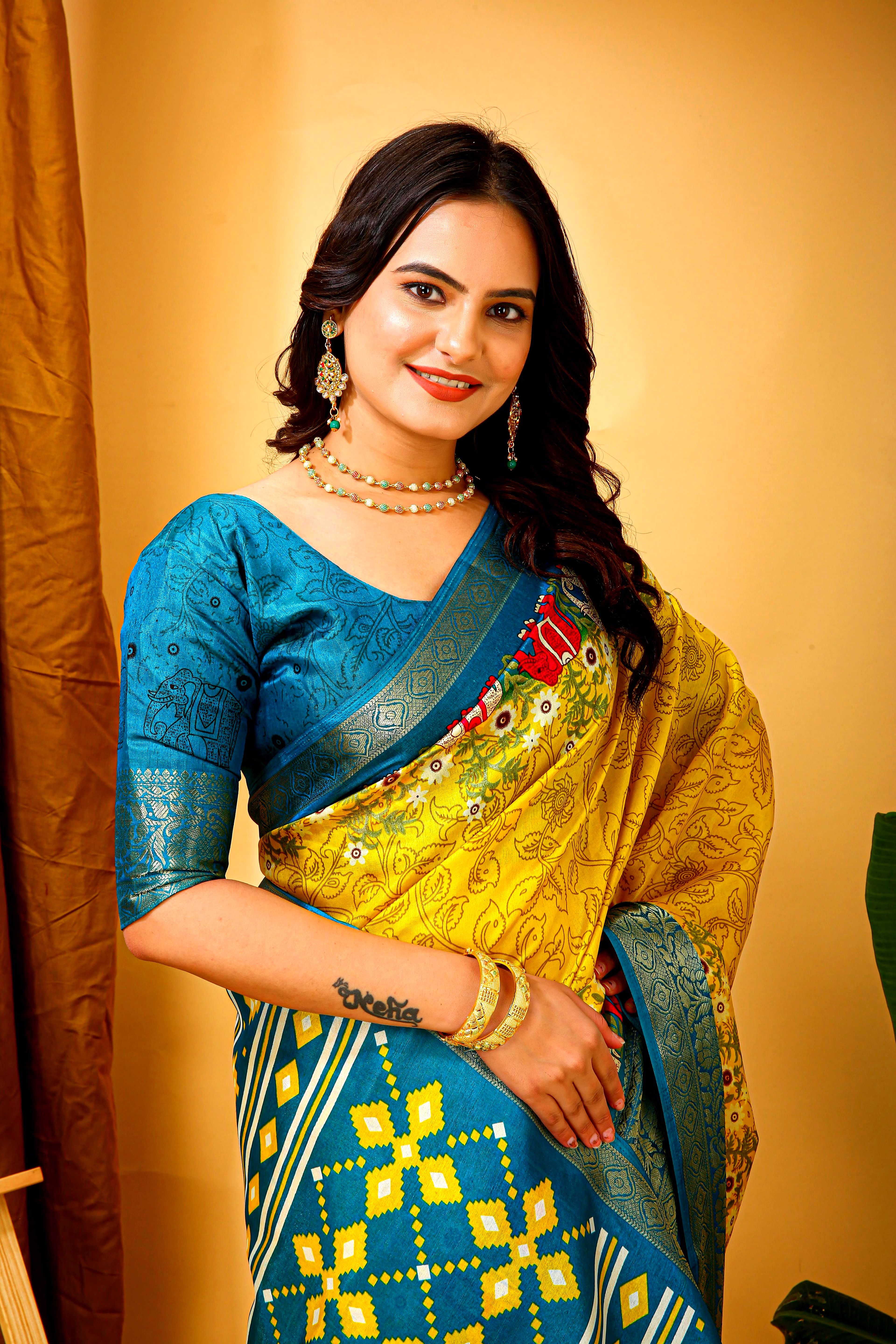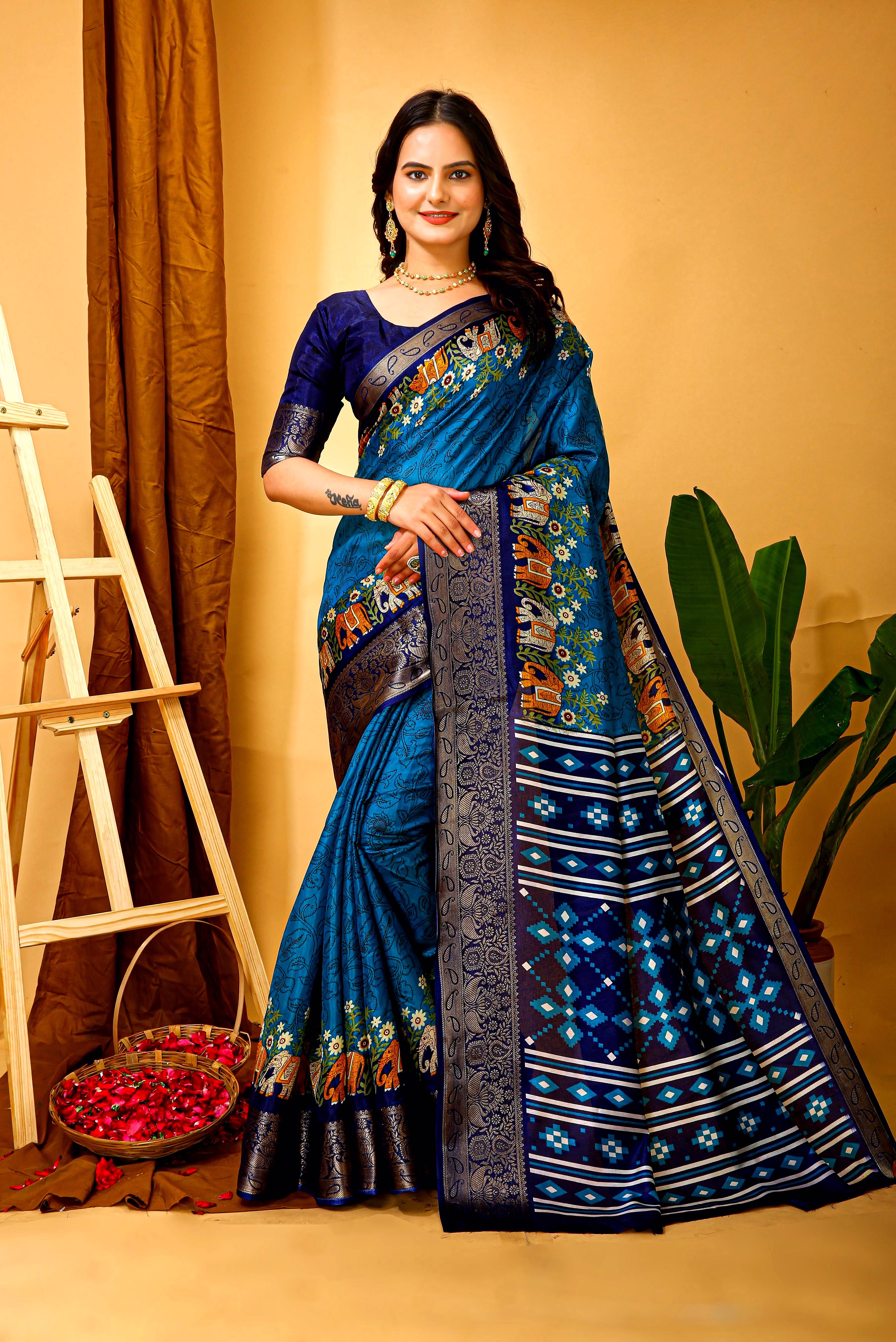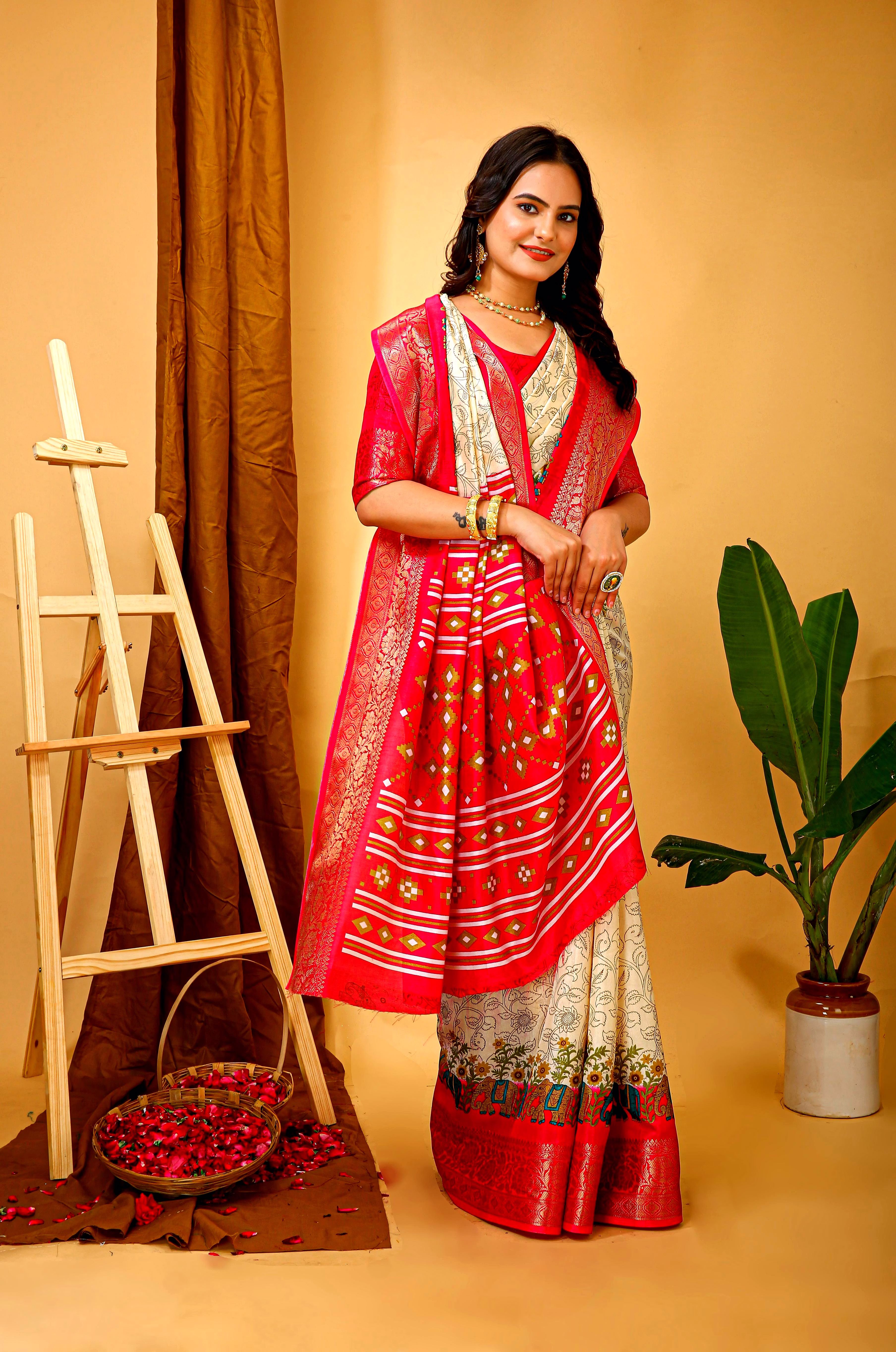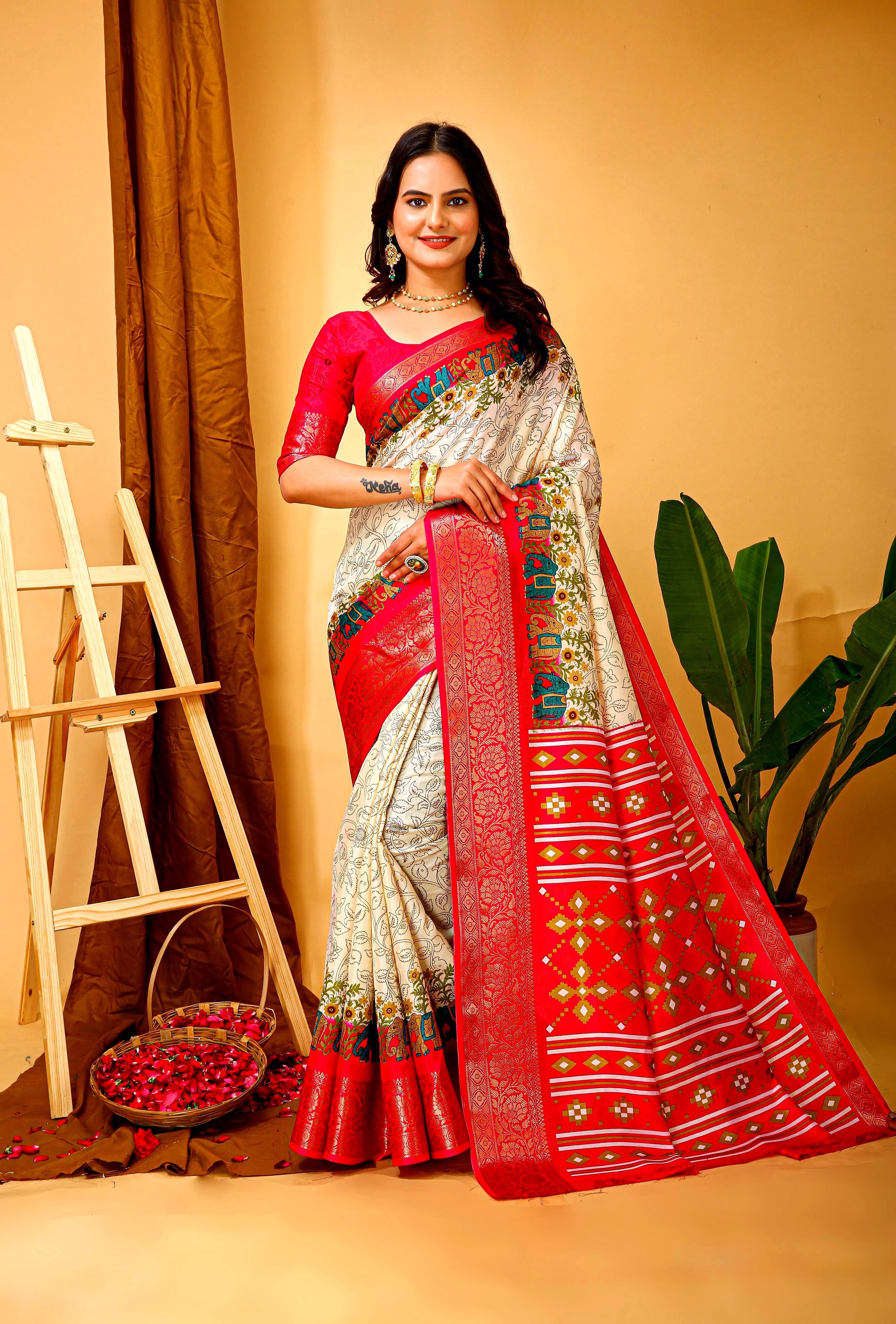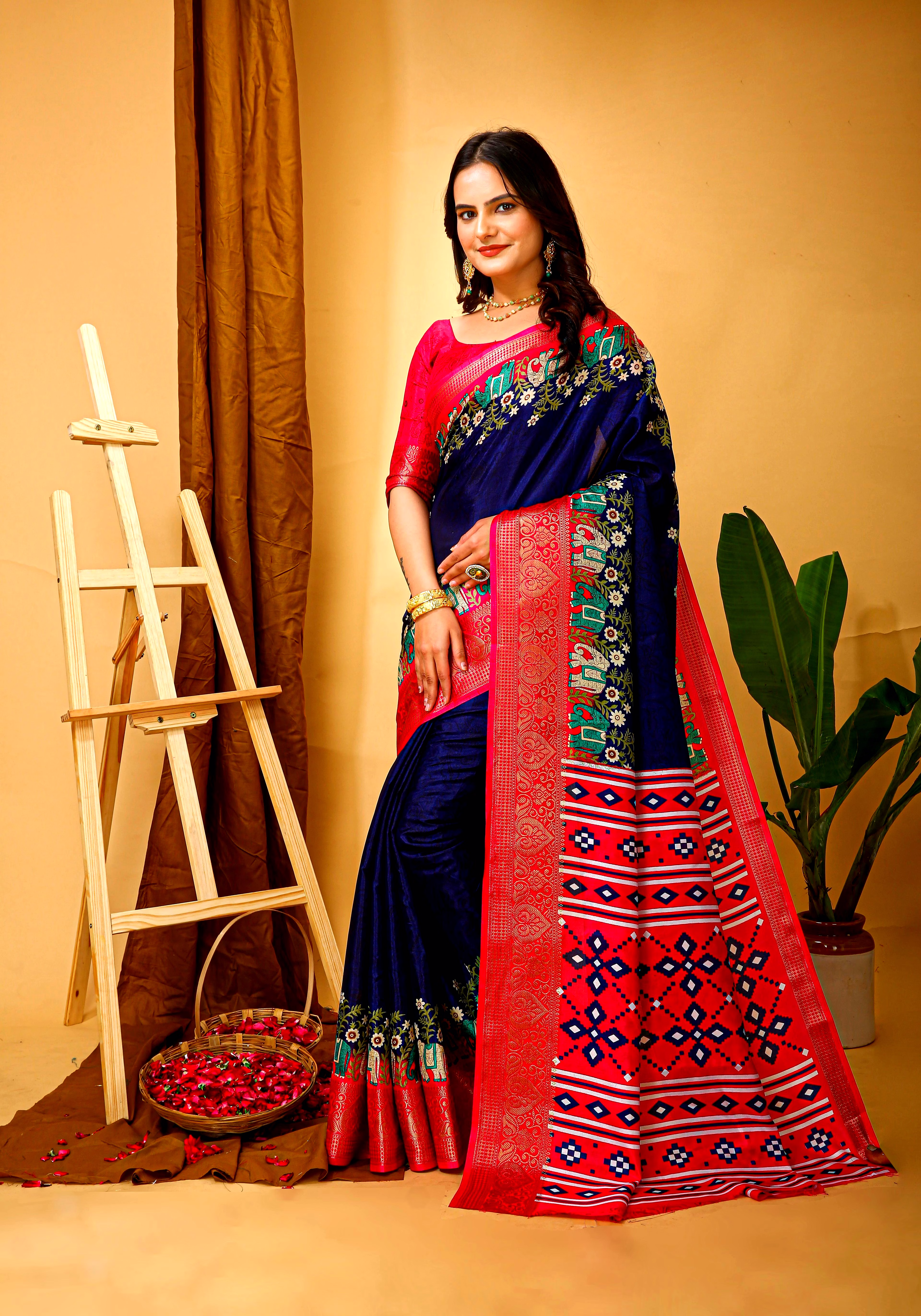 Embrace tradition with a touch of modernity as you adorn this Dola Silk Saree. From intricate blouse designs to contemporary draping styles, this saree is a perfect blend of heritage and trend, ideal for women seeking a fusion of classic elegance and contemporary fashion.