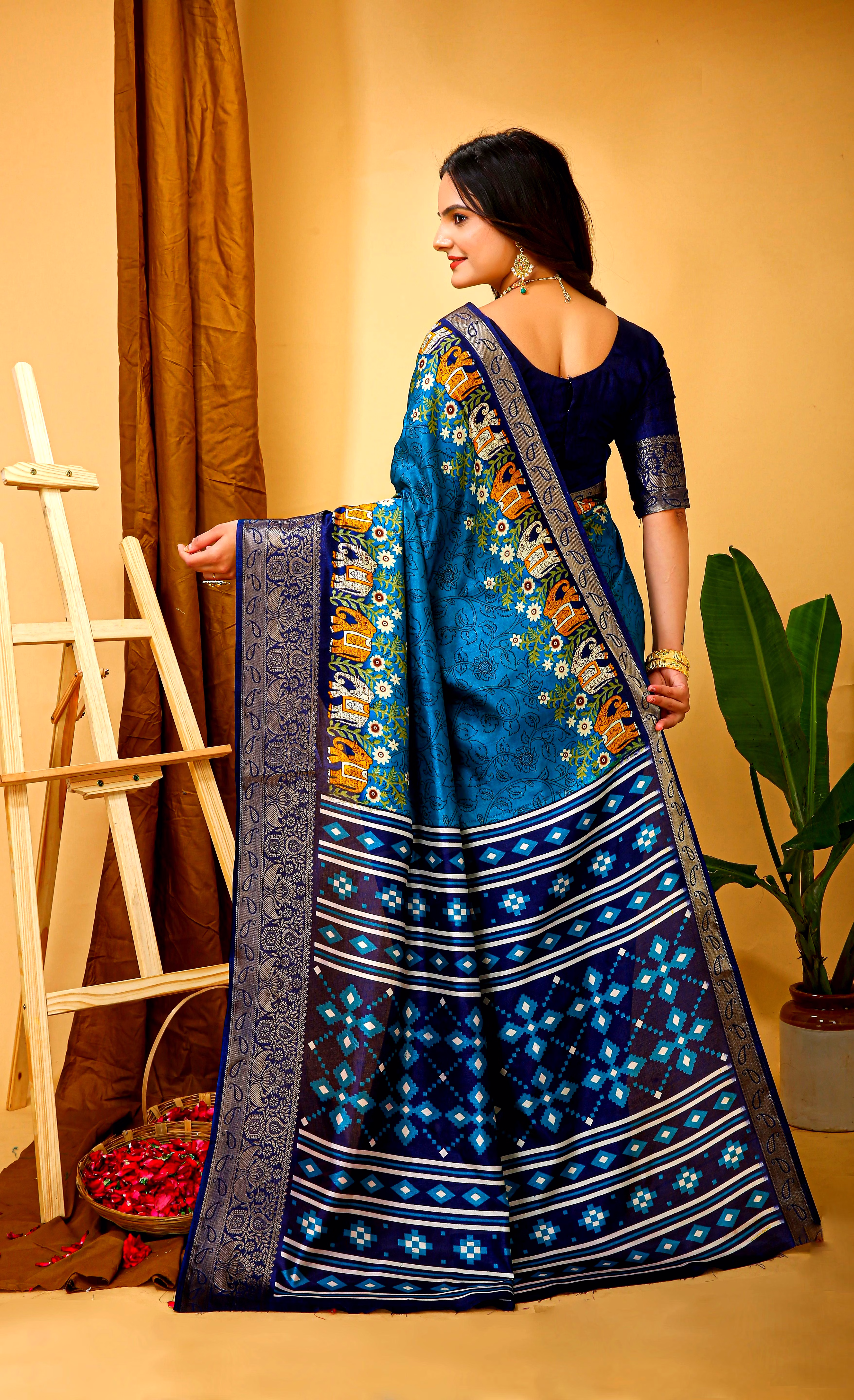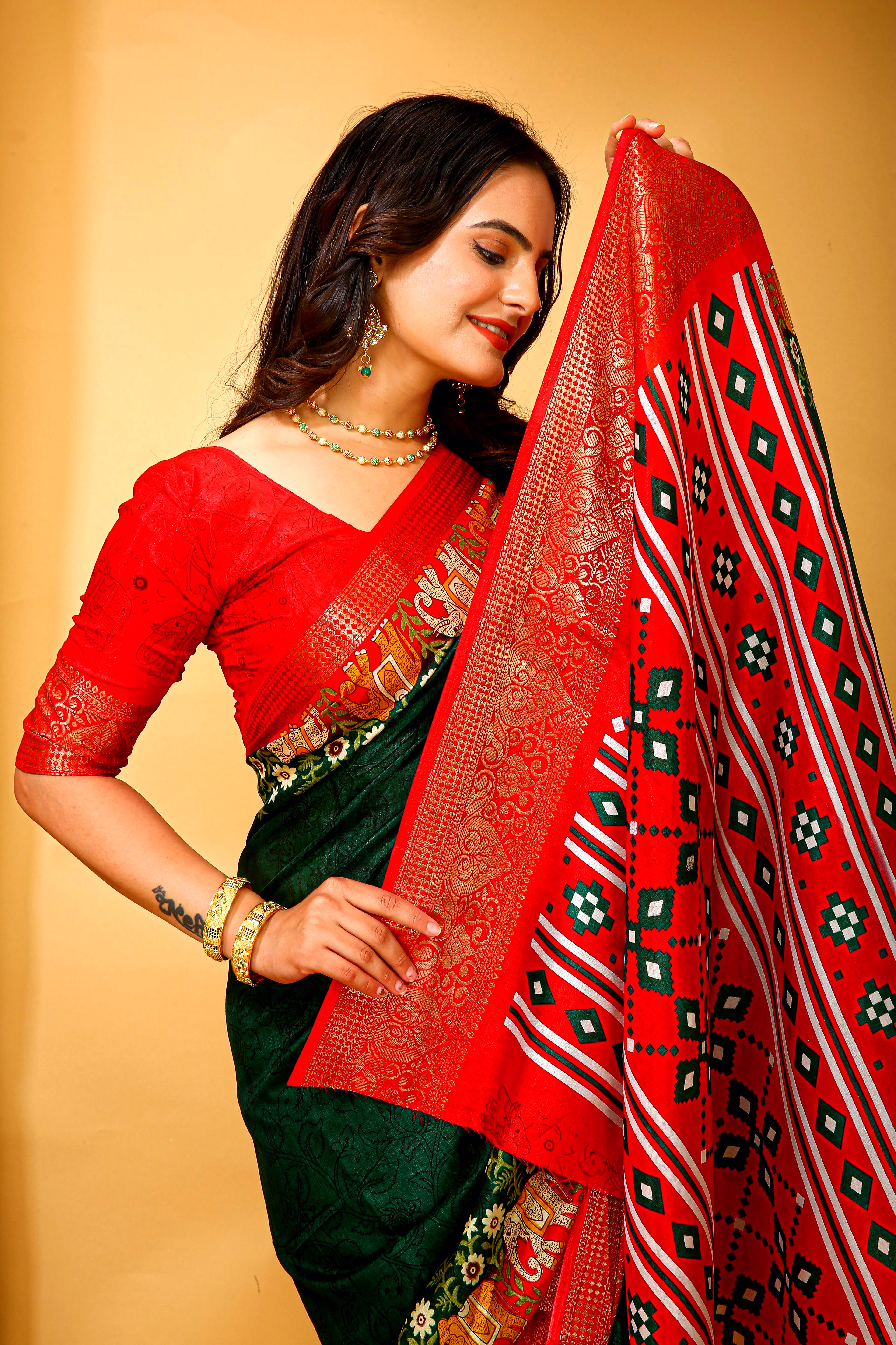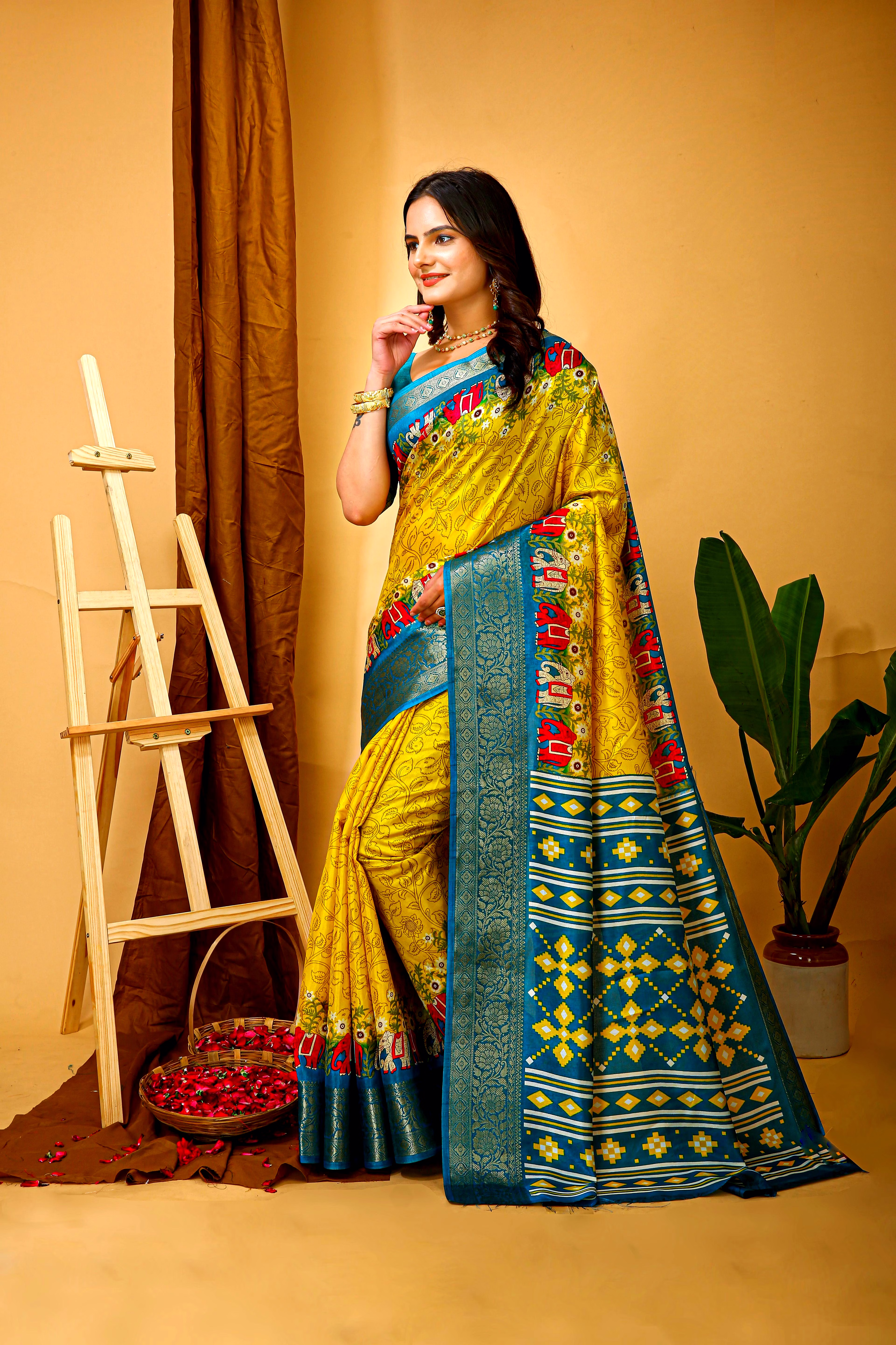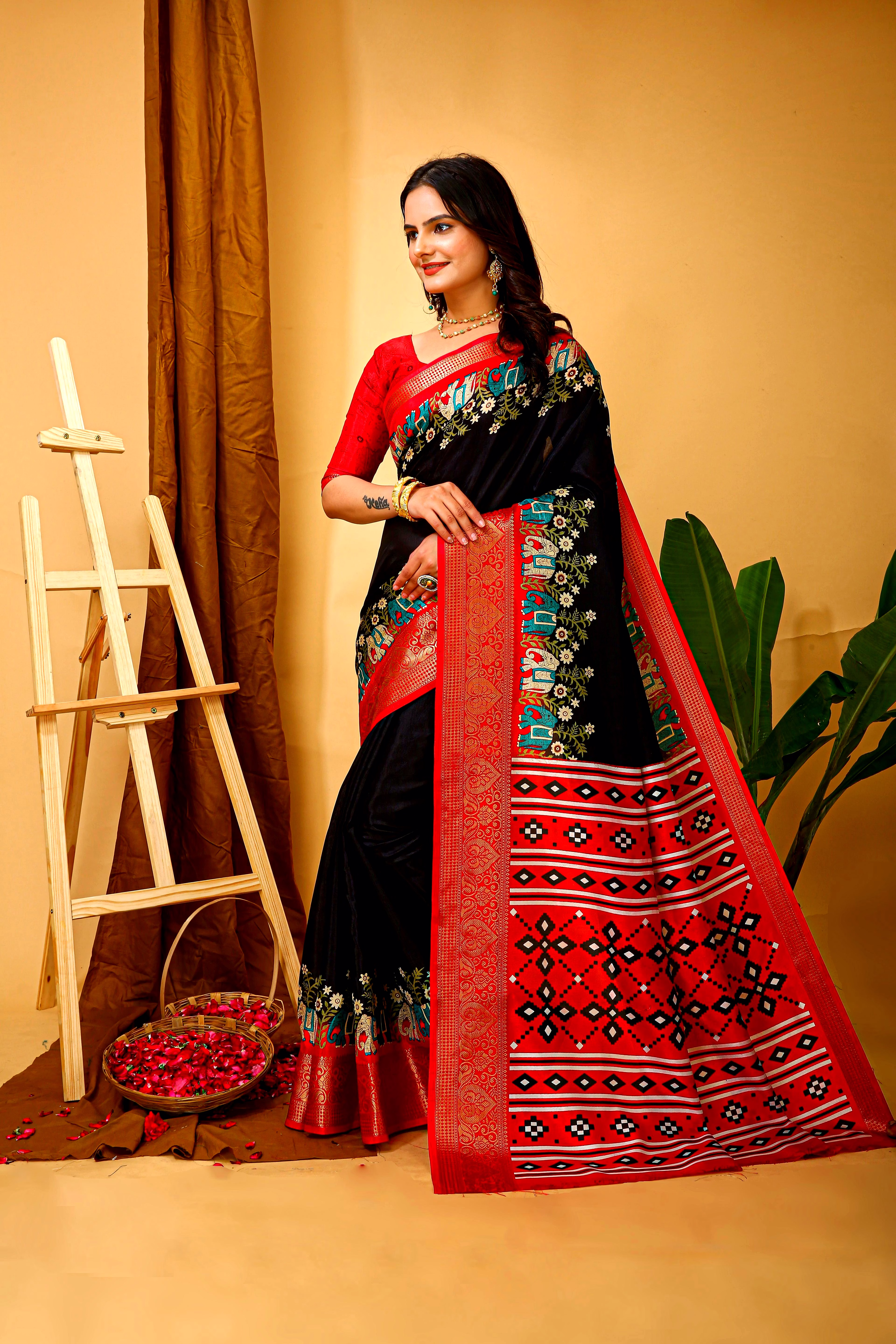 Embrace tradition with a touch of modernity as you adorn this Dola Silk Saree. From intricate blouse designs to contemporary draping styles, this saree is a perfect blend of heritage and trend, ideal for women seeking a fusion of classic elegance and contemporary fashion.