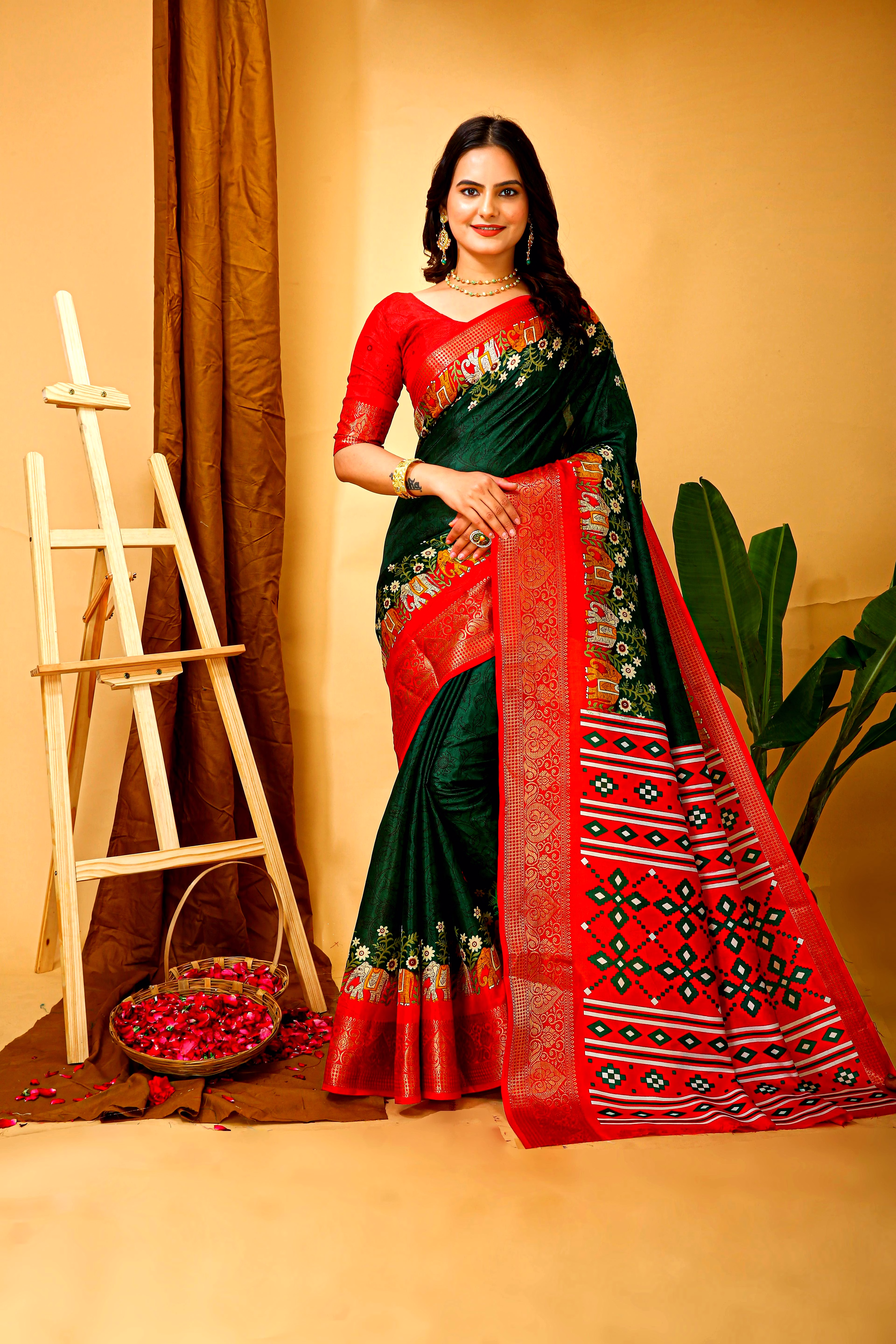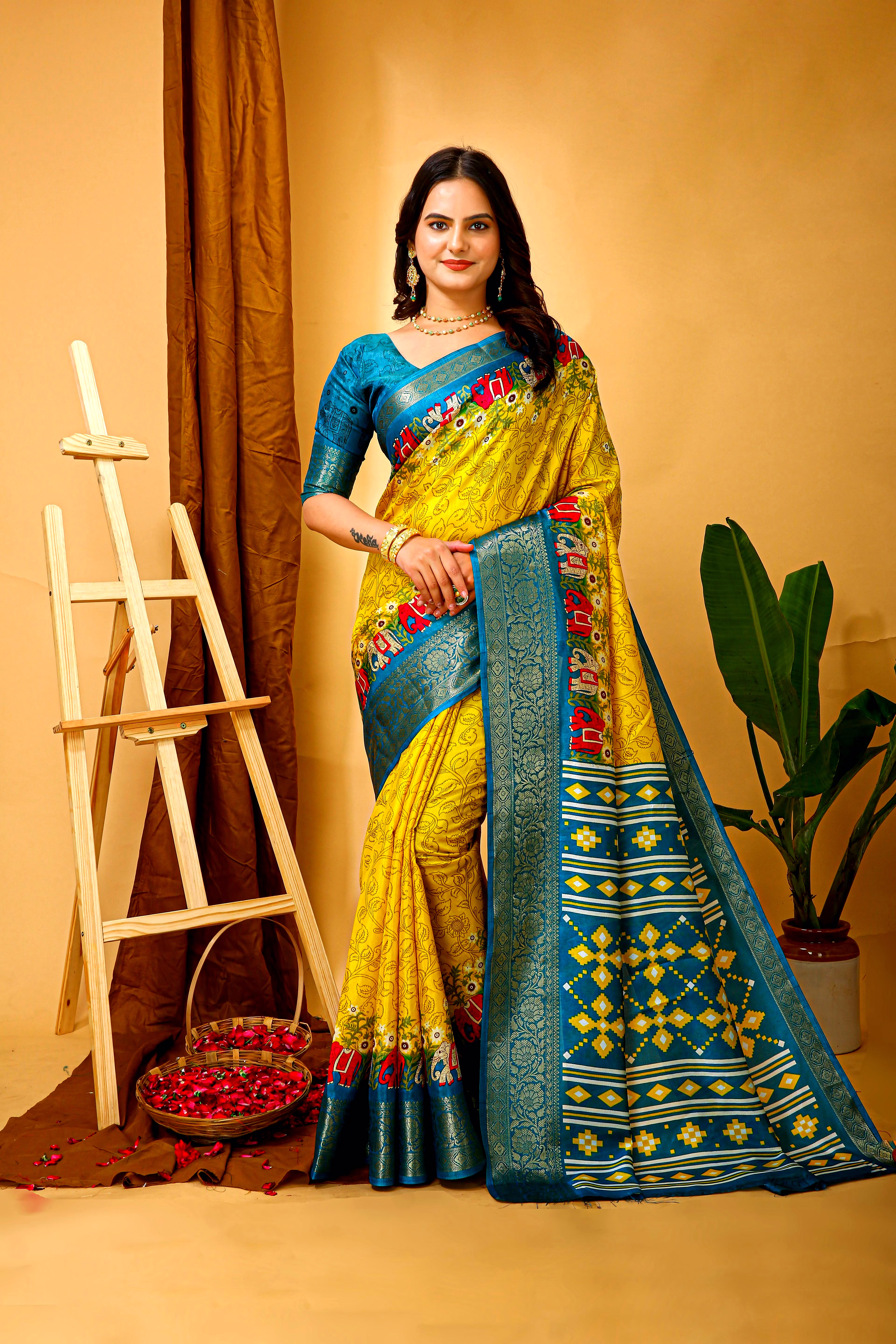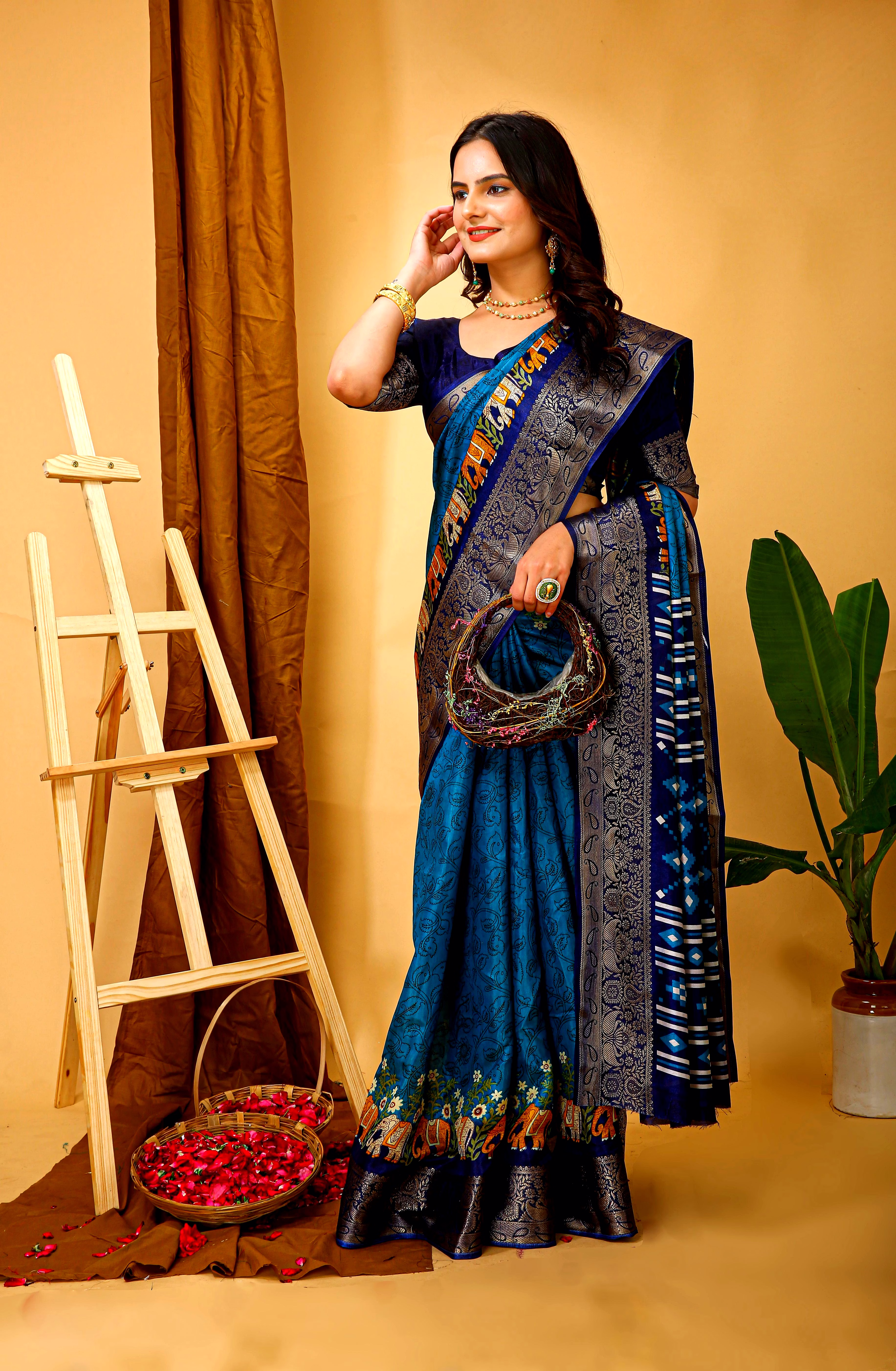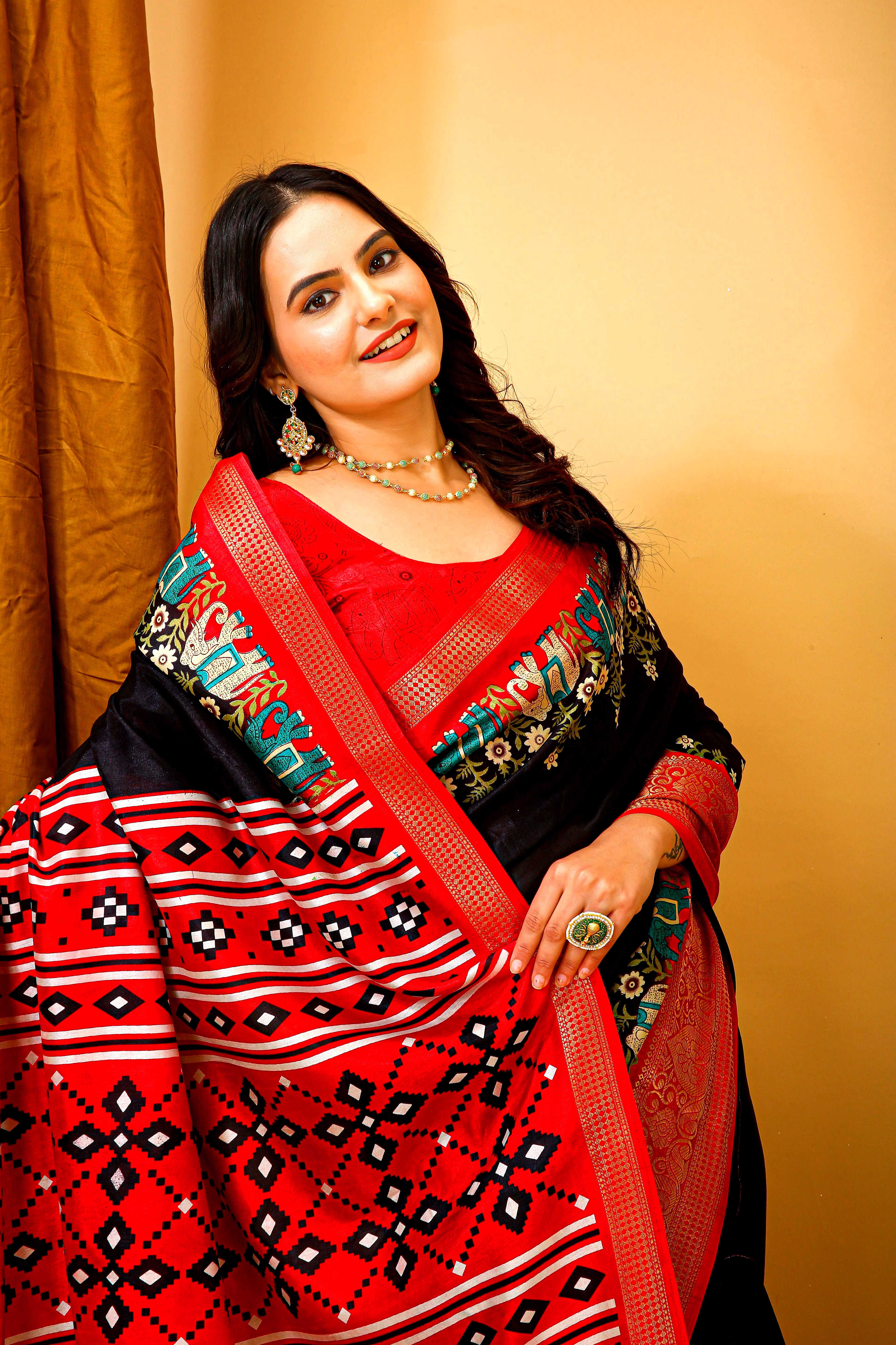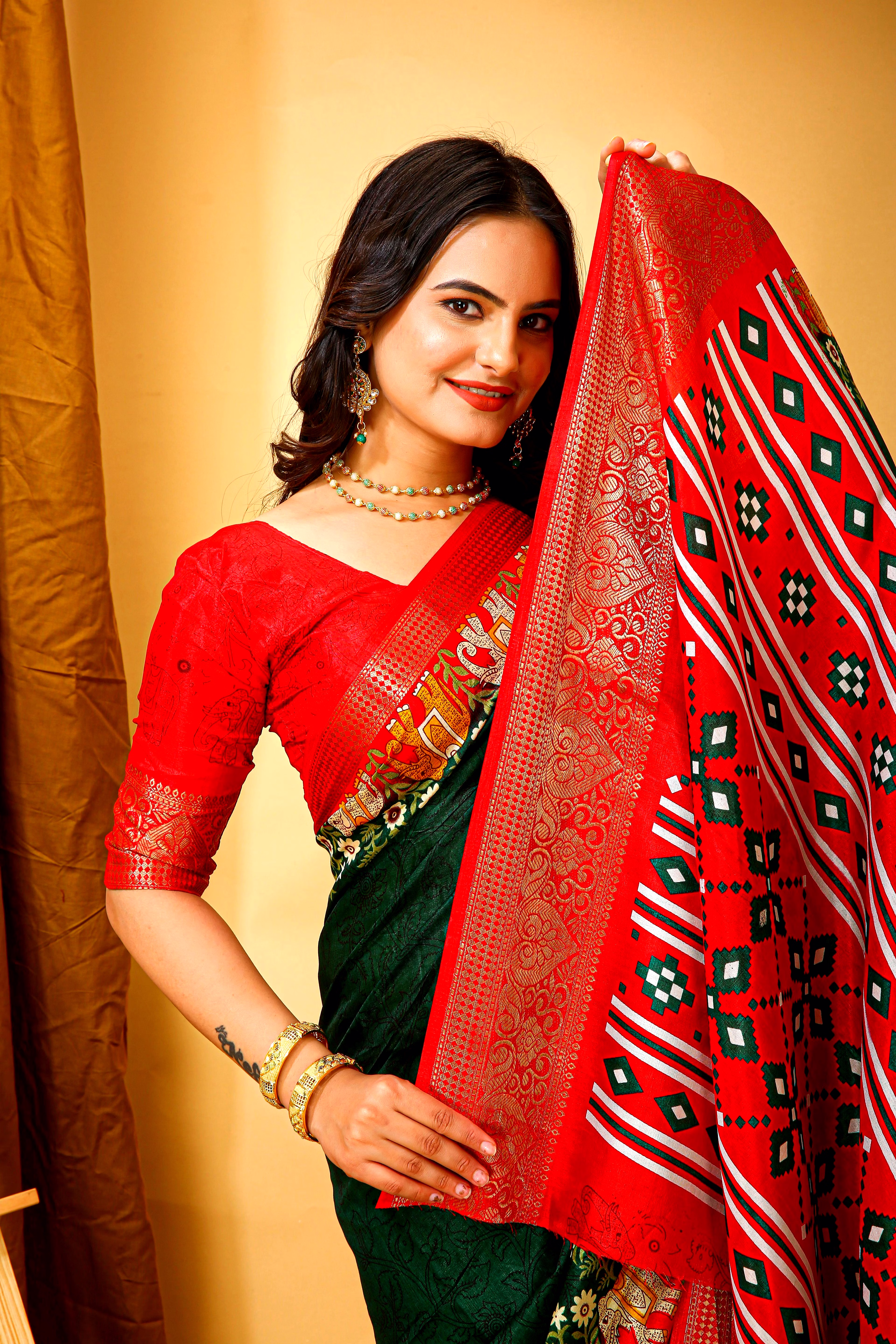 Embrace tradition with a touch of modernity as you adorn this Dola Silk Saree. From intricate blouse designs to contemporary draping styles, this saree is a perfect blend of heritage and trend, ideal for women seeking a fusion of classic elegance and contemporary fashion.