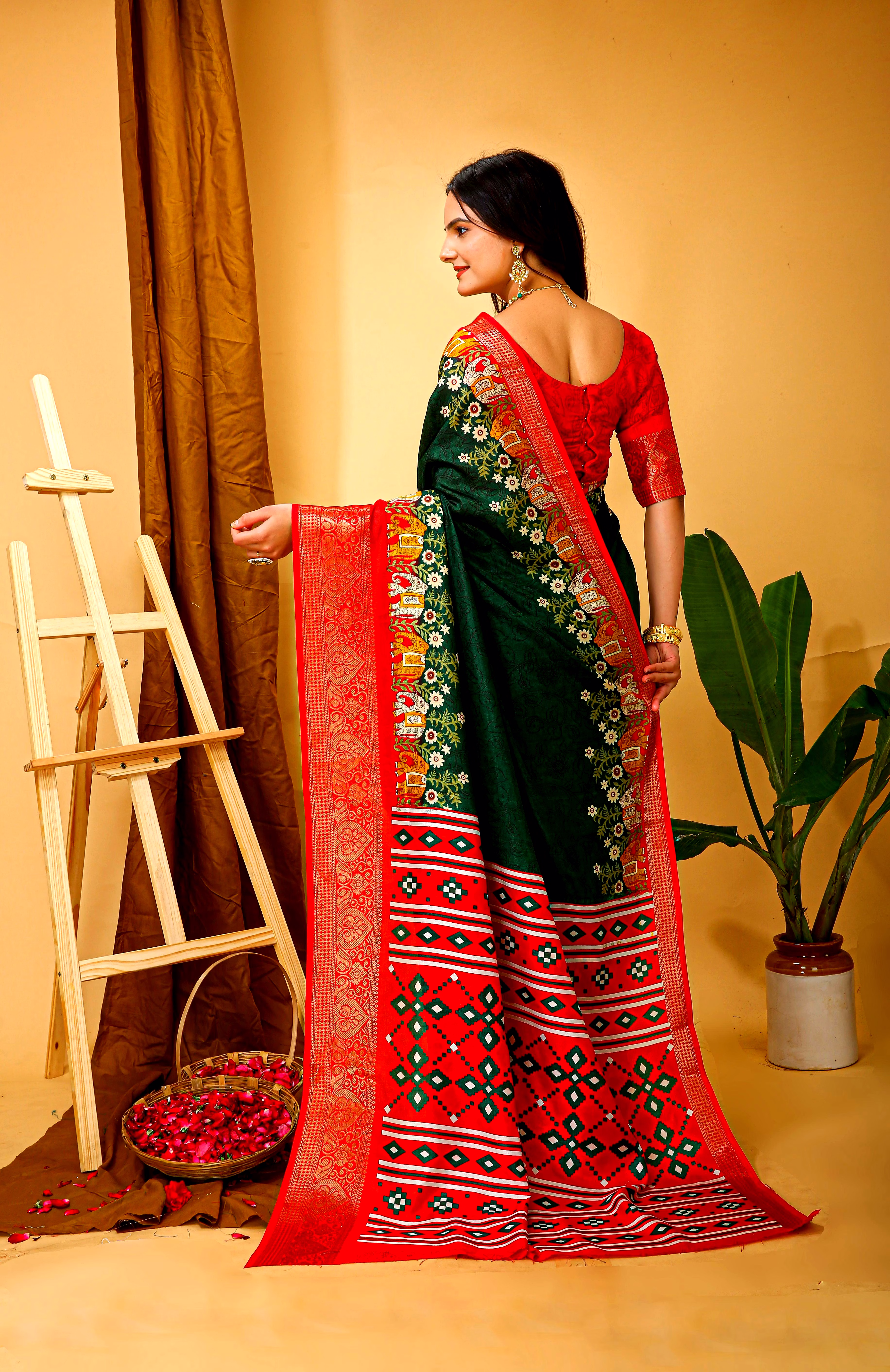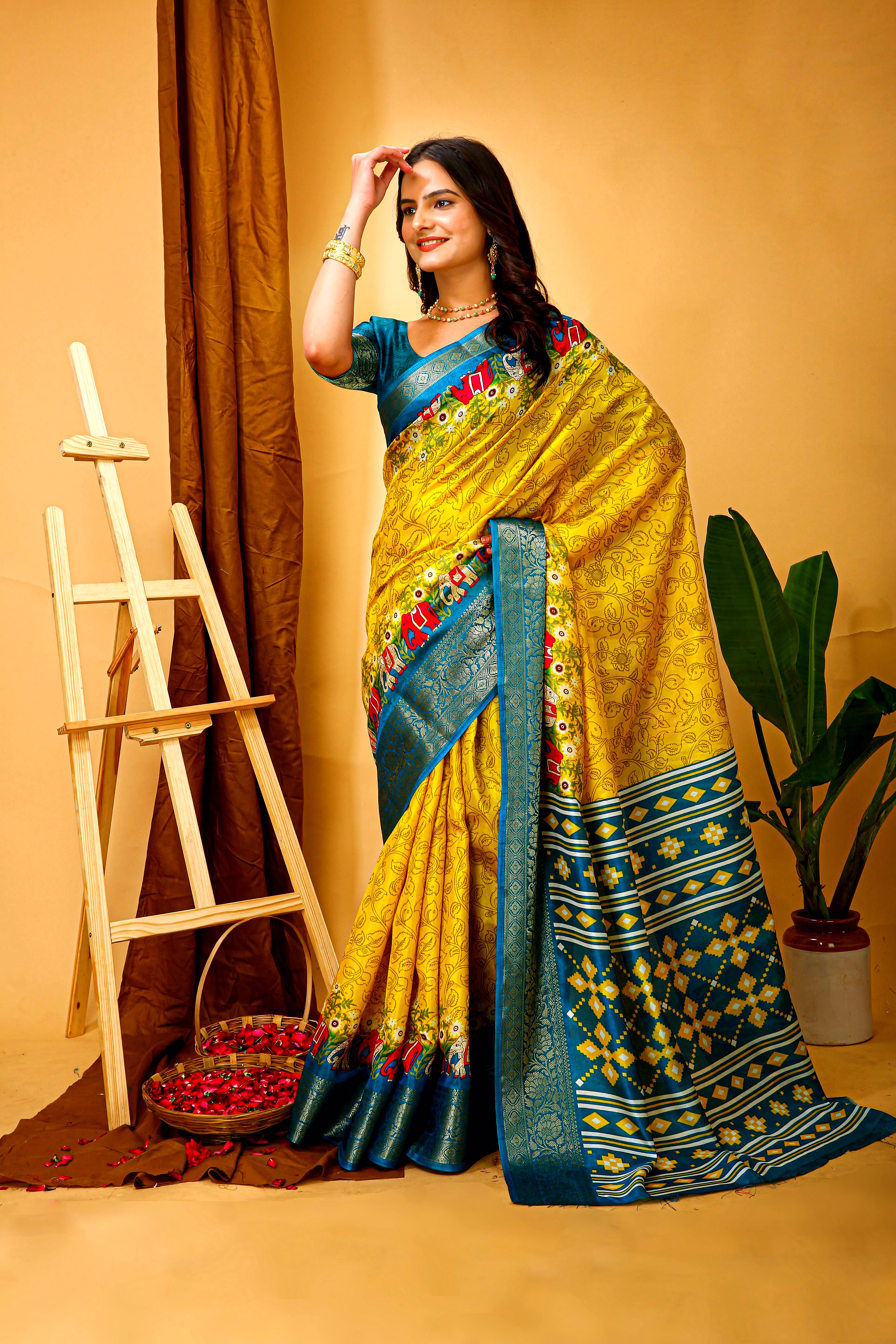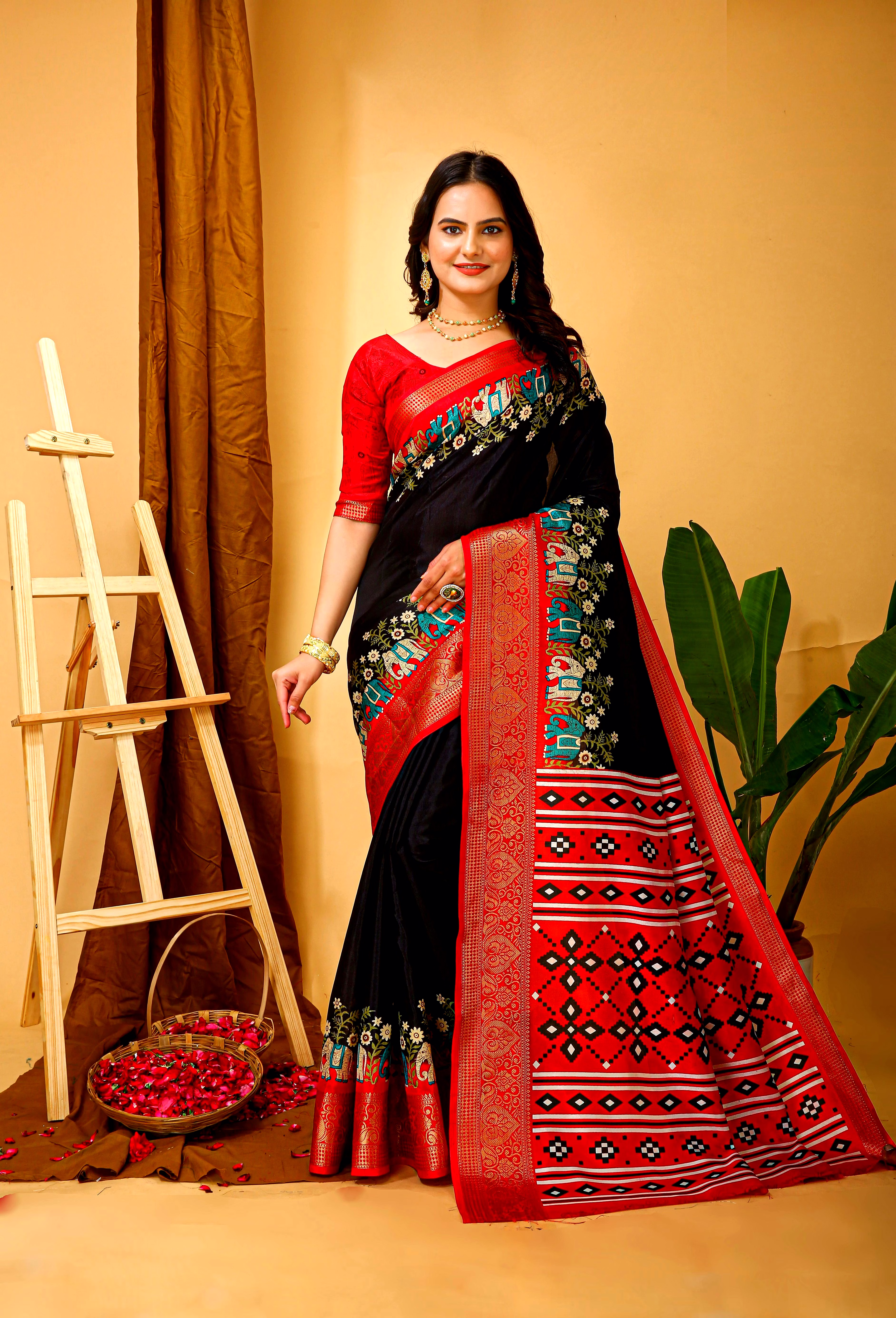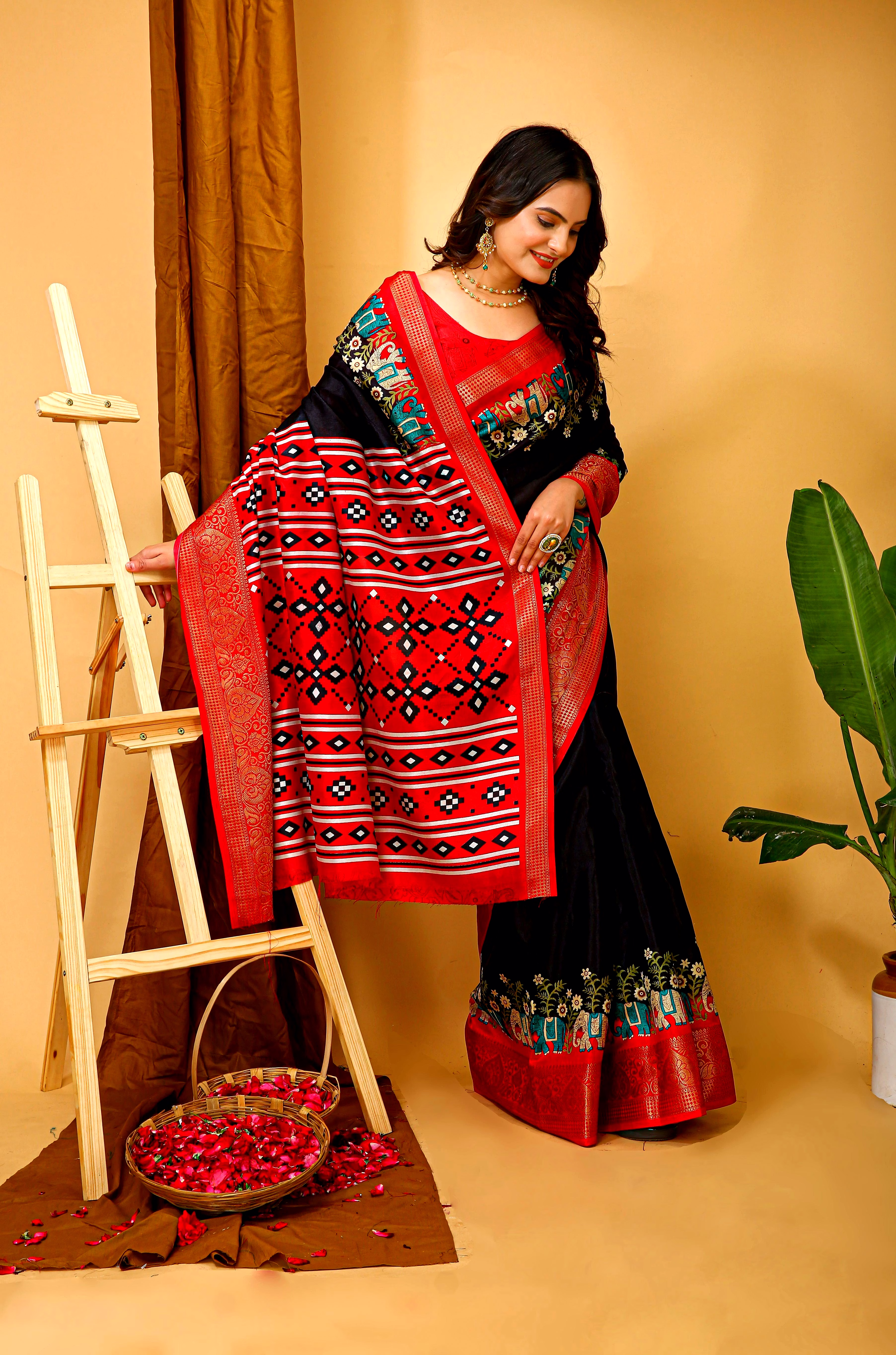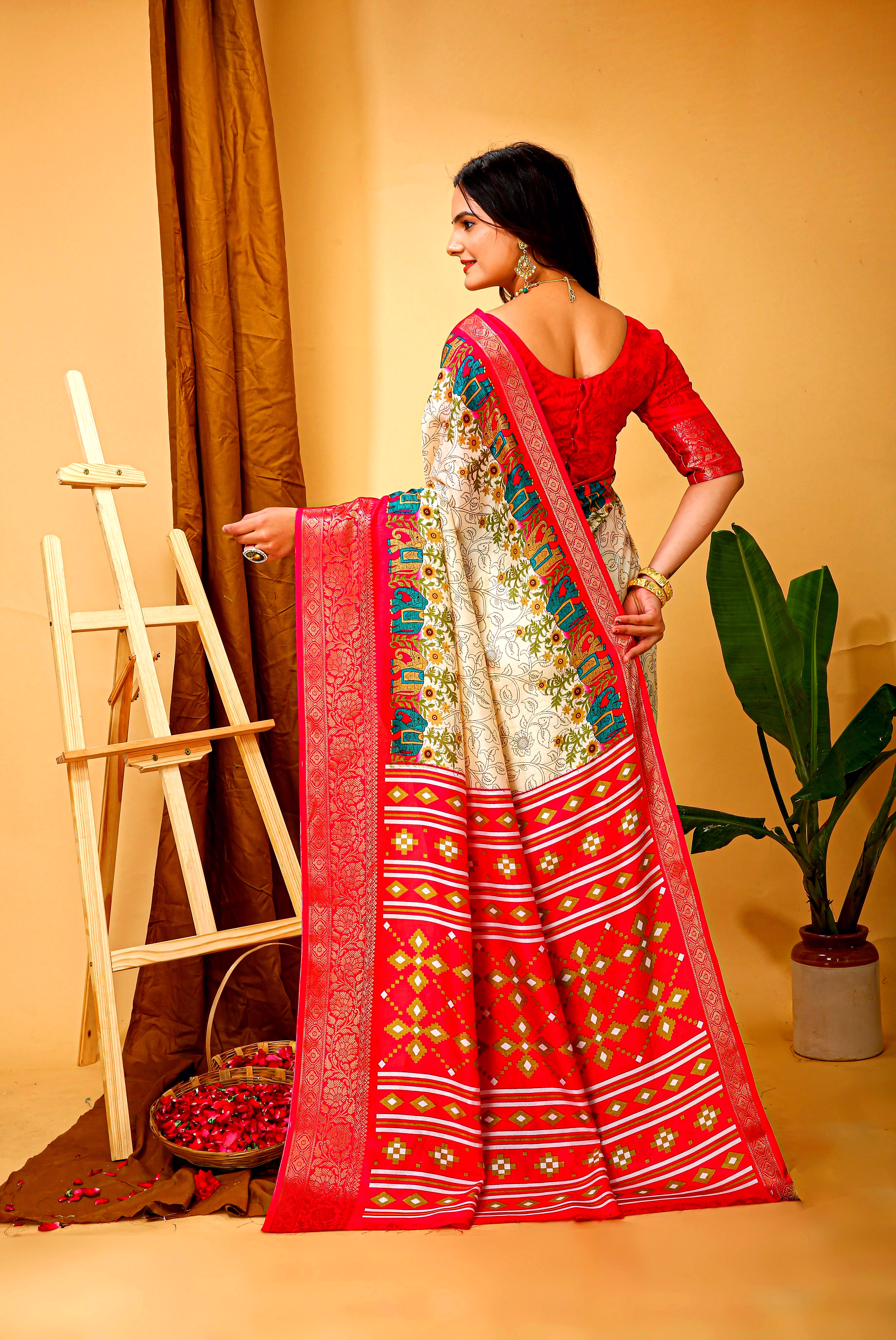 Embrace tradition with a touch of modernity as you adorn this Dola Silk Saree. From intricate blouse designs to contemporary draping styles, this saree is a perfect blend of heritage and trend, ideal for women seeking a fusion of classic elegance and contemporary fashion.