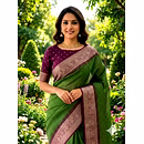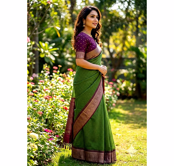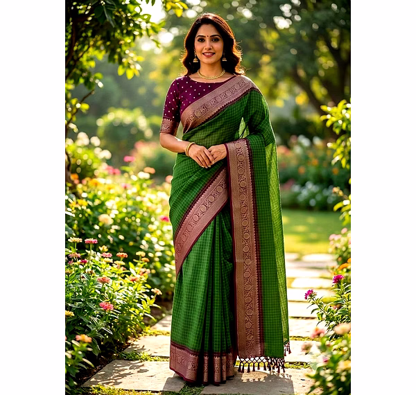 Work / Design: Intricate Zari Woven Border paired with vibrant Digital Prints and traditional motifs.