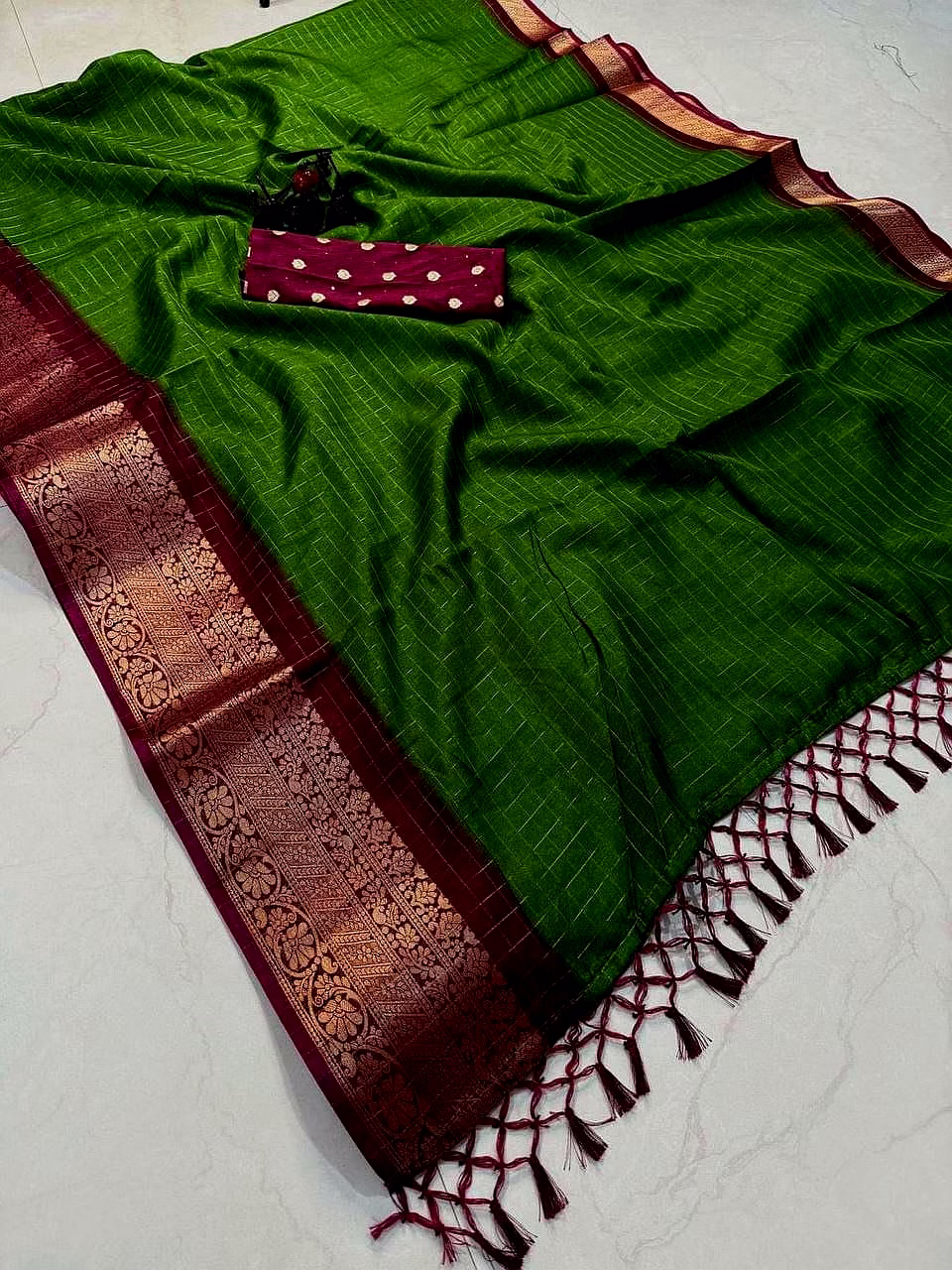 Experience the perfect blend of tradition and modern luxury with our Dola Silk Saree. Lightweight, breathable, and boasting a rich natural sheen, this saree is designed for the woman who wants to shine comfortably from sunrise to the last dance.