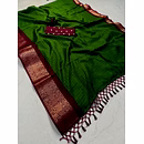 Saree Fabric: Premium Dola Silk (a high-quality blend offering a soft, buttery texture and rich luster).