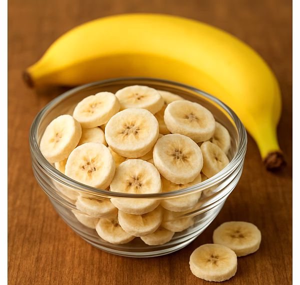 Nutrajun LLP offers premium Freeze Dried Banana Slices made from ripe Indian bananas. Naturally sweet, crisp, and rich in flavor — perfect for snacks, cereals, smoothies, and desserts.