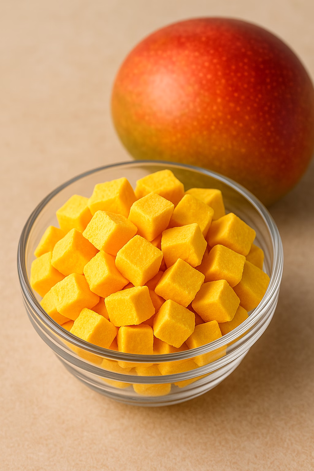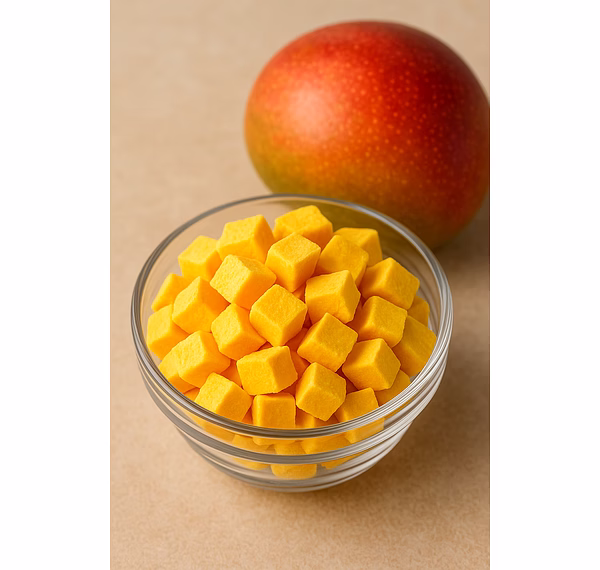 Nutrajun LLP offers premium Freeze Dried Mango Cubes made from fresh Indian Alphonso and Kesar mangoes. Retains natural sweetness, flavor, and nutrition — perfect for global export and B2B food industries.