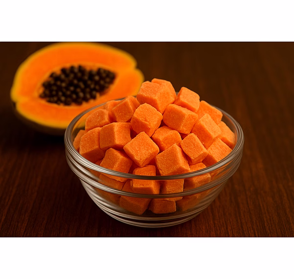 Bring home the sweetness of the tropics with Nutrajun LLP’s Freeze Dried Papaya Cubes, carefully crafted to deliver freshness and nutrition in every bite. Using state-of-the-art freeze-drying technology, the papaya retains its vibrant orange color, sweet aroma, and natural taste while remaining shelf-stable for up to 24 months.