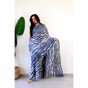 Introducing our Premium Georgette Gown Saree with Exclusive Print - a perfect blend of elegance and style. This exquisite saree is designed to make you stand out on any occasion. Crafted with care, this saree is made from high-quality georgette fabric, known for its lightweight and flowing drape. The premium georgette ensures maximum comfort and ease of movement, making it perfect for long hours of wear. What sets this saree apart is its exclusive print. Created by our talented designers, this unique print showcases intricate patterns and vibrant colors that are sure to catch everyone's attention. The combination of traditional and contemporary motifs creates a stunning visual appeal that is both captivating and elegant. Not only does this saree look beautiful, but it also offers numerous benefits. The georgette fabric is easy to maintain, requiring minimal ironing and retaining its shape even after multiple washes. The lightweight nature of the fabric makes it ideal for all-day wear, ensuring you stay comfortable from morning to night. Whether you're attending a wedding, a festive celebration, or any special occasion, this Premium Georgette Gown Saree with Exclusive Print is a must-have in your wardrobe. Its versatility allows you to style it in multiple ways, whether you prefer a traditional drape or a modern fusion look. Make a statement with this stunning saree and be the center of attention wherever you go. Elevate your style and embrace the beauty of the Premium Georgette Gown Saree with Exclusive Print.