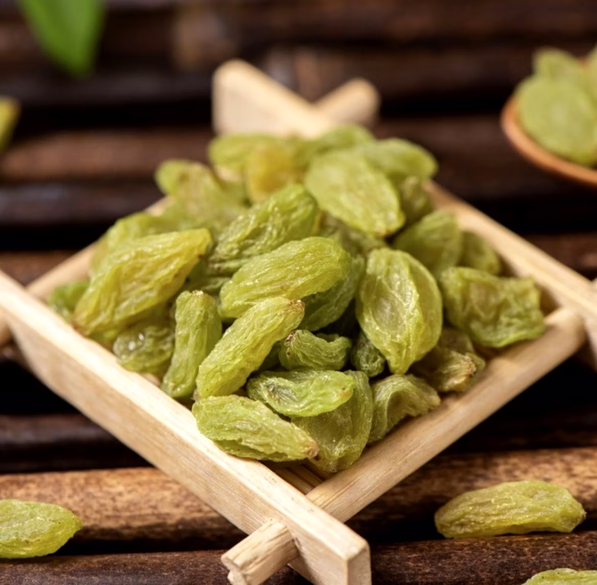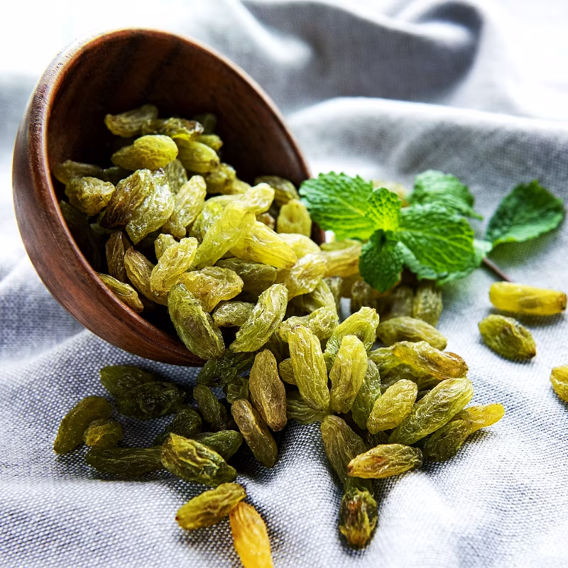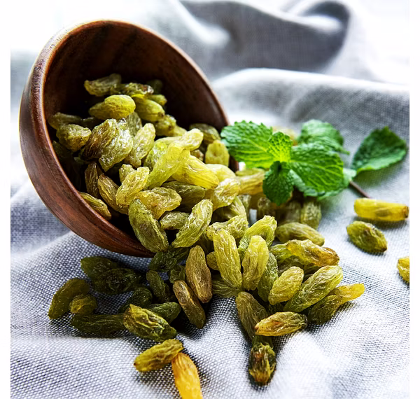 Green Raisins, also known as Kishmish, are nature’s own candy—sun-dried green grapes bursting with natural sweetness, chewy texture, and wholesome goodness. Each raisin is a powerhouse of nutrients, rich in iron, antioxidants, and natural sugars like glucose and fructose that offer an instant energy boost. Unlike processed sweets, these naturally sweet gems satisfy sugar cravings while nourishing the body. Ideal for maintaining daily vitality, they make a perfect guilt-free snack for both adults and children seeking a healthy lifestyle without compromising taste.