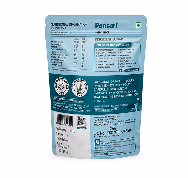 Packed with essential nutrients like iron, protein, and antioxidants, jowar atta supports digestion, boosts energy levels, and contributes to overall wellness and heart health.