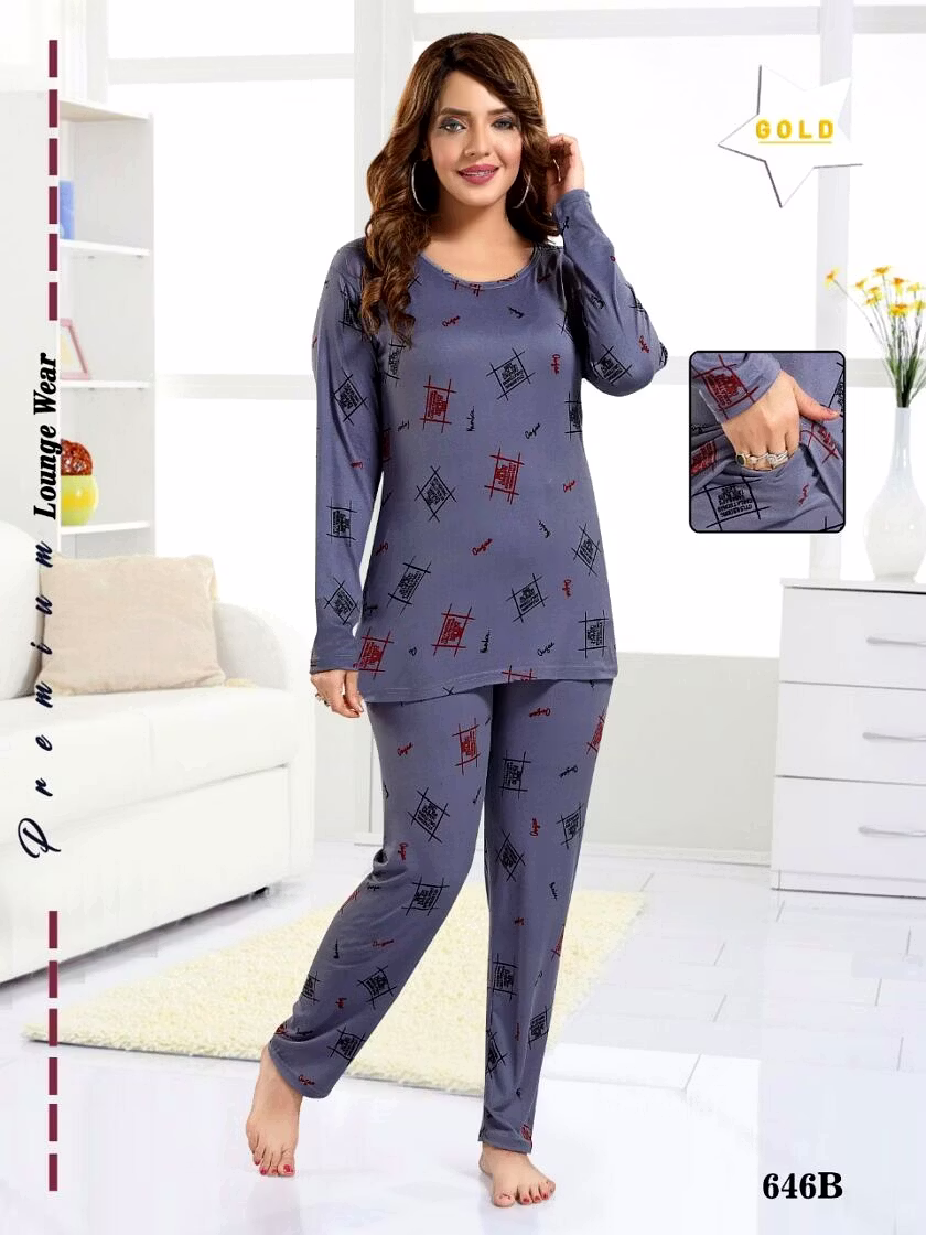 Our Premium Ladies Lycra T-shirt Pajama Full Sleeves Night Suit Design No. 646 B PL164 is designed to provide maximum comfort and breathability. Made from high-quality cotton hosiery, these panties offer a soft texture and moisture-wicking properties, keeping you fresh all day long.