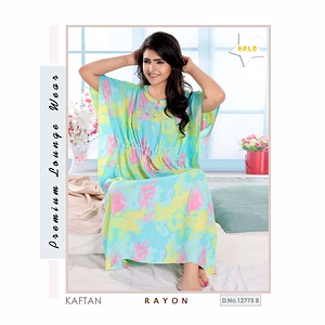 Our Premium Ladies Rayon Kaftan Nighty Design No. 12775C PL150 is designed to provide maximum comfort and breathability. Made from high-quality cotton hosiery, these panties offer a soft texture and moisture-wicking properties, keeping you fresh all day long.