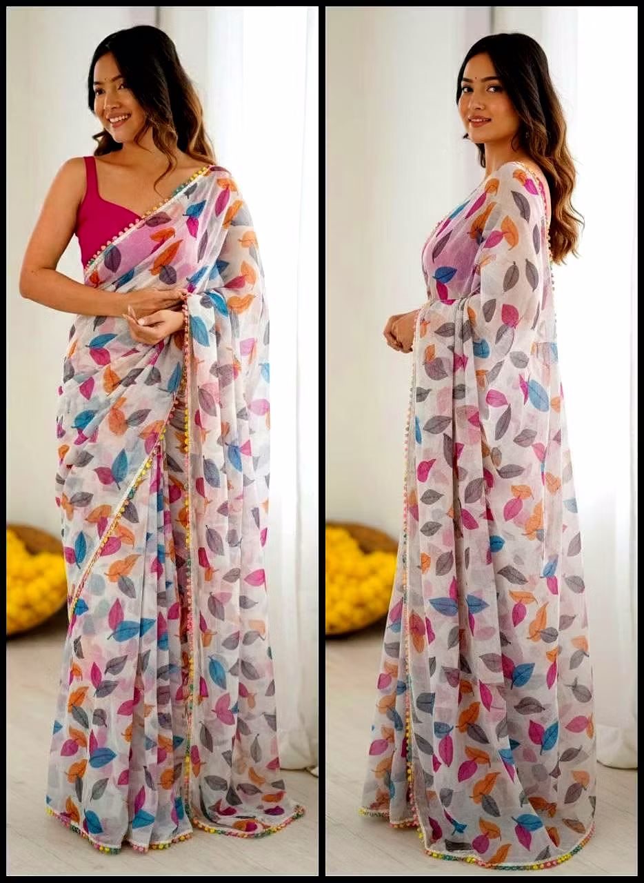 Elevate your style with this premium lightweight georgette printed saree, ideal for office, casual outings, and festive occasions. Experience the perfect blend of elegance and comfort.