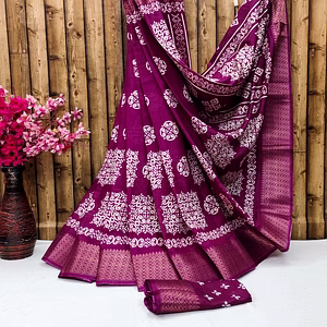 Introducing our premium soft linen cotton digital print sarees with batik print all over the body and woven silver border. These sarees are the epitome of elegance and luxury, crafted with the highest quality materials to ensure the ultimate comfort and durability. The intricate batik print adds a unique touch to the saree, making it stand out from the rest. The saree also comes with a printed pallu that perfectly complements the overall design, making it a true work of art. The woven silver border adds a touch of sophistication, making it ideal for any formal occasion. To complete the look, our sarees come with a printed blouse with border that perfectly matches the saree. The blouse is designed to provide the perfect fit, ensuring maximum comfort and style. Whether you're attending a wedding, a formal event, or just looking for a saree that exudes elegance and sophistication, our premium soft linen cotton digital print sarees with batik print all over the body and woven silver border are the perfect choice. With their unique design, exceptional quality, and unmatched comfort, these sarees are sure to become a staple in your wardrobe. Don't miss out on the opportunity to own one of these exquisite sarees today!
