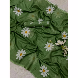 Introducing our premium soft linen cotton digital print sarees with batik print all over the body and woven silver border. These sarees are the epitome of elegance and luxury, crafted with the highest quality materials to ensure the ultimate comfort and durability. The intricate batik print adds a unique touch to the saree, making it stand out from the rest. The saree also comes with a printed pallu that perfectly complements the overall design, making it a true work of art. The woven silver border adds a touch of sophistication, making it ideal for any formal occasion. To complete the look, our sarees come with a printed blouse with border that perfectly matches the saree. The blouse is designed to provide the perfect fit, ensuring maximum comfort and style. Whether you're attending a wedding, a formal event, or just looking for a saree that exudes elegance and sophistication, our premium soft linen cotton digital print sarees with batik print all over the body and woven silver border are the perfect choice. With their unique design, exceptional quality, and unmatched comfort, these sarees are sure to become a staple in your wardrobe. Don't miss out on the opportunity to own one of these exquisite sarees today!