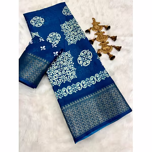 Introducing our premium soft linen cotton digital print sarees with batik print all over the body and woven silver border. These sarees are the epitome of elegance and luxury, crafted with the highest quality materials to ensure the ultimate comfort and durability. The intricate batik print adds a unique touch to the saree, making it stand out from the rest. The saree also comes with a printed pallu that perfectly complements the overall design, making it a true work of art. The woven silver border adds a touch of sophistication, making it ideal for any formal occasion. To complete the look, our sarees come with a printed blouse with border that perfectly matches the saree. The blouse is designed to provide the perfect fit, ensuring maximum comfort and style. Whether you're attending a wedding, a formal event, or just looking for a saree that exudes elegance and sophistication, our premium soft linen cotton digital print sarees with batik print all over the body and woven silver border are the perfect choice. With their unique design, exceptional quality, and unmatched comfort, these sarees are sure to become a staple in your wardrobe. Don't miss out on the opportunity to own one of these exquisite sarees today!
