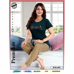 Our Premium Lounge Wear Ladies Hosiery Shirt & Pajama Night Suit Design No. 631 PL316 is designed to provide maximum comfort and breathability. Made from high-quality cotton hosiery, these panties offer a soft texture and moisture-wicking properties, keeping you fresh all day long.