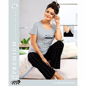 Our Premium Lounge Wear Ladies T-shirt & Pajama Night Suit Design No. 12149 B PL330 is designed to provide maximum comfort and breathability. Made from high-quality cotton hosiery, these panties offer a soft texture and moisture-wicking properties, keeping you fresh all day long.