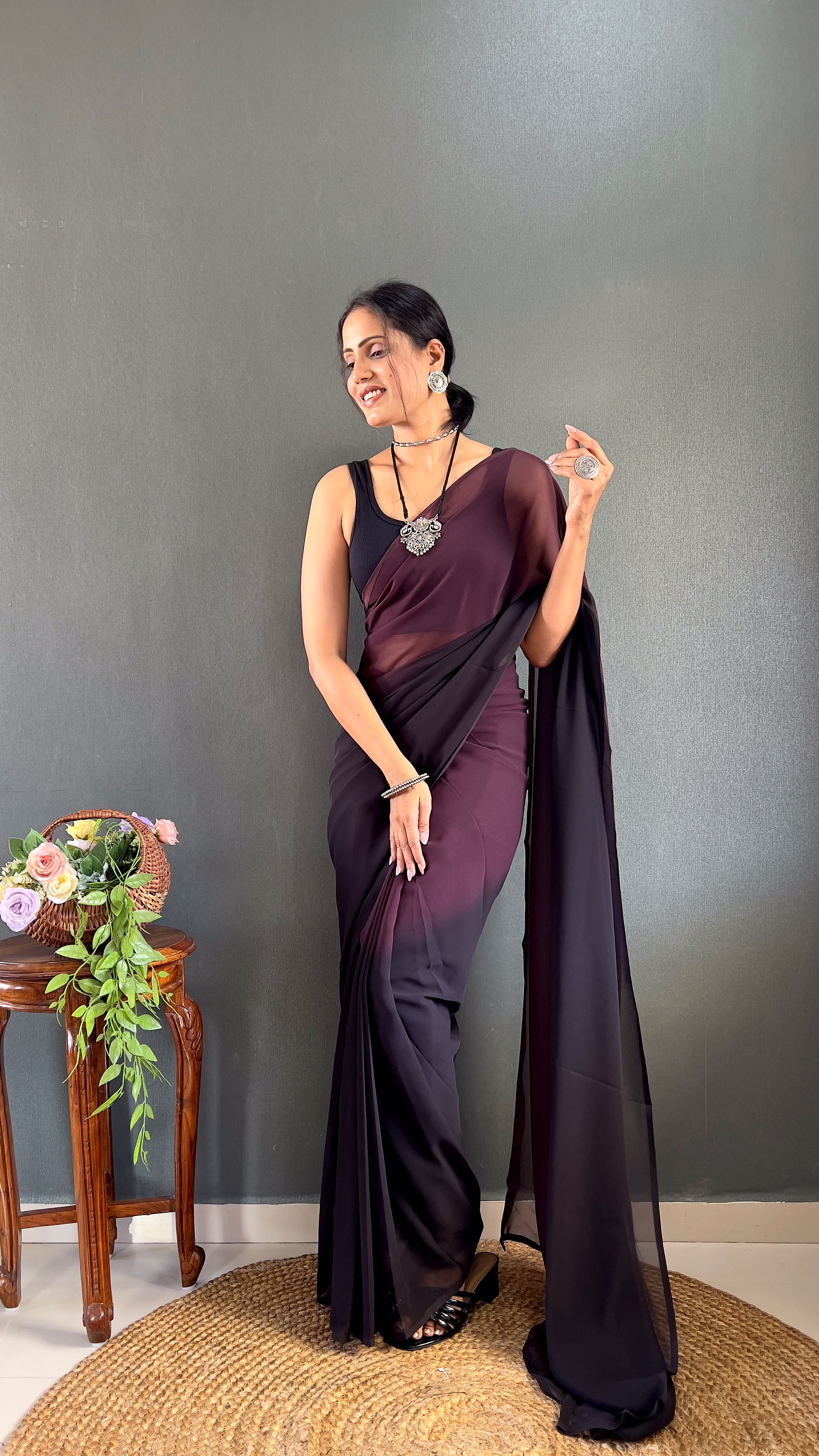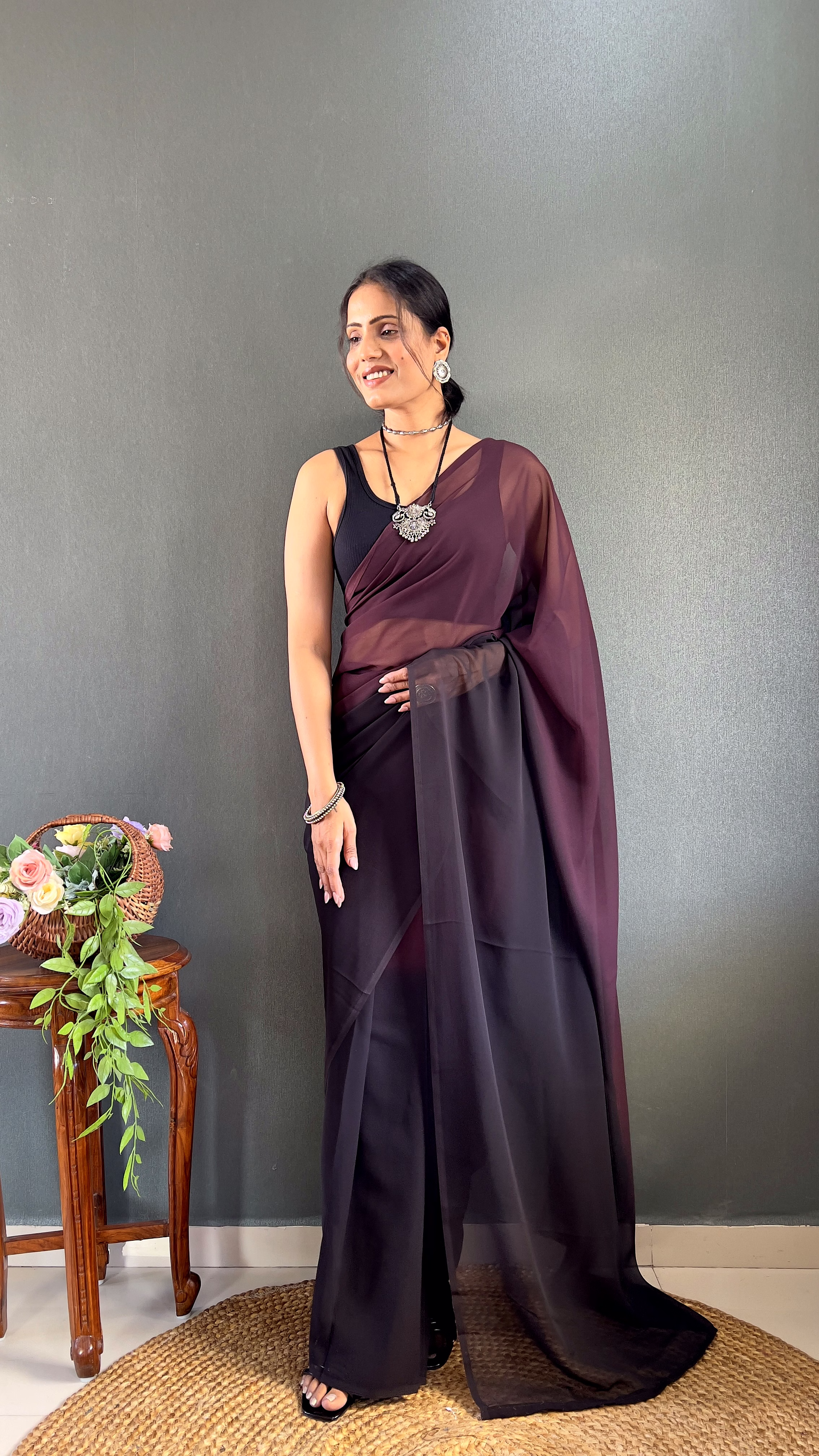 This saree is the ultimate "comfort-meets-style" hack. The ready-to-wear mechanism ensures the pleats stay perfectly in place from morning to night. Because it’s made of lightweight georgette, it feels weightless on the body, making it ideal for high-movement events like weddings or dance parties.