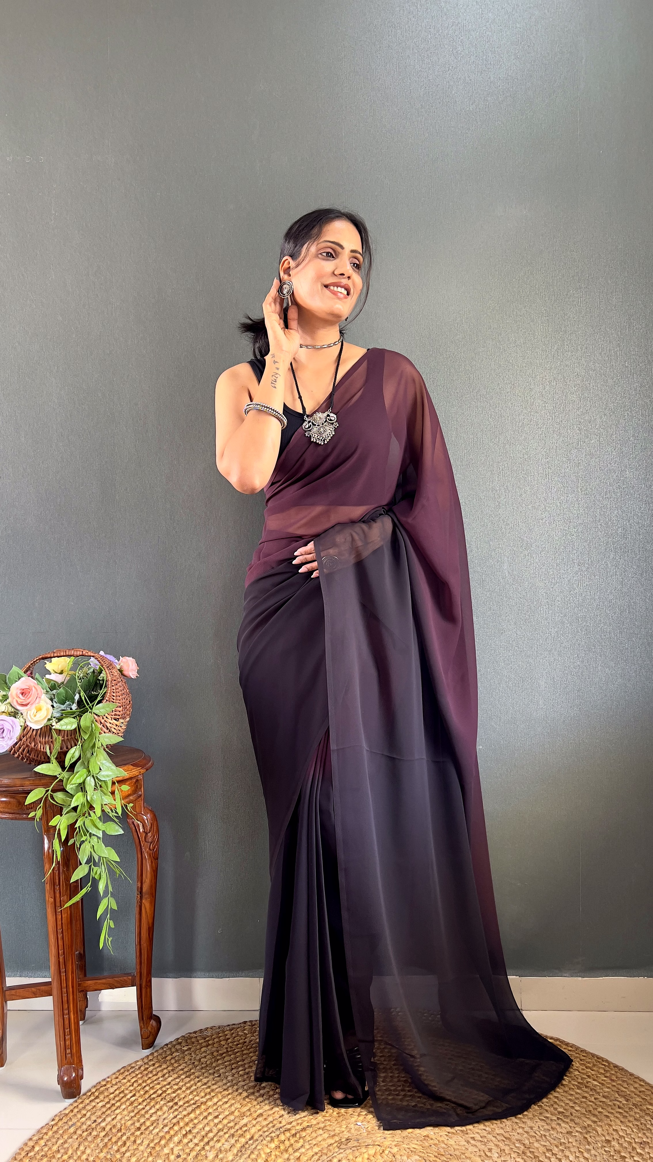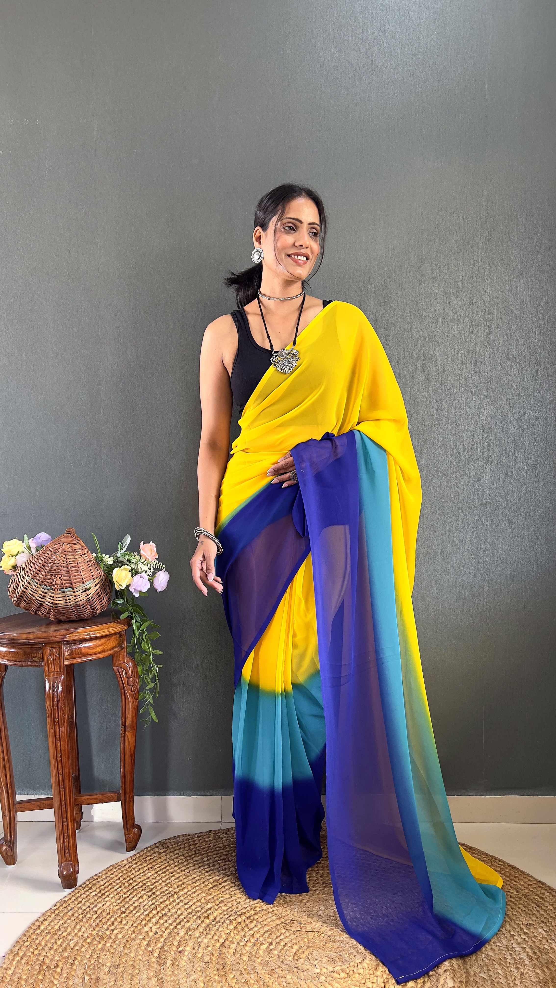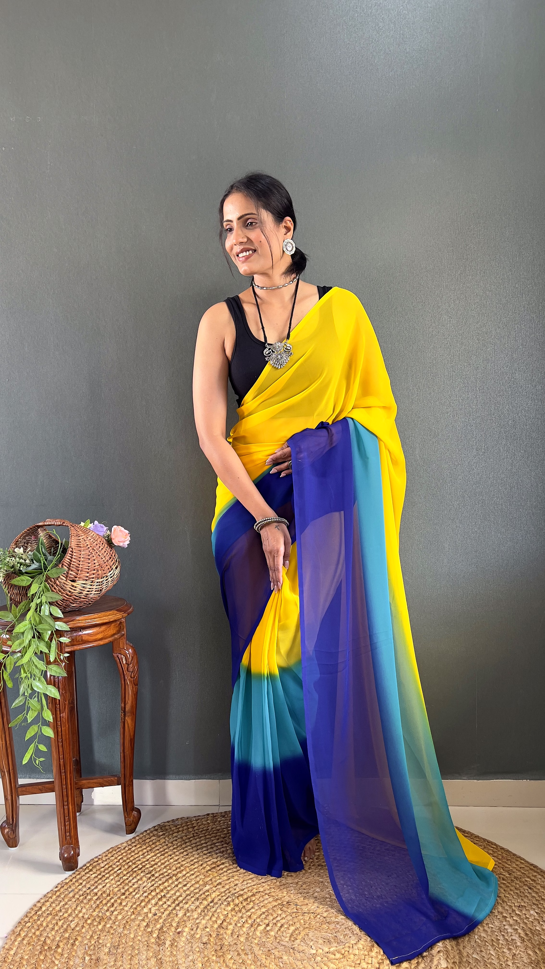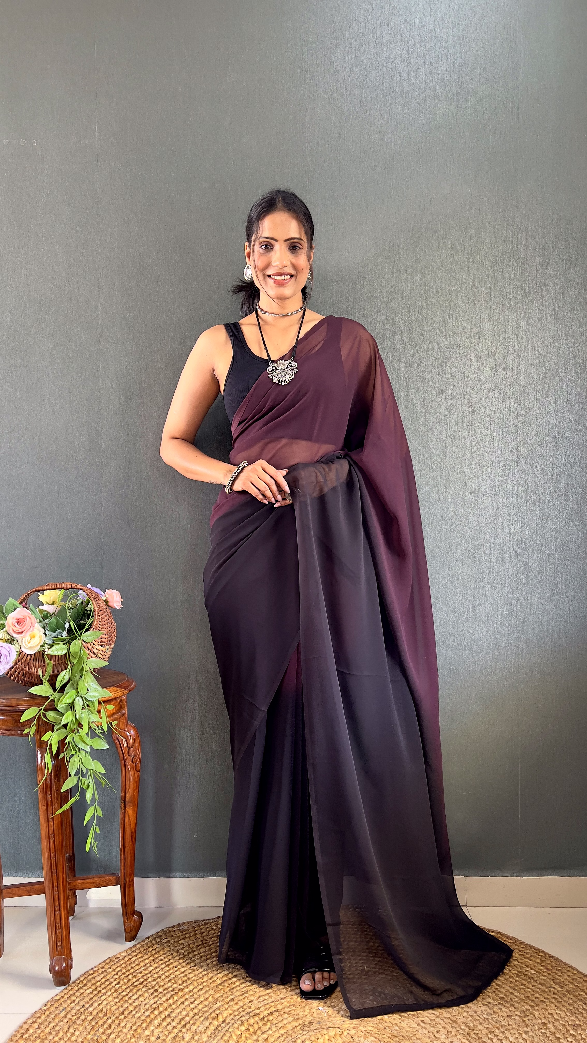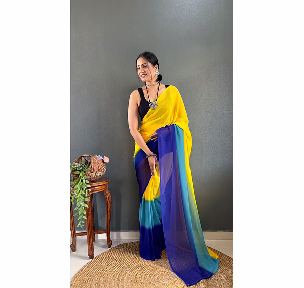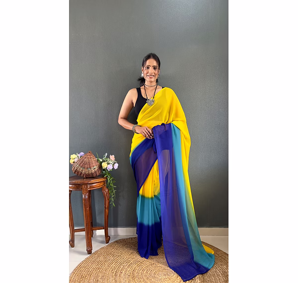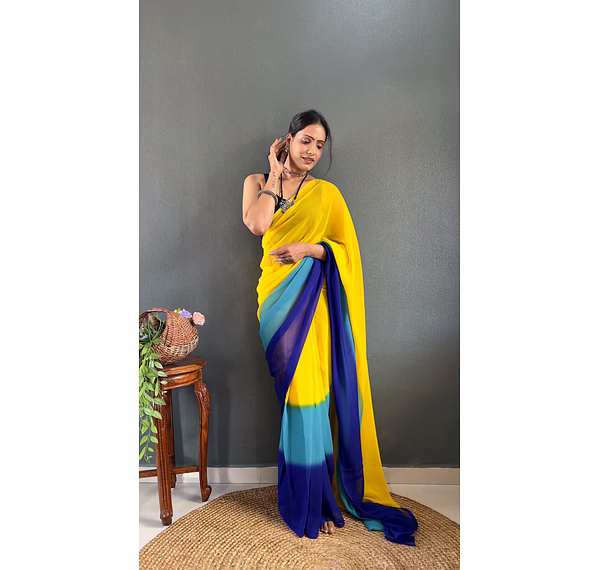 Ditch the pleating struggles and step into elegance in under a minute. This exquisite Padding Georgette Ready to Wear Saree combines a stunning color gradient with the effortless grace of a pre-stitched silhouette, perfect for the modern woman on the go.