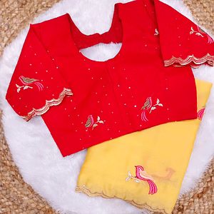 Introducing the pure Simmer Organza silk Saree, a true masterpiece of elegance and style. This saree is adorned with exquisite embroidery, crafted with the finest viscos thread and delicate sequins work, enhancing its allure and beauty. The highlight of this saree lies in its stunning border, meticulously designed to add a touch of sophistication and charm to your ensemble. The intricate embroidery work on the border showcases the meticulous craftsmanship and attention to detail that goes into creating this exceptional saree. Made from premium quality Simmer Organza silk, this saree drapes effortlessly and exudes grace with every step you take. The lightweight and breathable fabric ensures maximum comfort, making it an ideal choice for any occasion. To complement the saree, we have included a beautiful premium raw silk blouse. The blouse is designed to enhance the overall look, adding a touch of richness and elegance. With its versatile style, this blouse can be paired with other sarees as well, making it a versatile addition to your wardrobe. The pure Simmer Organza silk Saree is a timeless piece that effortlessly combines traditional charm with contemporary style. It is perfect for weddings, parties, or any special occasion where you want to make a lasting impression. Step into the spotlight and make a statement with this exquisite saree. The pure Simmer Organza silk Saree is a true embodiment of luxury, elegance, and sophistication. Embrace the beauty and grace it offers, and let it become a part of your own unique style.