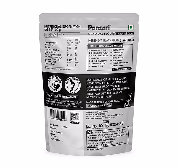 Rich in protein, fiber, and essential nutrients, urad dal atta supports muscle health, digestion, and energy levels, making it highly suitable for daily consumption and food processing applications.
