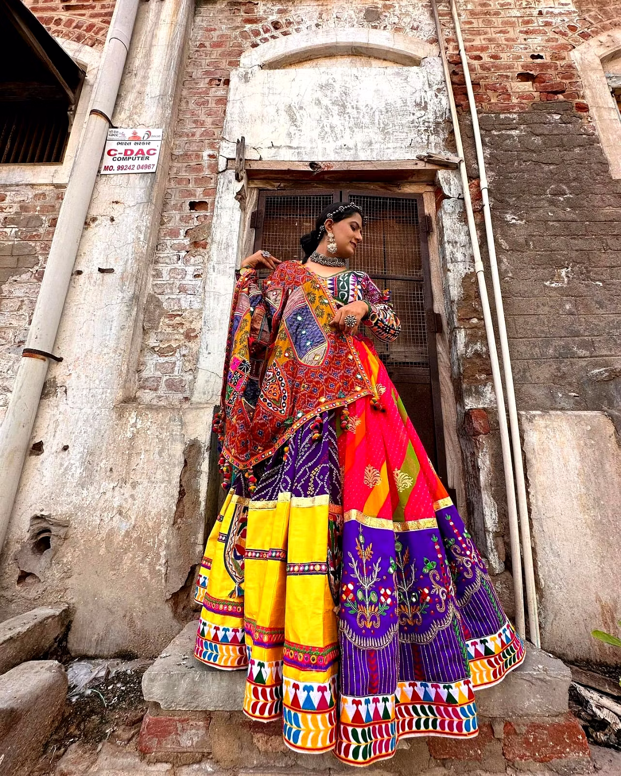 Introducing our exquisite Lehenga(Semi-stitched) set, designed to make you stand out in any special occasion. Made from premium Muslin Cotton fabric, this Lehenga boasts a mesmerizing printed pattern that adds a touch of elegance to your ensemble. With a waist size supported up to 42 inches, it offers a comfortable fit that flatters all body types. The semi-stitched design, along with canvas support, ensures easy customization to suit your preferences. The 42-inch length and 4-meter flair with canvas create a graceful silhouette. The inner lining crafted from luxurious silk enhances the wearing experience. Accompanying the Lehenga is an unstitched Blouse, made from Muslin Cotton fabric and adorned with real mirror embellishments, allowing you to create a personalized style statement. The matching Duppata, made from Muslin Cotton fabric and adorned with real mirror details, adds a final touch of finesse. This package includes the Lehenga, Blouse, and Duppata, offering a complete outfit solution. Step into the spotlight with our Lehenga(Semi-stitched) set and make heads turn with your impeccable style.