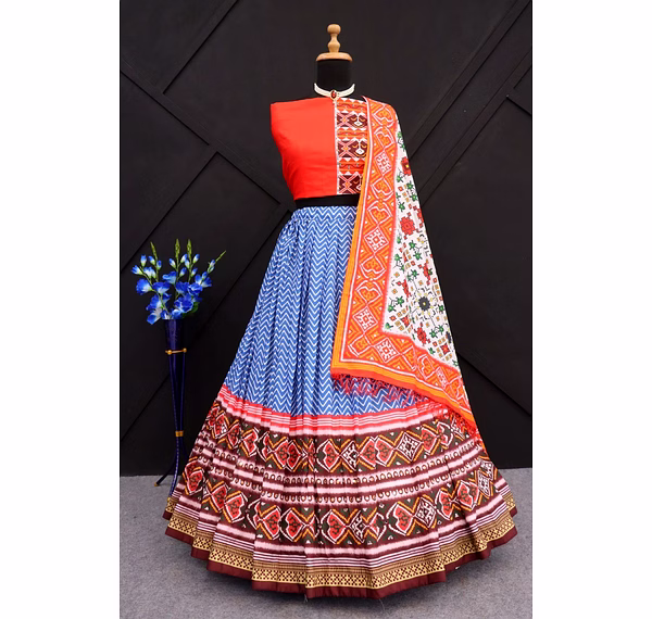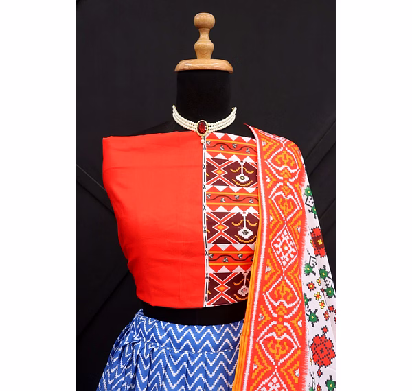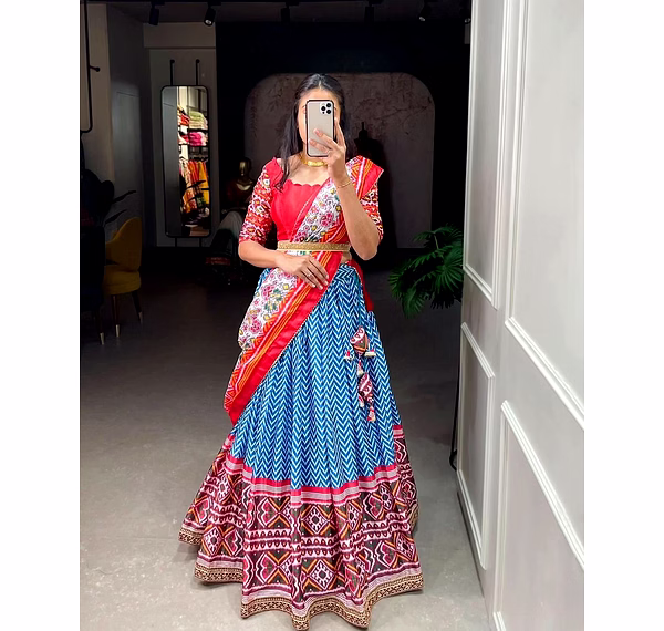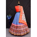 Introducing our exquisite Lehenga(Semi-stitched) set, designed to make you stand out in any special occasion. Made from premium Muslin Cotton fabric, this Lehenga boasts a mesmerizing printed pattern that adds a touch of elegance to your ensemble. With a waist size supported up to 42 inches, it offers a comfortable fit that flatters all body types. The semi-stitched design, along with canvas support, ensures easy customization to suit your preferences. The 42-inch length and 4-meter flair with canvas create a graceful silhouette. The inner lining crafted from luxurious silk enhances the wearing experience. Accompanying the Lehenga is an unstitched Blouse, made from Muslin Cotton fabric and adorned with real mirror embellishments, allowing you to create a personalized style statement. The matching Duppata, made from Muslin Cotton fabric and adorned with real mirror details, adds a final touch of finesse. This package includes the Lehenga, Blouse, and Duppata, offering a complete outfit solution. Step into the spotlight with our Lehenga(Semi-stitched) set and make heads turn with your impeccable style.