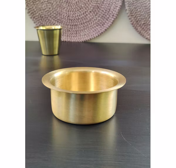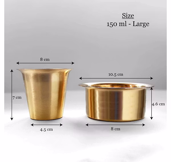 This high-quality brass tumbler and dabara set is both elegant and modern, making it a perfect addition to any kitchen or dining area. Designed with traditional South Indian aesthetics, it’s ideal for serving filter coffee, boasting a capacity of 120 ml.
