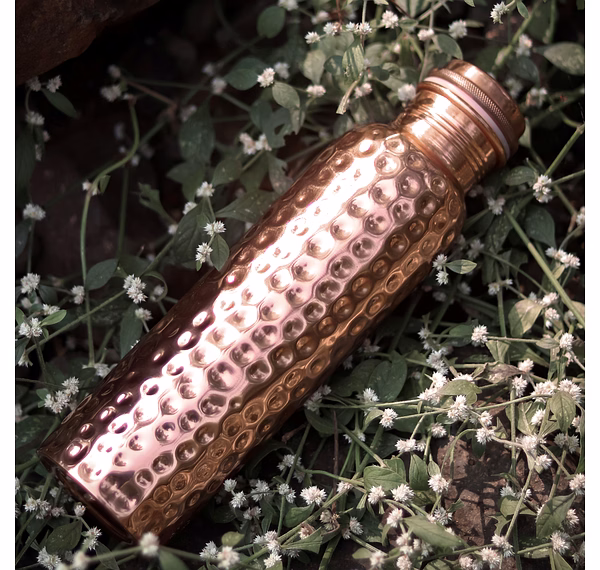 CopperKing 1000ml Hammered Copper Bottle is a premium pure copper water bottle with an elegant hammered texture for a rich look and better grip. Ideal for daily use at home, office, gym and travel. Features a secure screw cap for leak-resistant use. Suitable for wholesale, bulk orders, hotelware, corporate gifting and export supply with private label and custom packaging options.