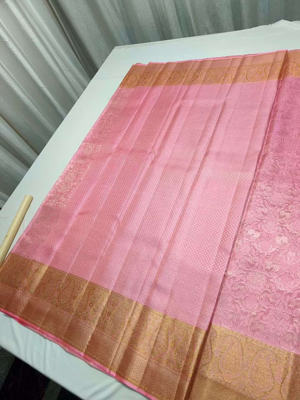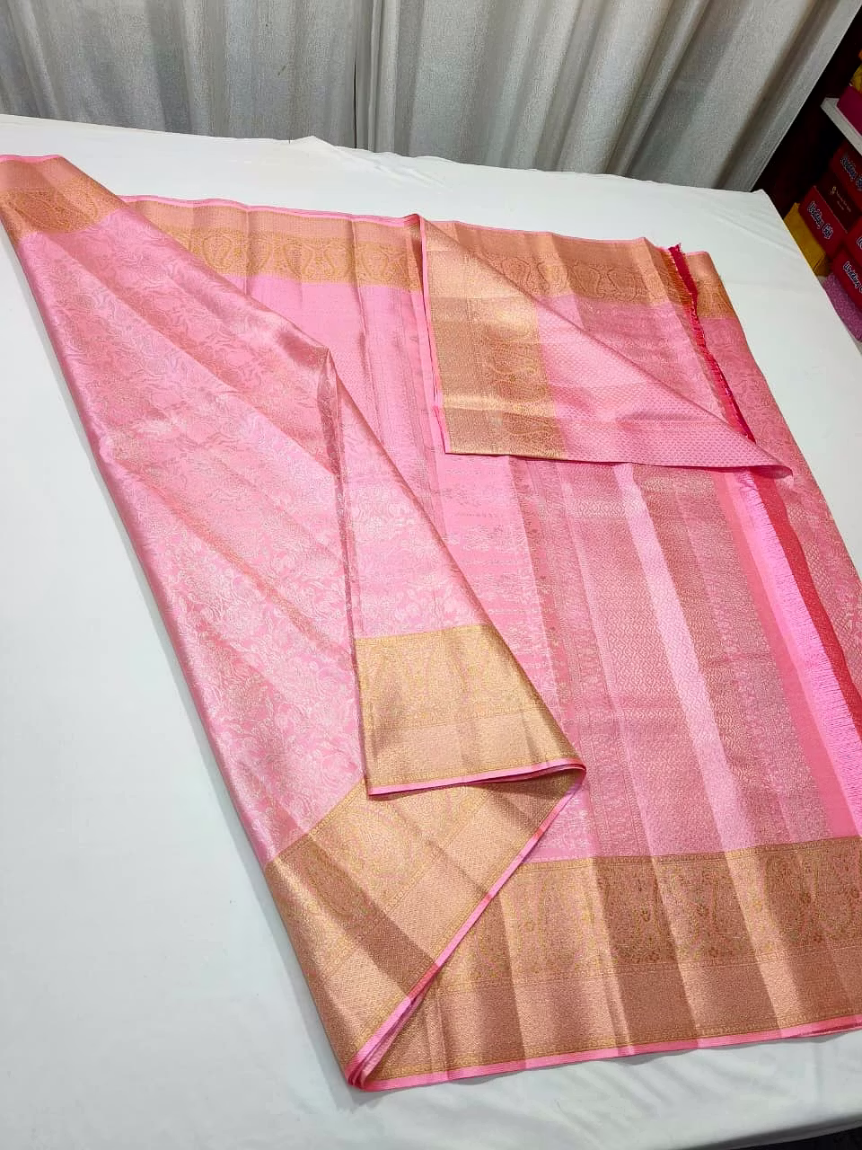 Elevate your style with the Pure Kanchi Broked Saree, a masterpiece in Kanjeevaram silk. Handwoven with intricate details, this premium-quality saree is perfect for weddings and special occasions.